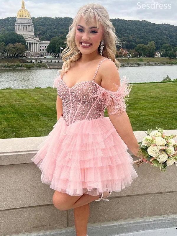 Gorgeous Pink Scoop Strapless Beaded Bodycon Short Mini Dress Homecoming Dress$129.99 USD$149.99 USD