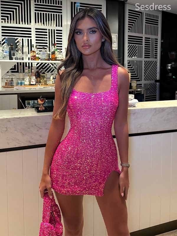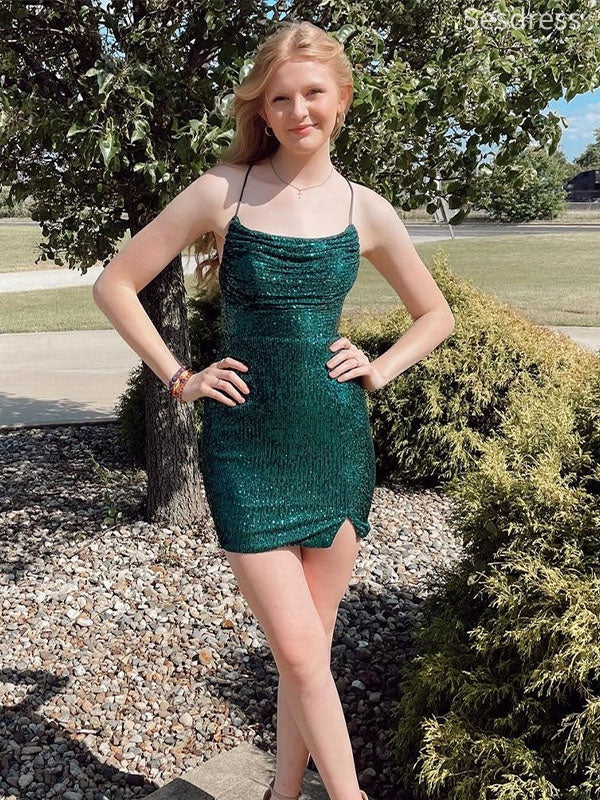 Sparkly Sequins Scoop Spaghetti Strap Bodycon Short Mini Dress Homecoming Dress$129.99 USD$149.99 USD