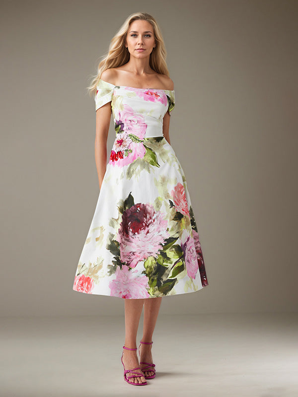 A-Line Off-the-Shoulder Tea-Length Evening Dress$139.00 USD$199.00 USD