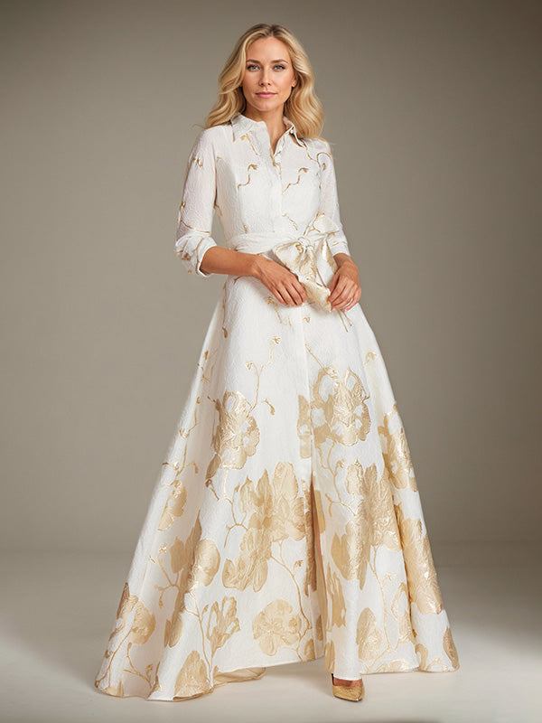 A-Line Scoop 3/4-Sleeve Floor-Length Formal Dress With Belt$180.00 USD$290.00 USD