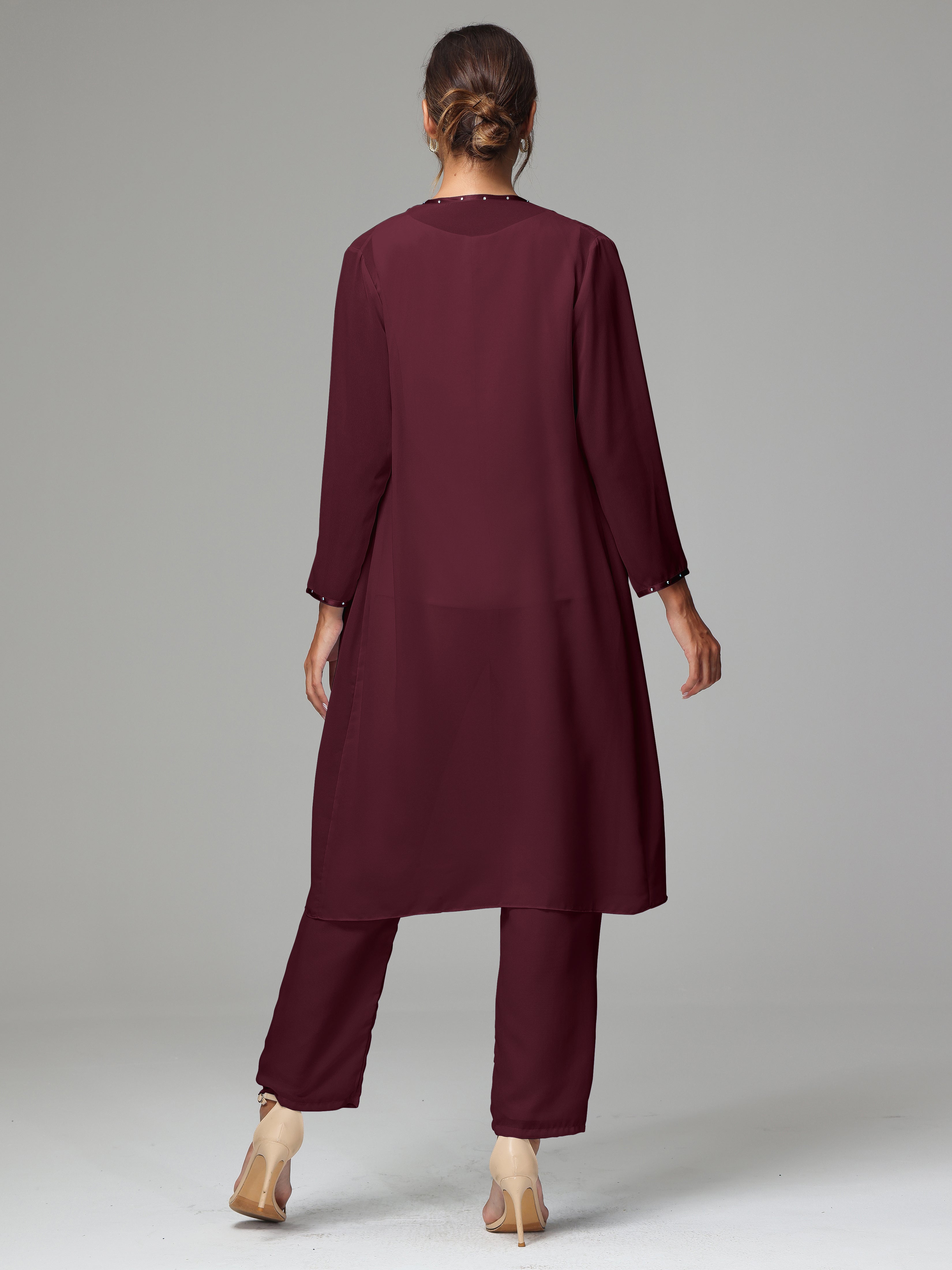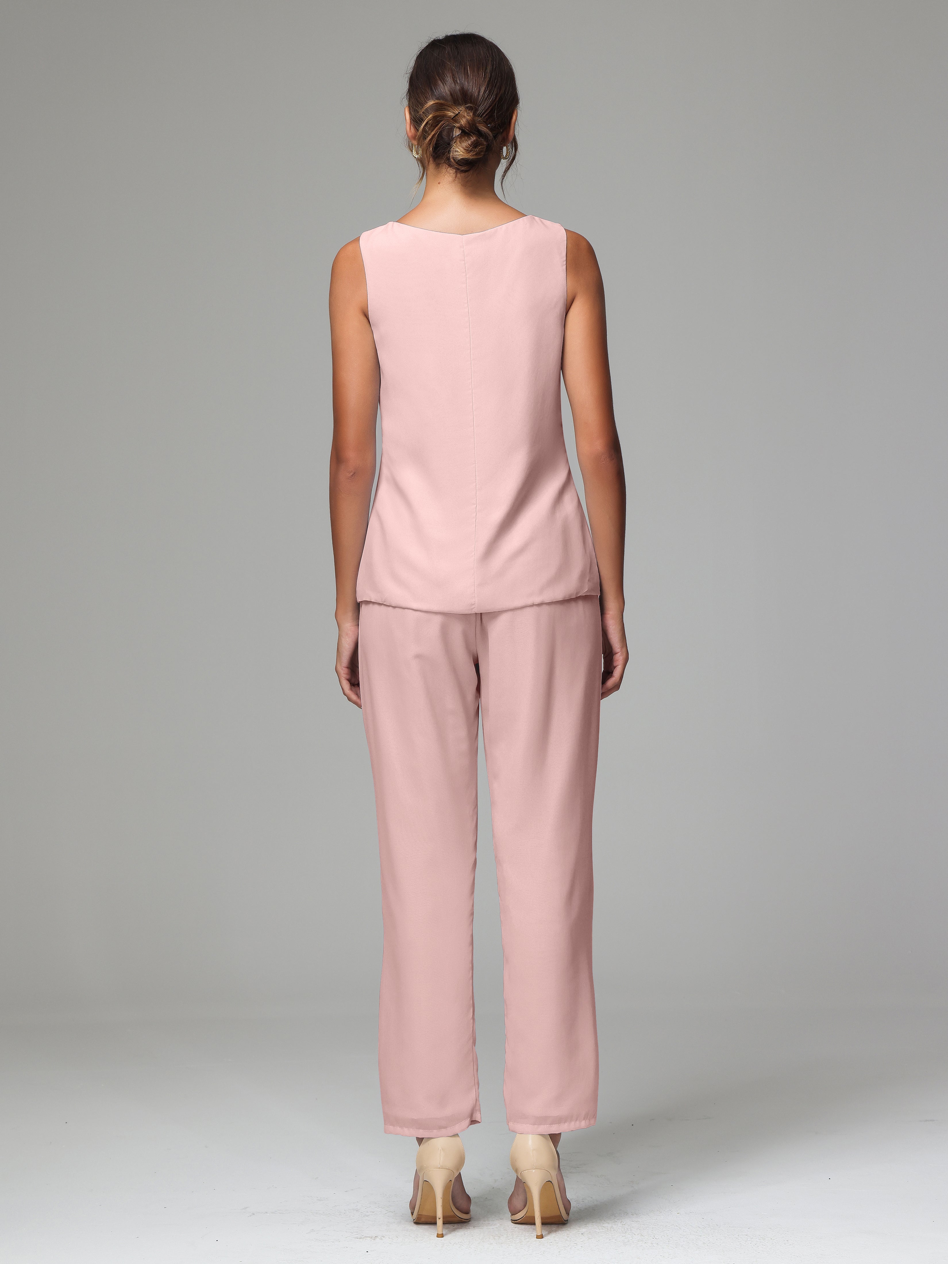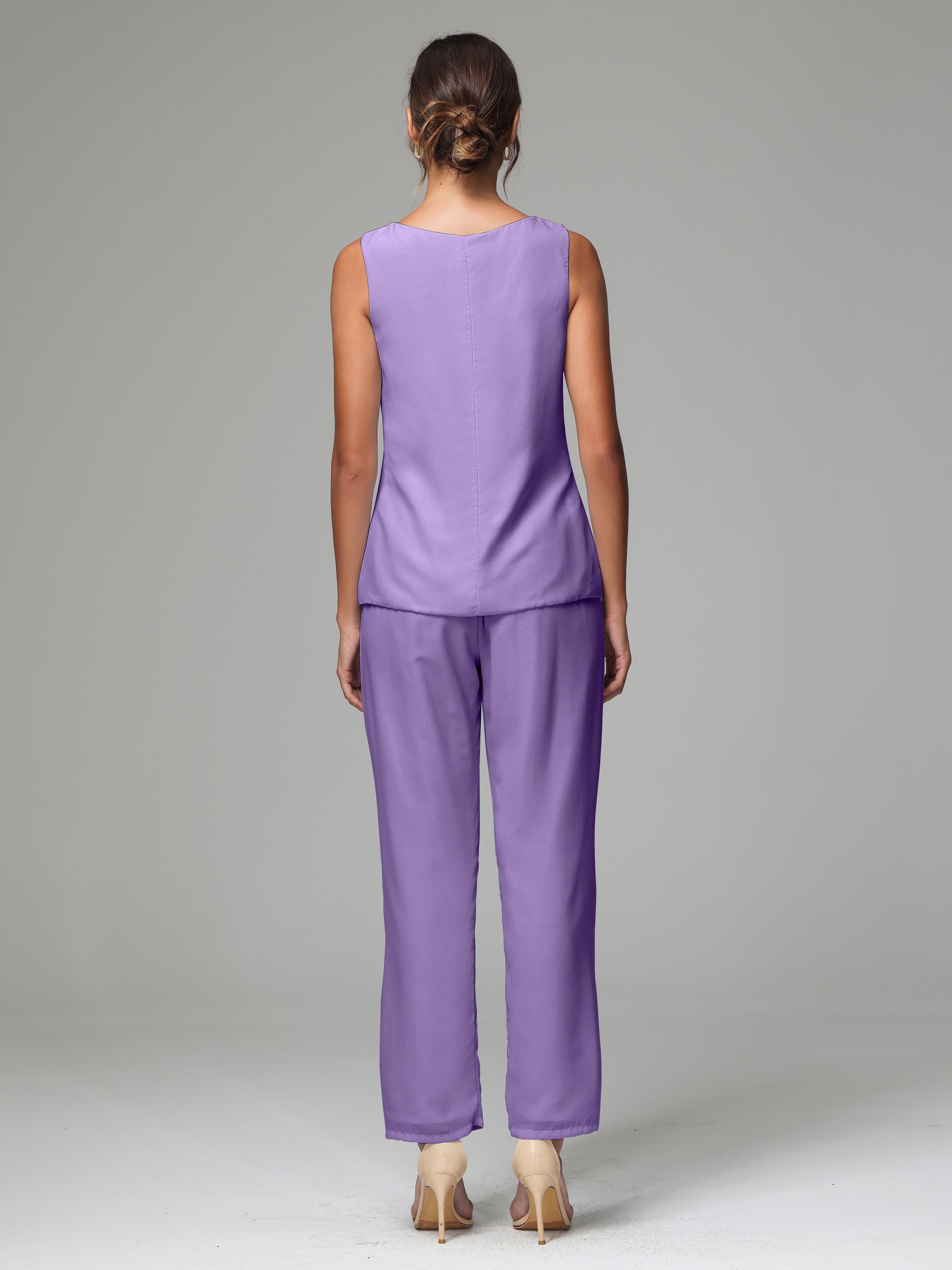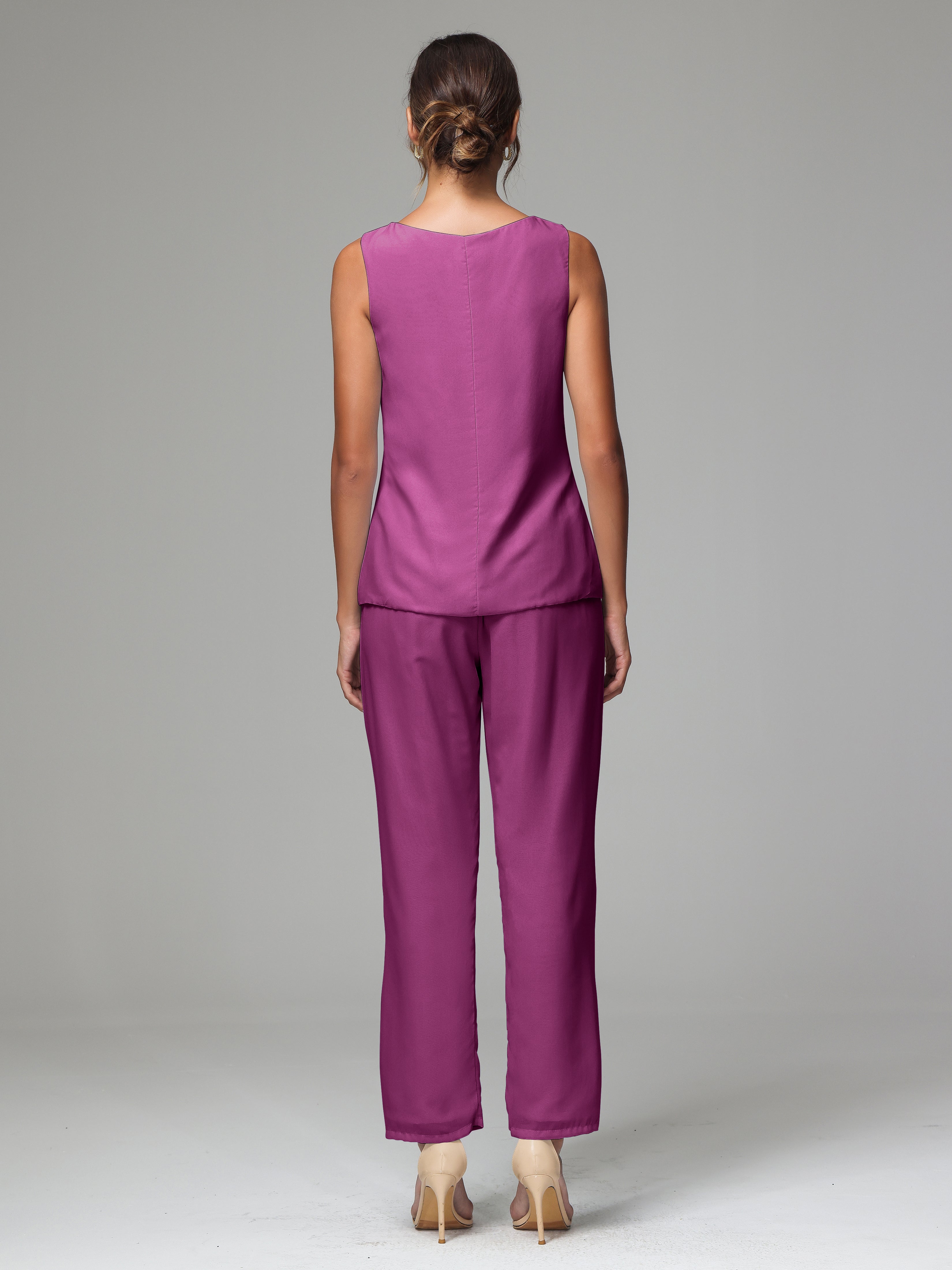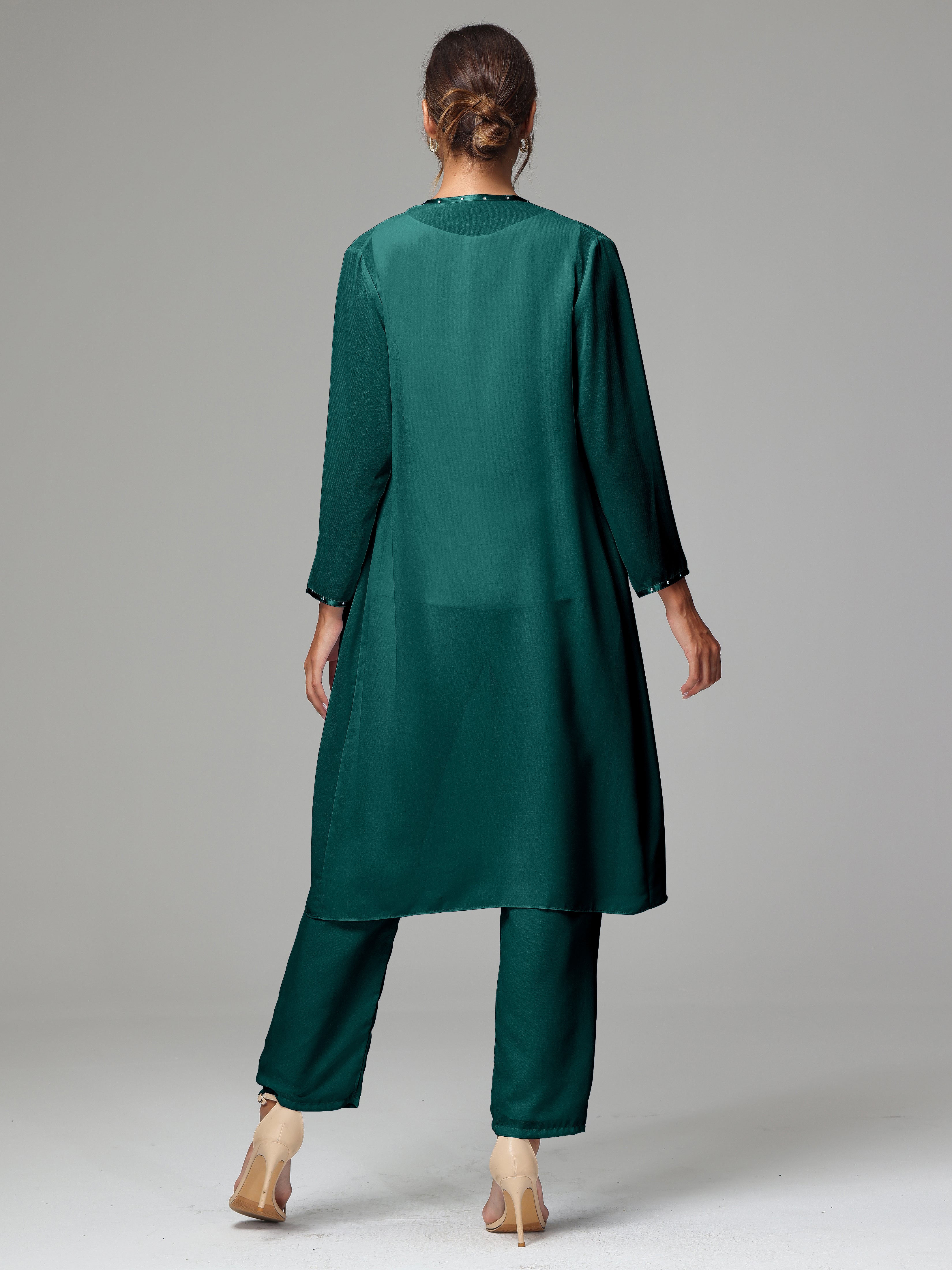 The 3 Pieces Chiffon Fancy Mother Of The Bride Dress Pants Suits is a fashionable yet timeless look for special occasions. It is made from high quality chiffon and features three pieces in the set, with elegant details like a single-breasted jacket, dress, and pants. Perfect for a chic and sophisticated look!