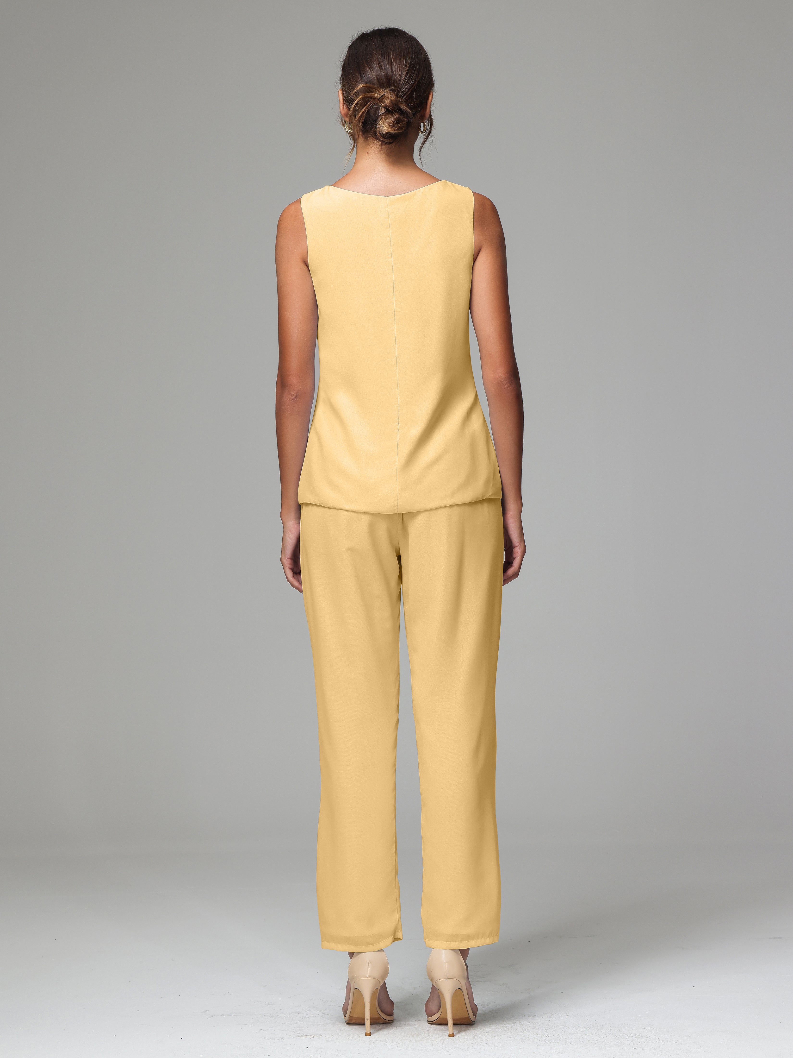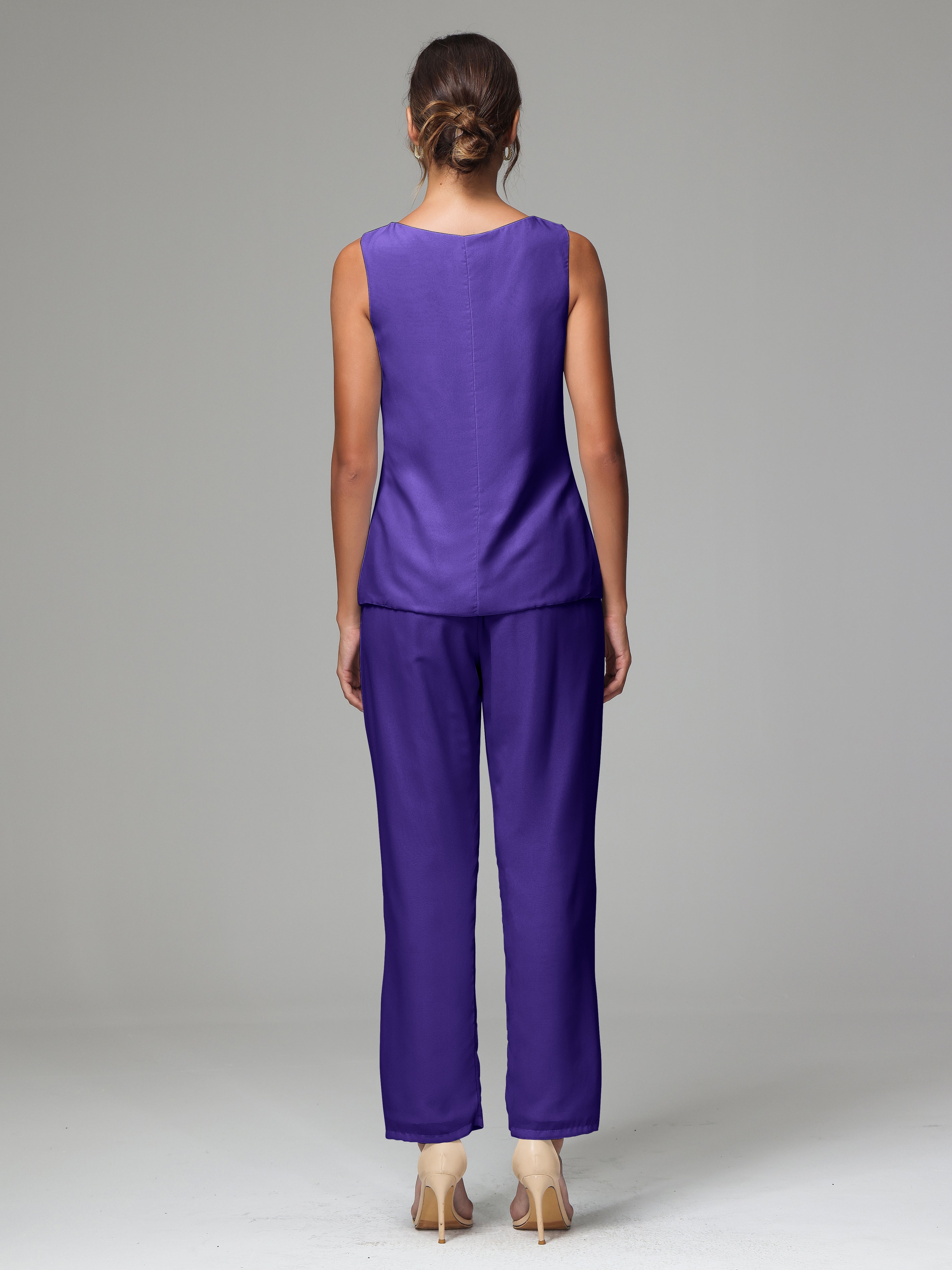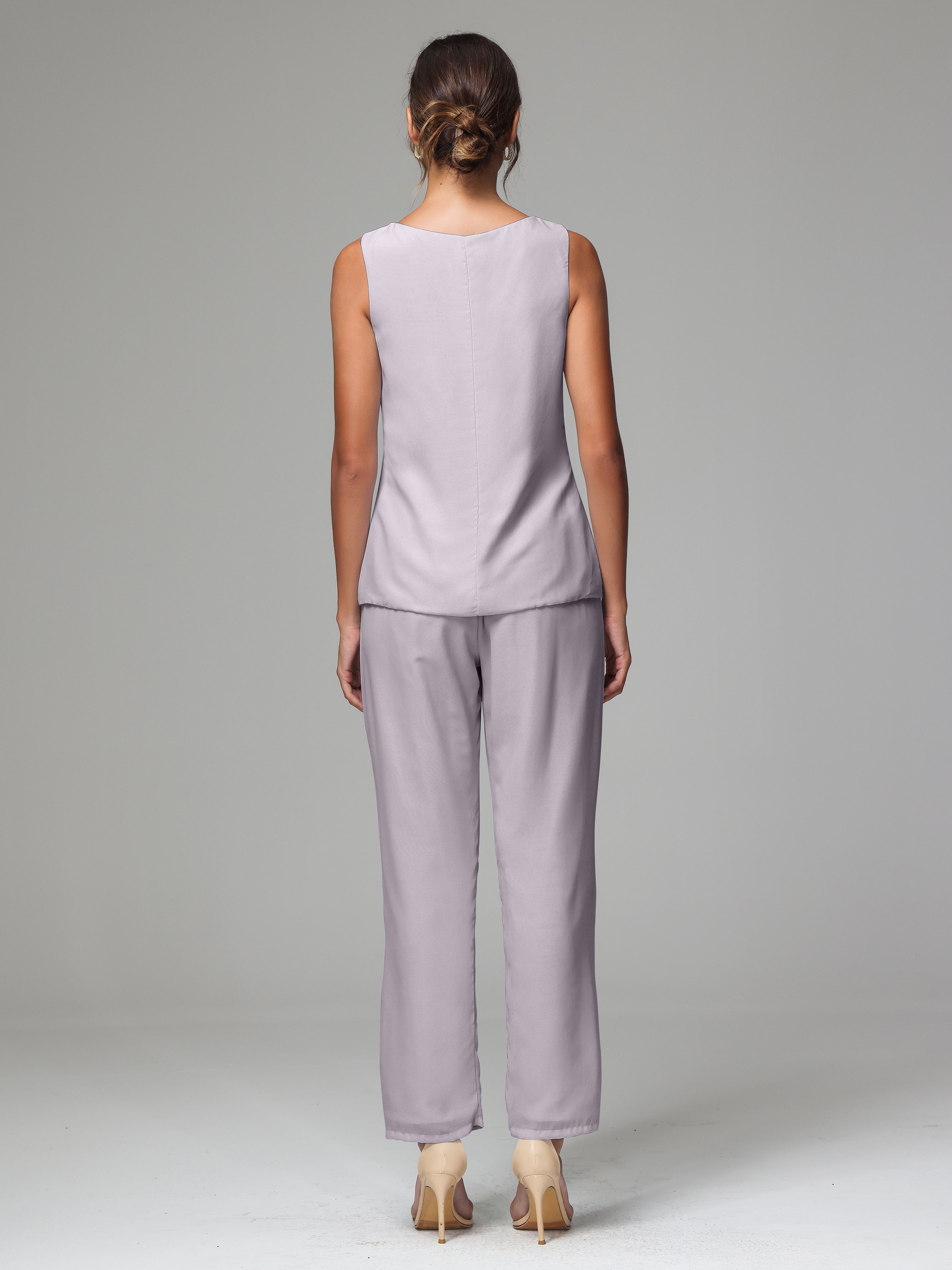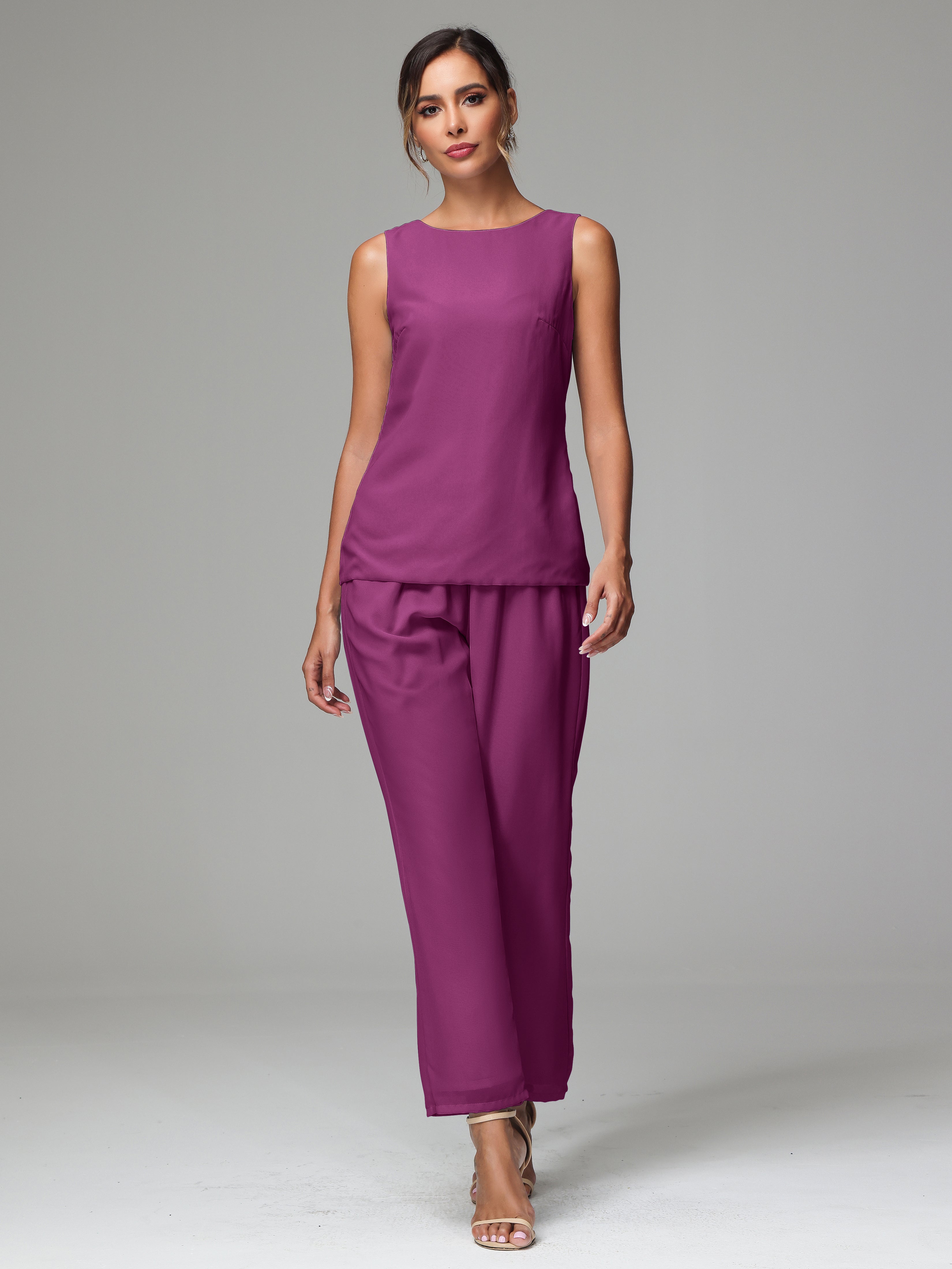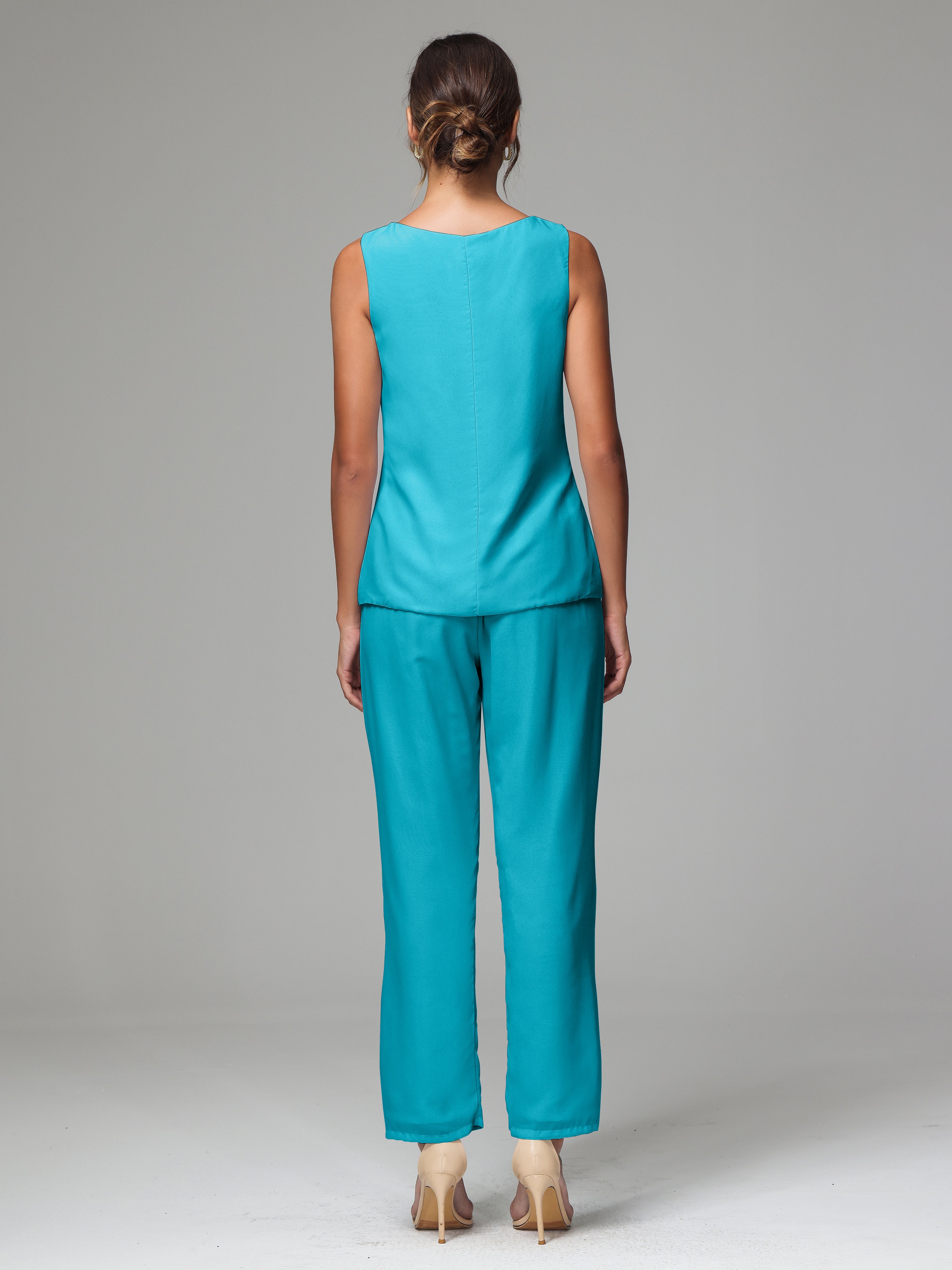 The 3 Pieces Chiffon Fancy Mother Of The Bride Dress Pants Suits is a fashionable yet timeless look for special occasions. It is made from high quality chiffon and features three pieces in the set, with elegant details like a single-breasted jacket, dress, and pants. Perfect for a chic and sophisticated look!