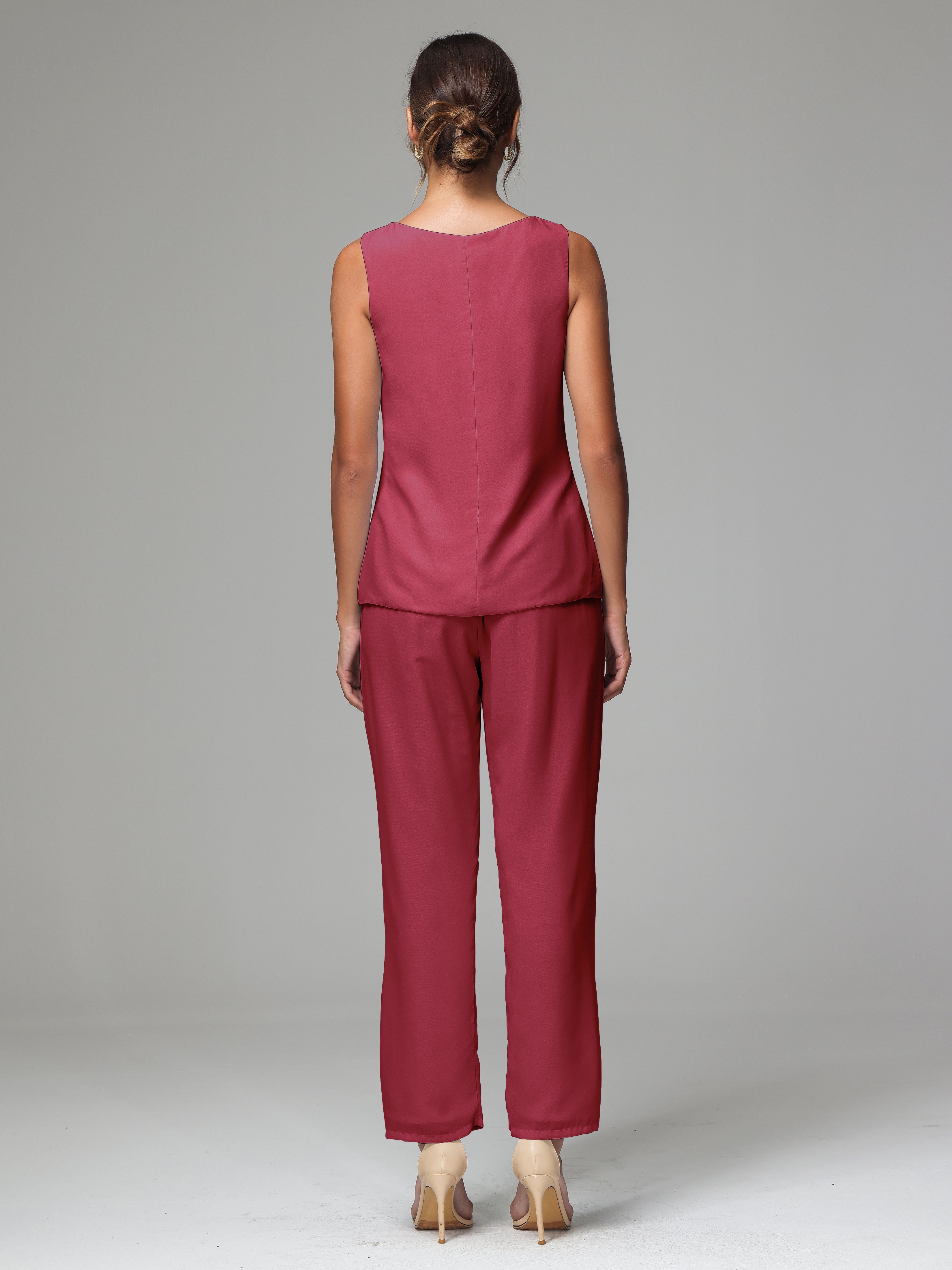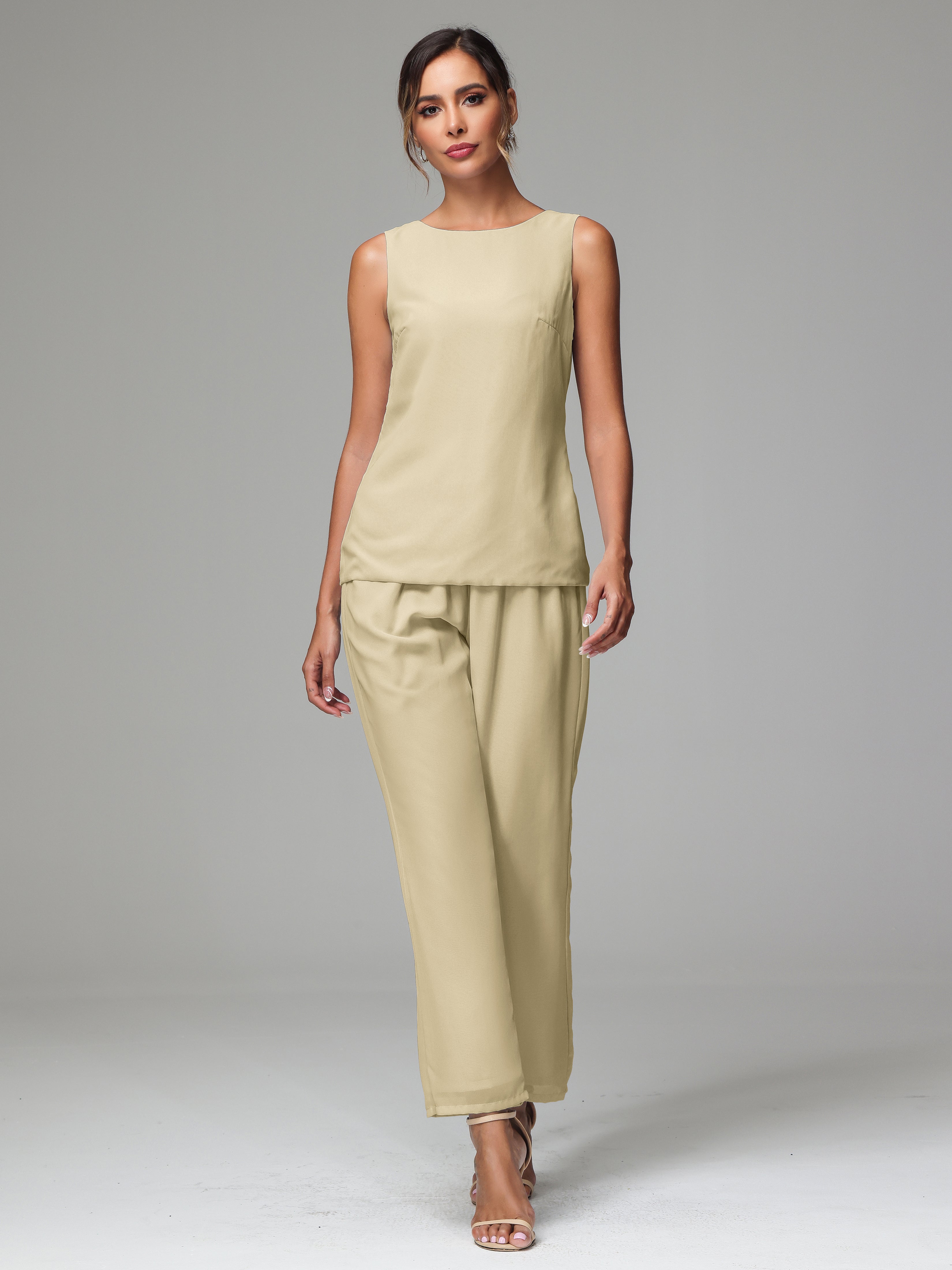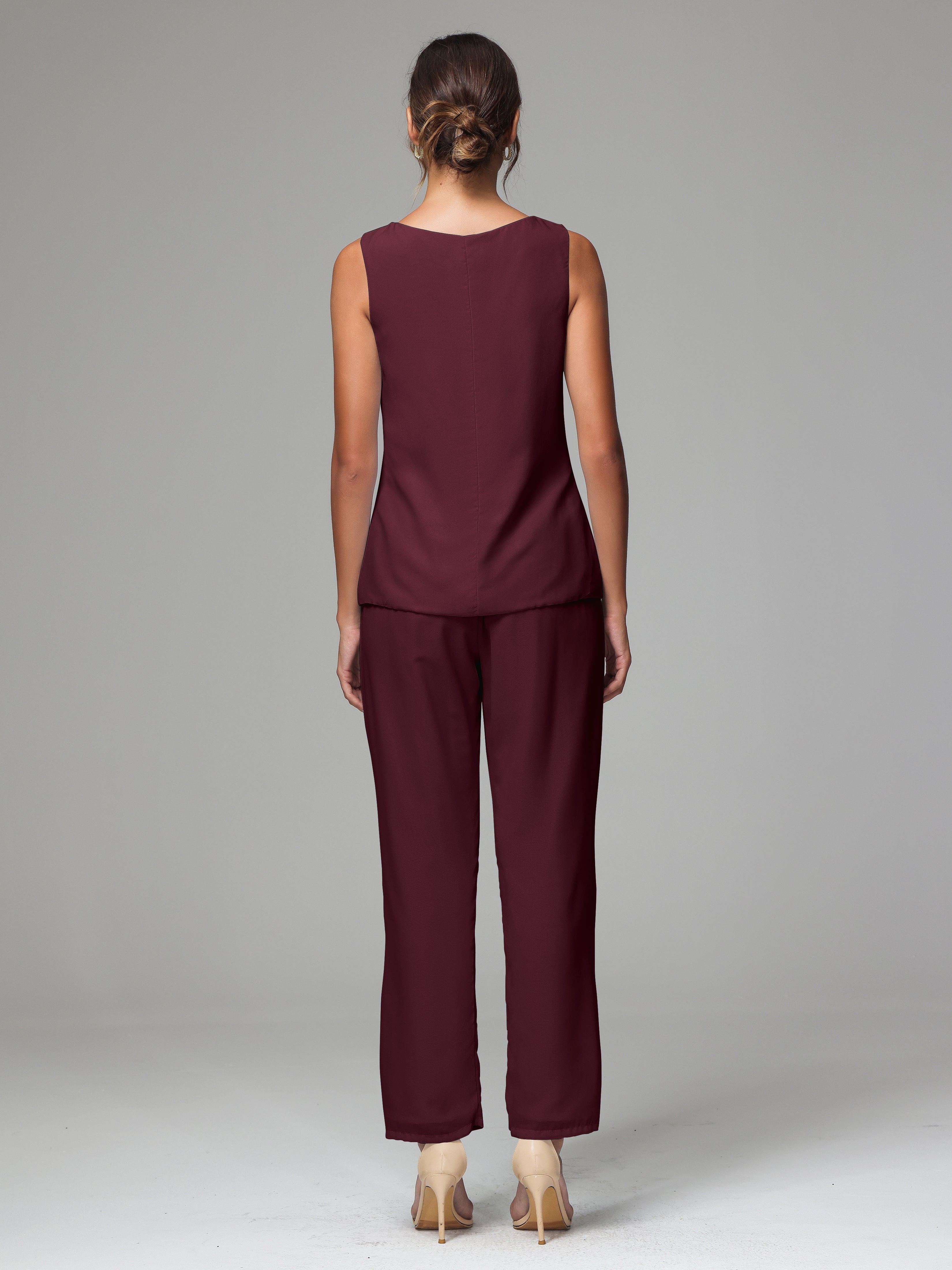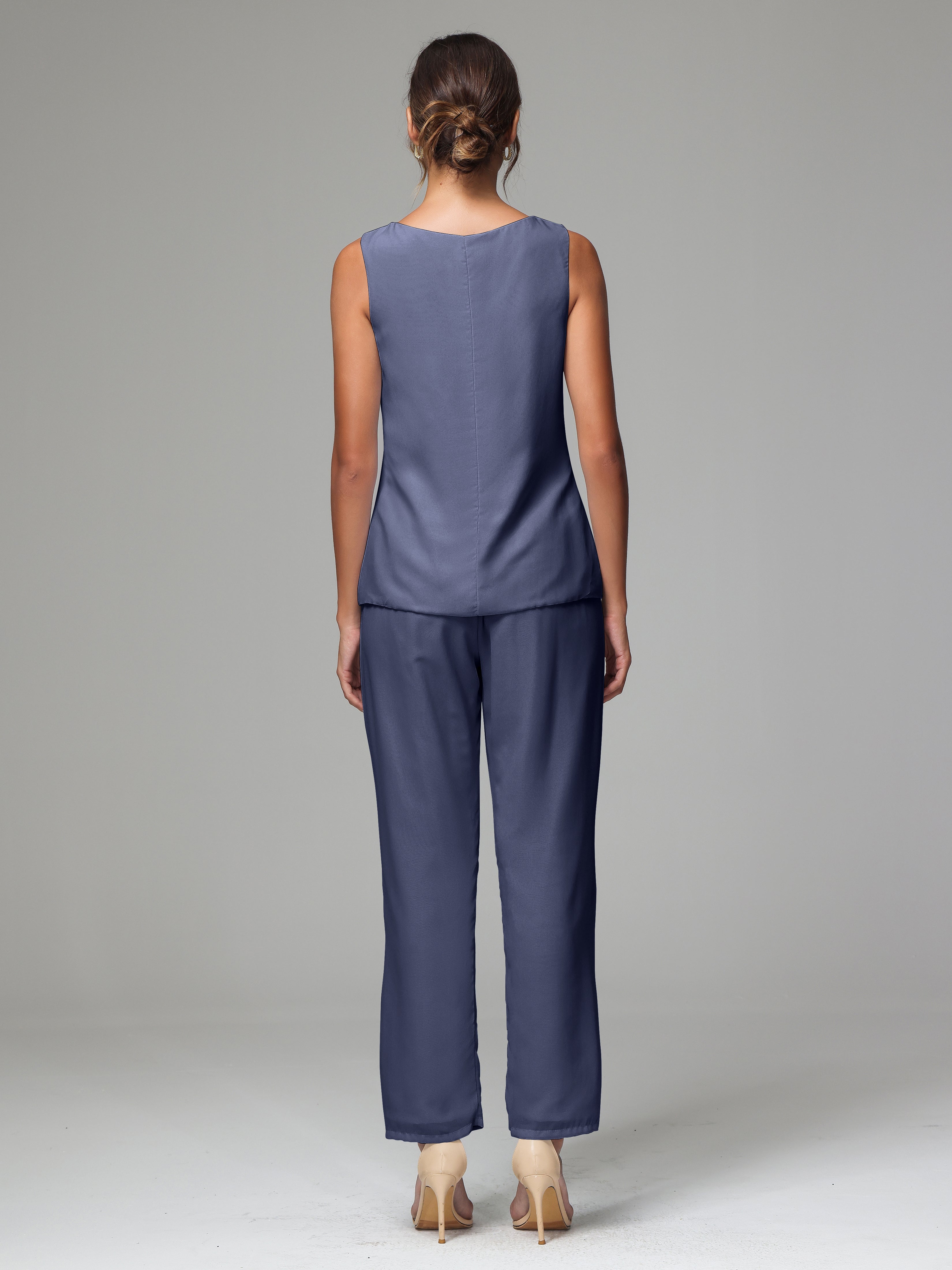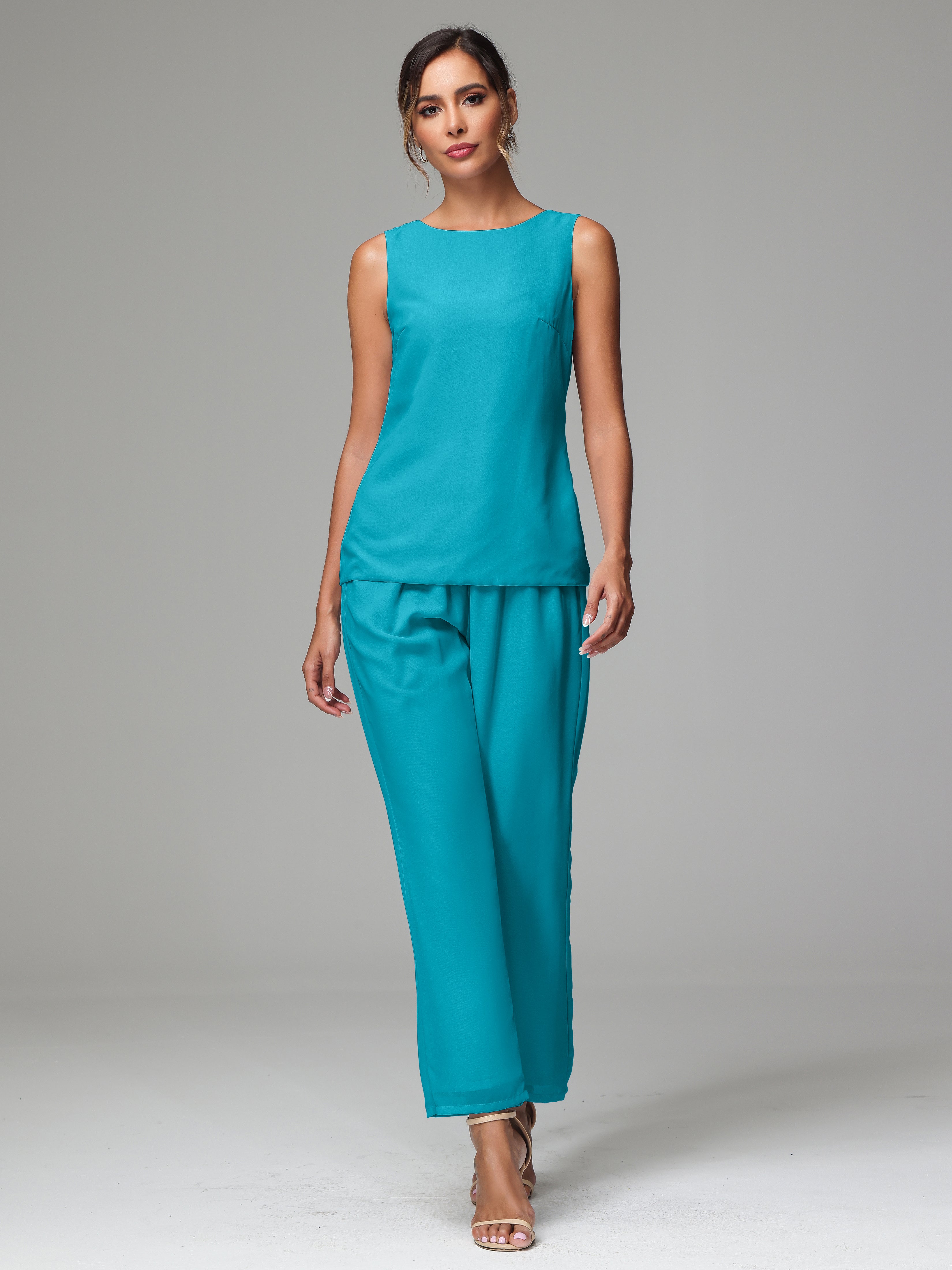 The 3 Pieces Chiffon Fancy Mother Of The Bride Dress Pants Suits is a fashionable yet timeless look for special occasions. It is made from high quality chiffon and features three pieces in the set, with elegant details like a single-breasted jacket, dress, and pants. Perfect for a chic and sophisticated look!