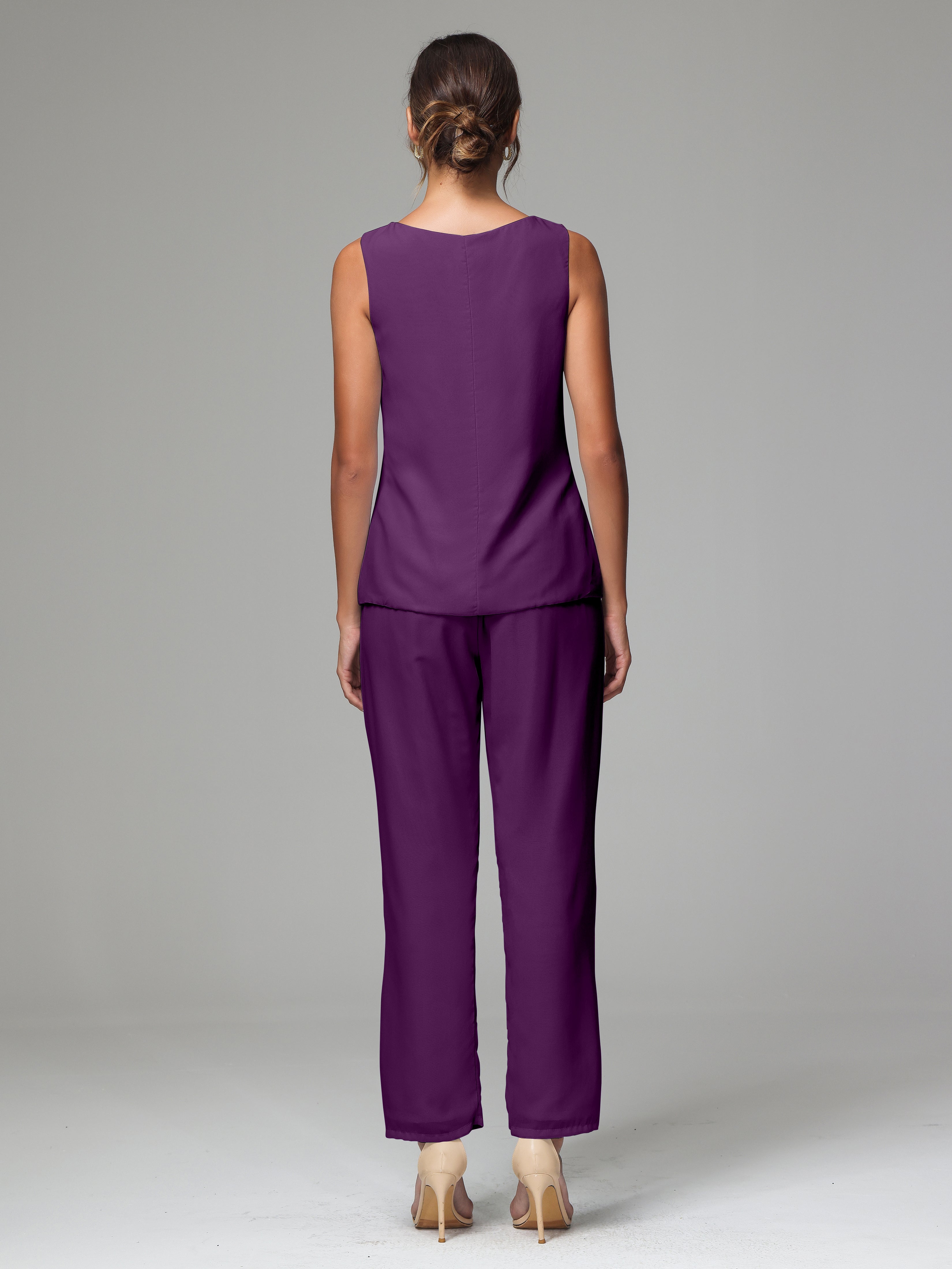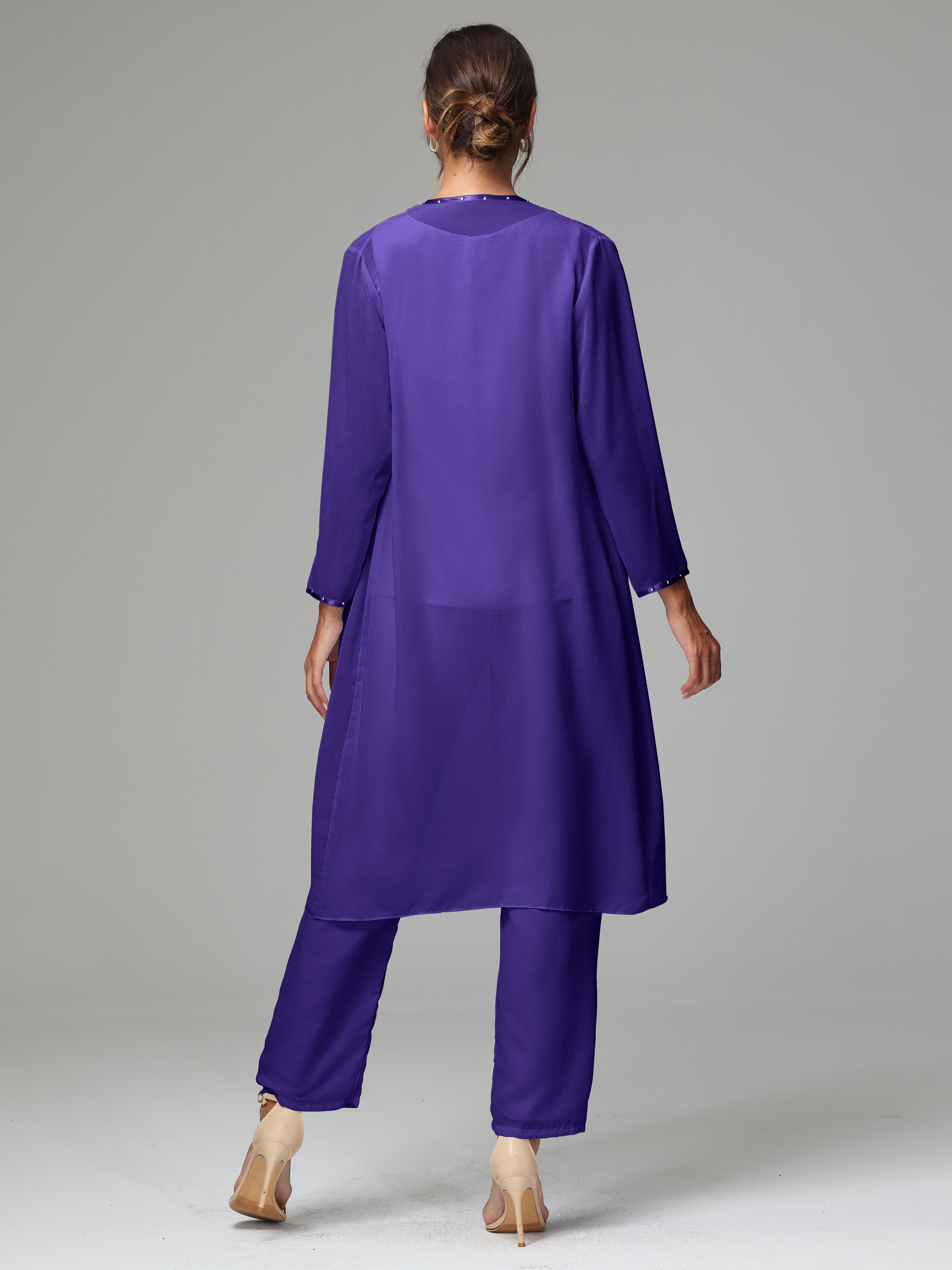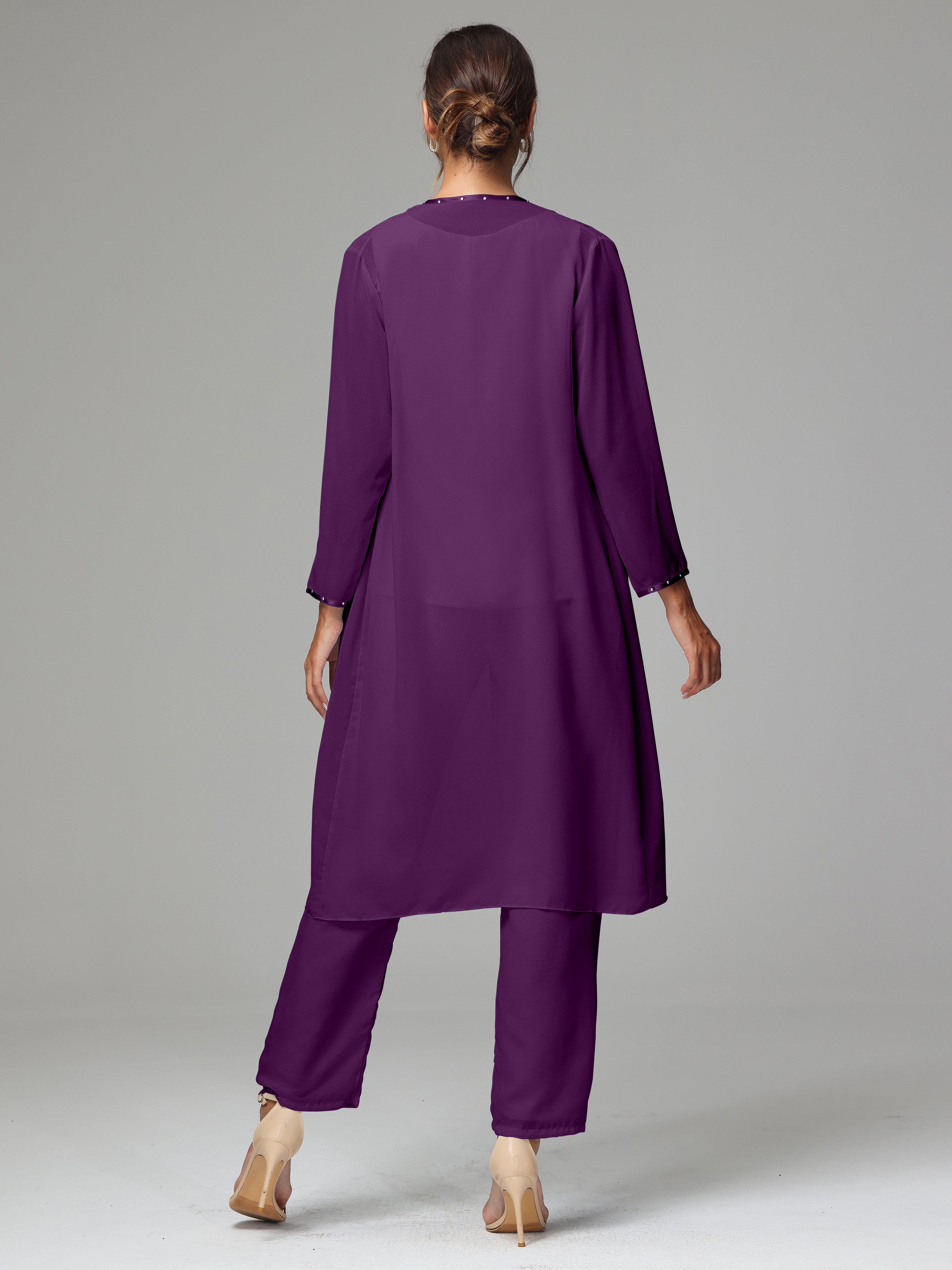 3 Pieces Chiffon Fancy Mother Of The Bride Dress Pants Suits