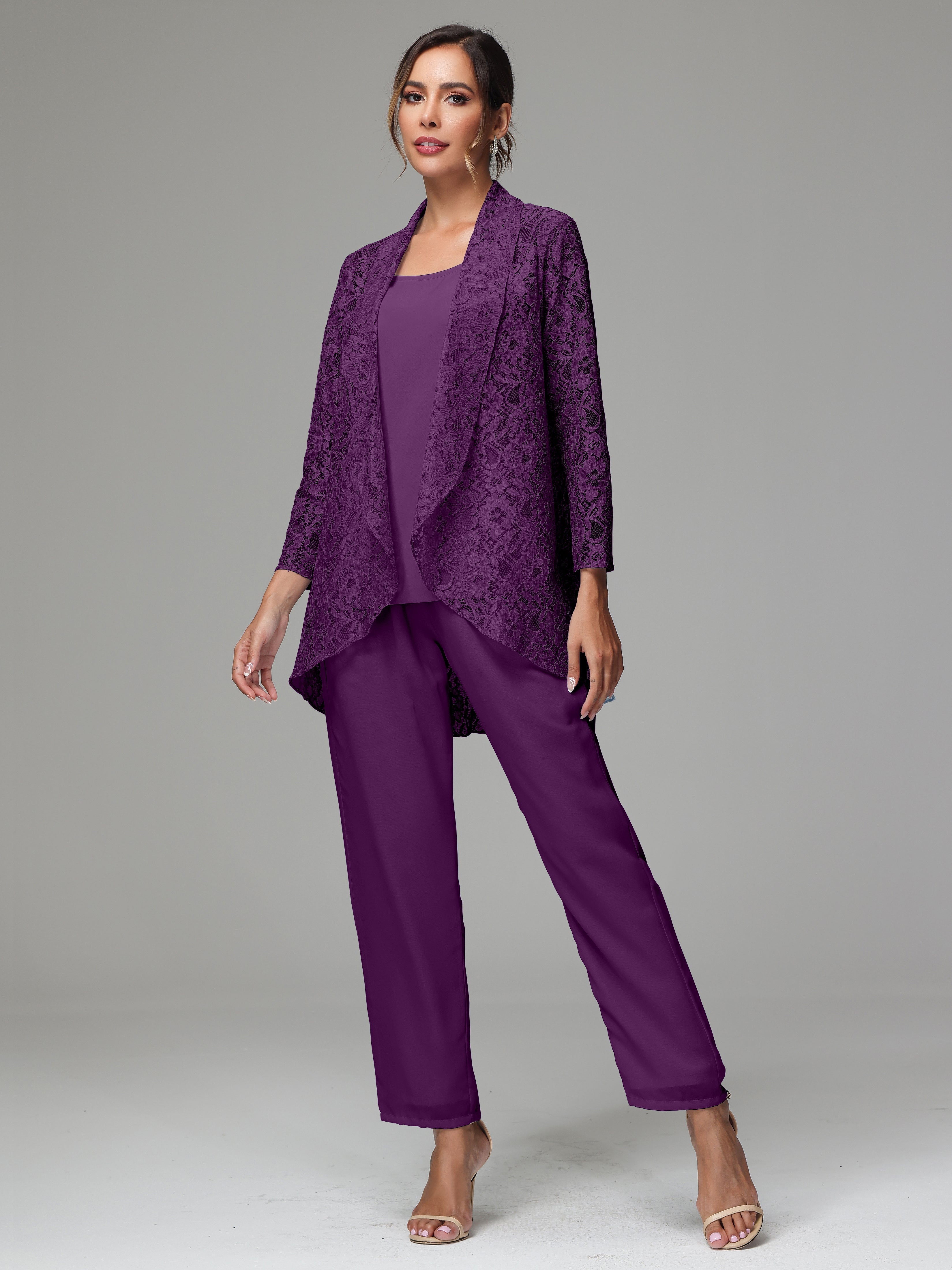 3 Pieces Delicate Chiffon Lace Mother of Bride Dress Pant Suits