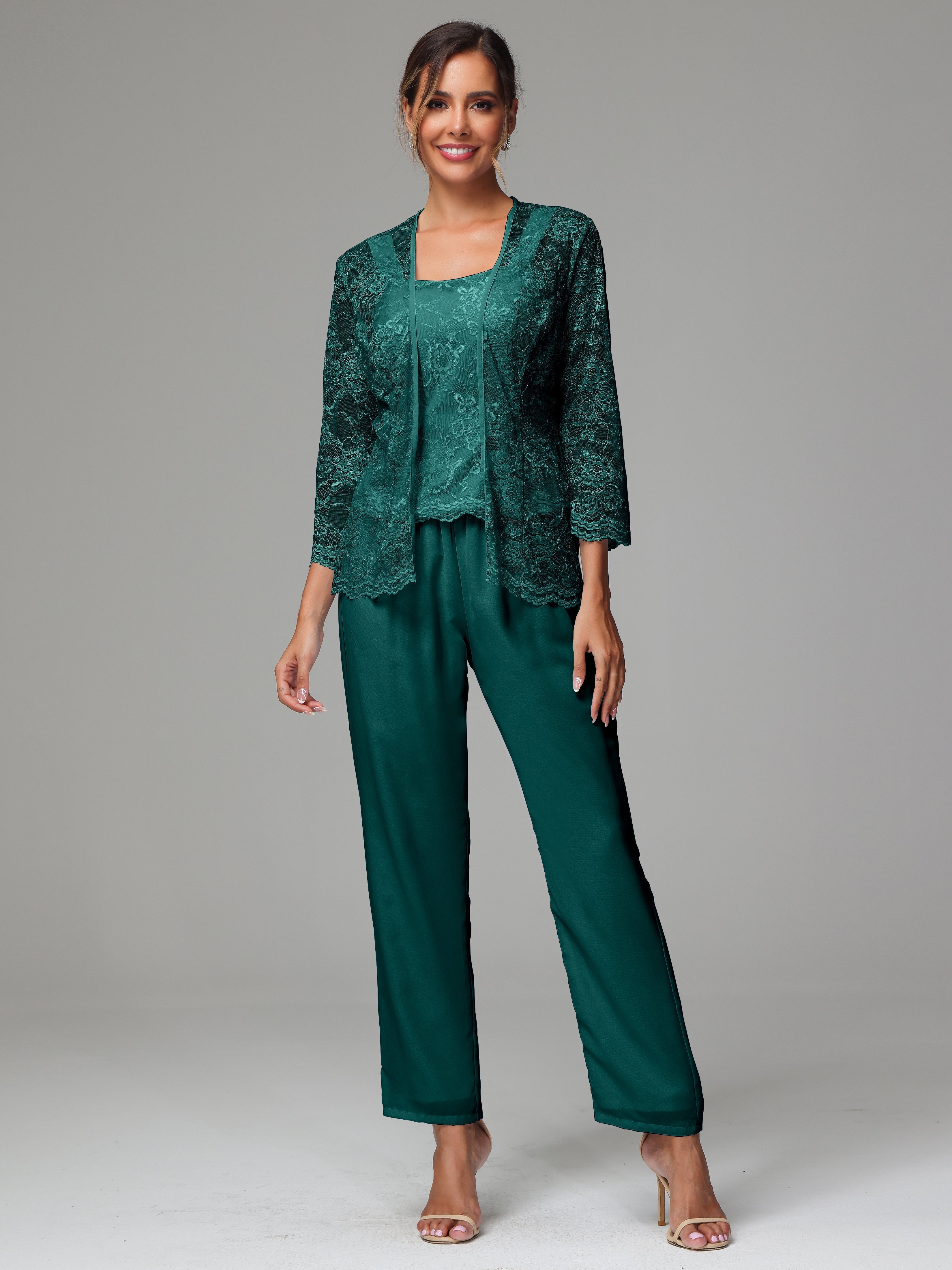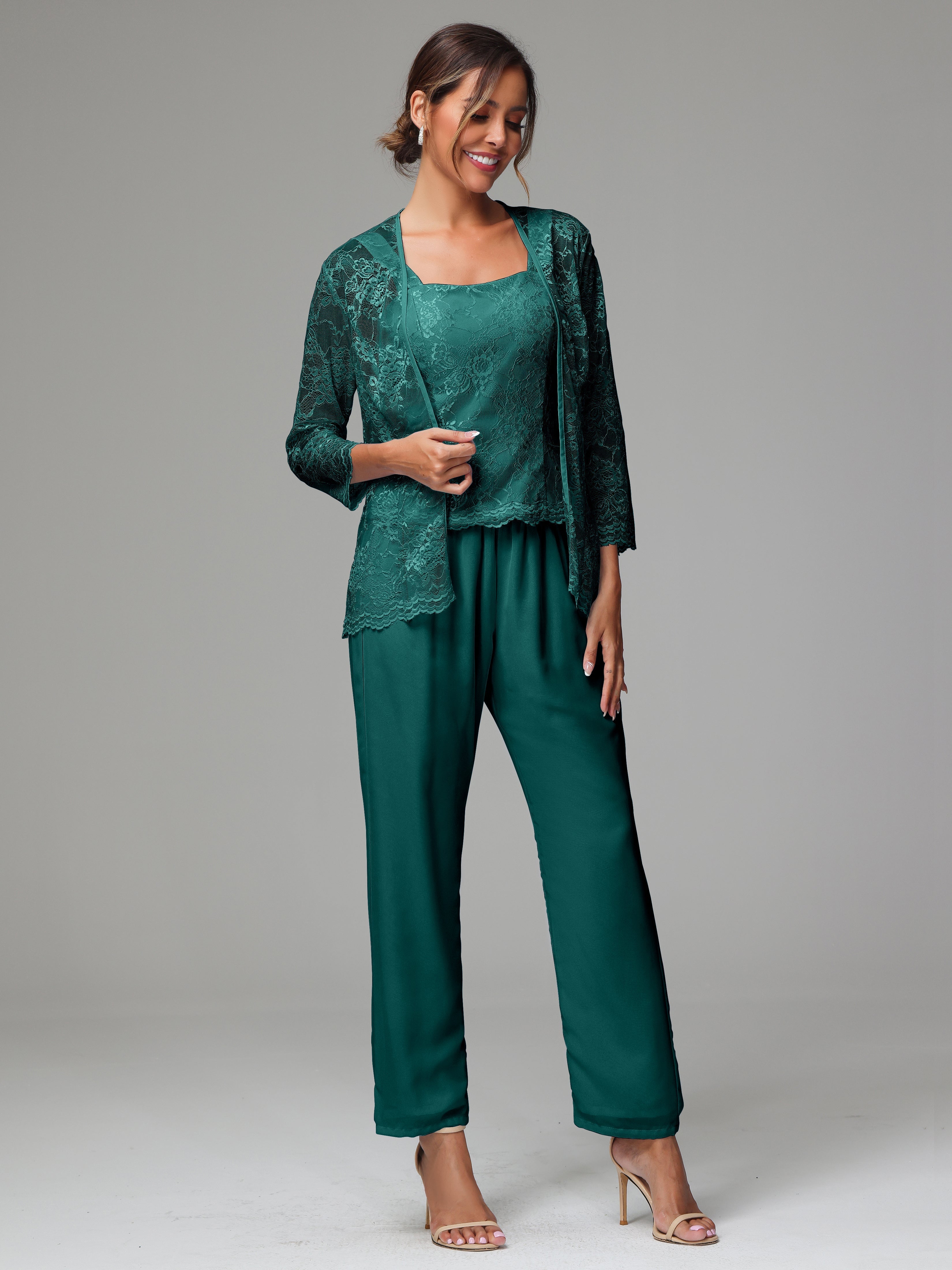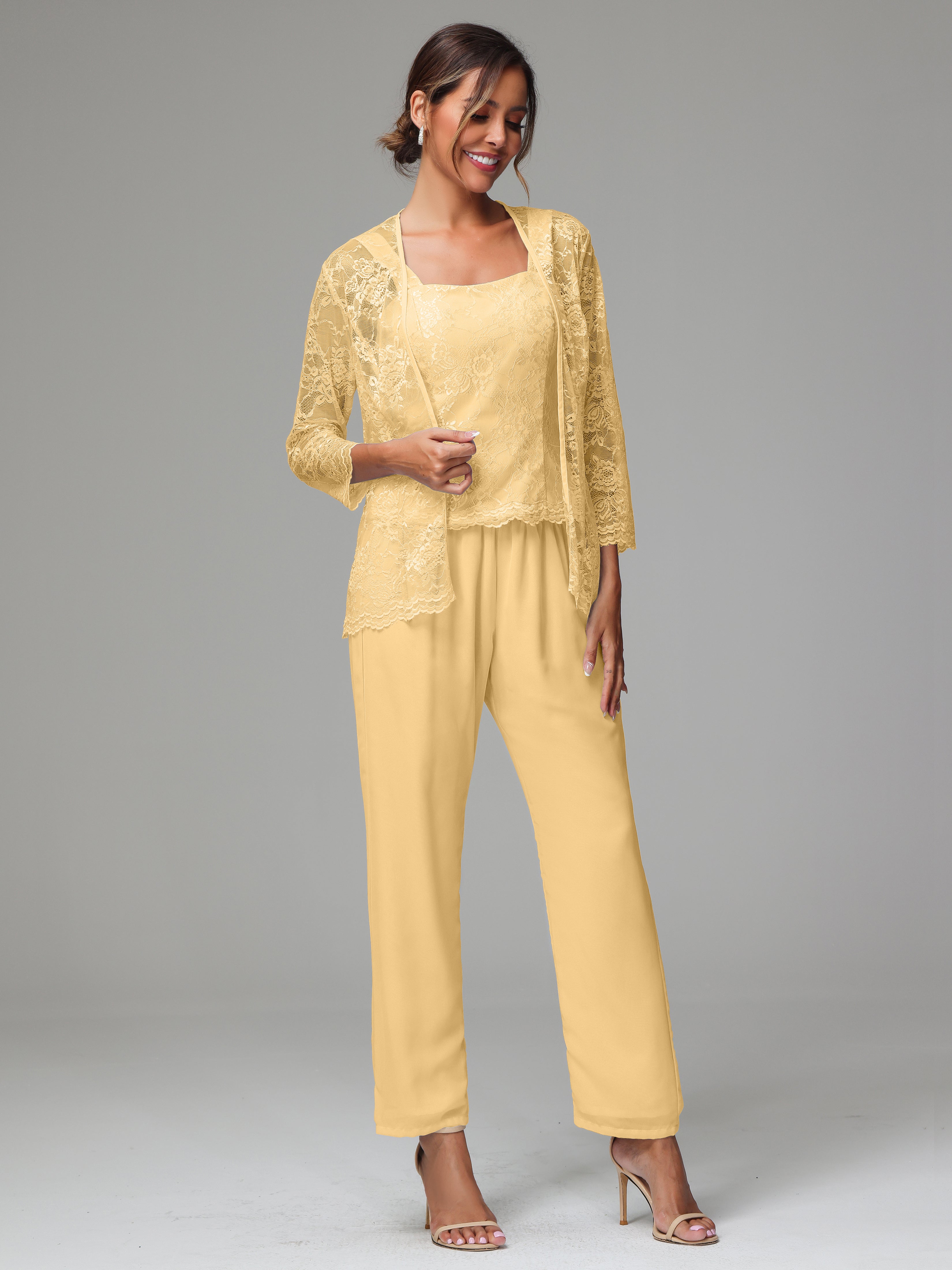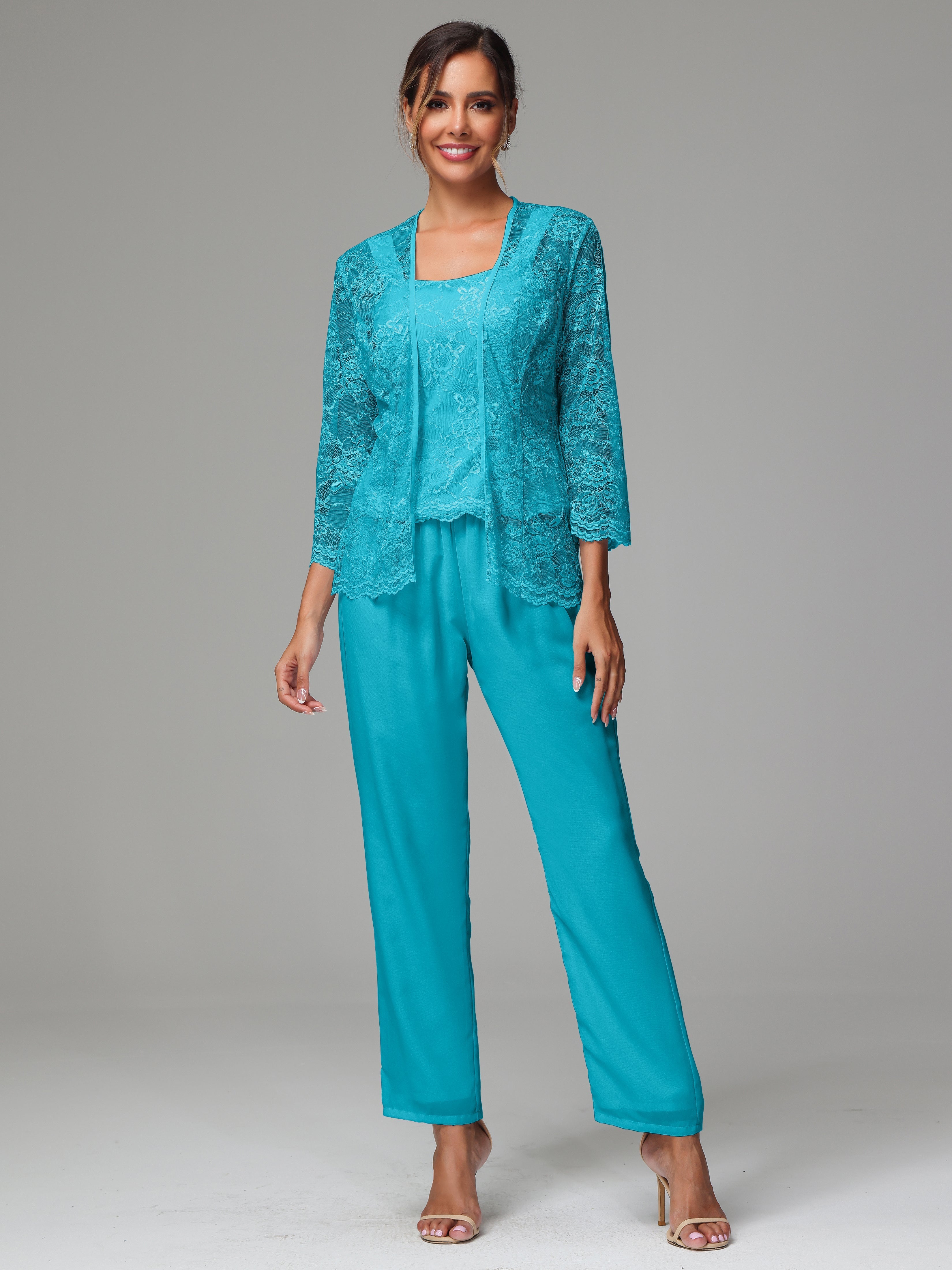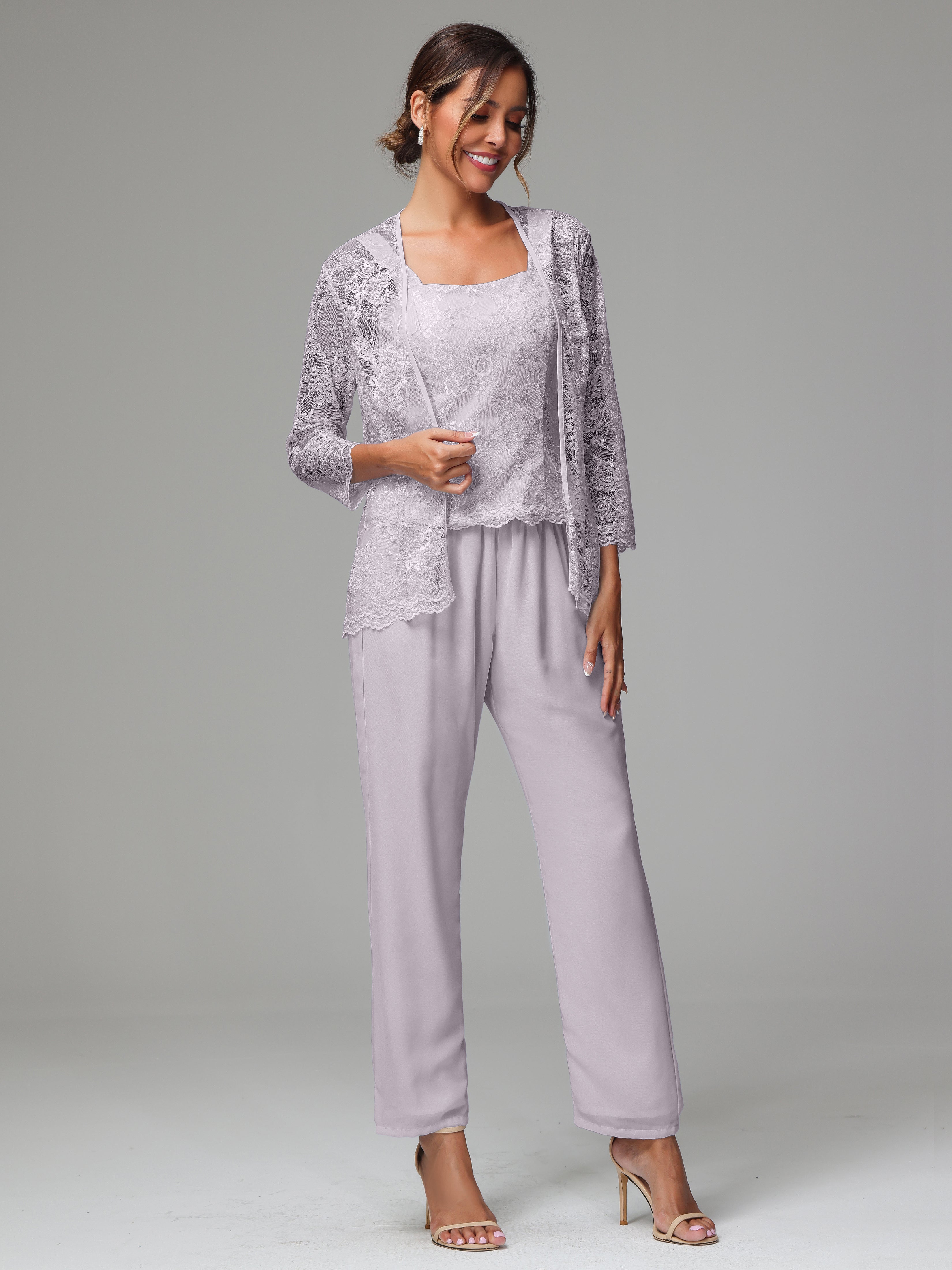 This 3 Pieces Long Sleeves Chiffon Lace Mother Of The Bride Dress Pants Suits is an exquisite ensemble crafted from high-quality chiffon and lace fabric. The set features a long-sleeve jacket, dress, and pants, all exquisitely designed to make you look and feel your best on the big day.
