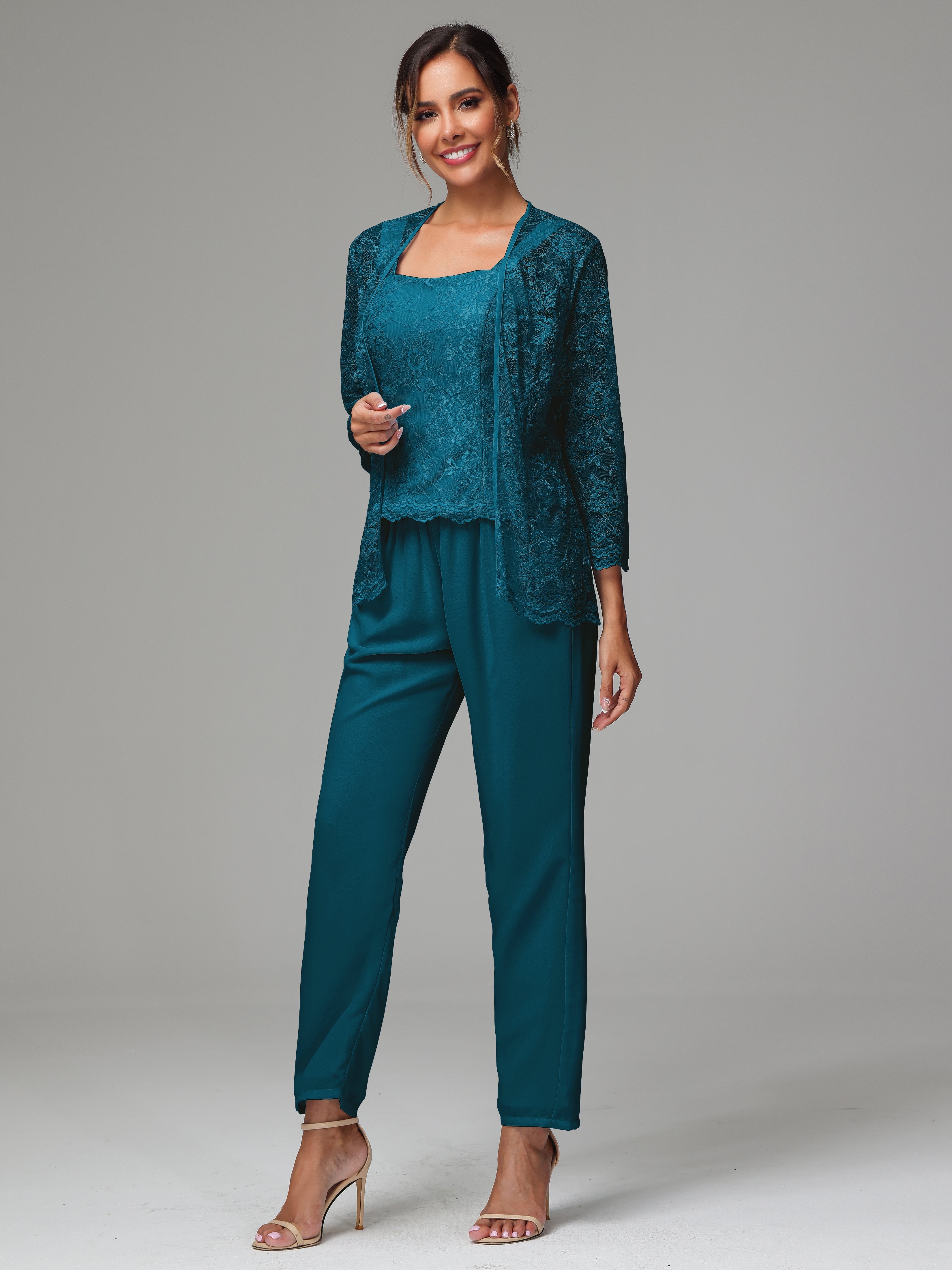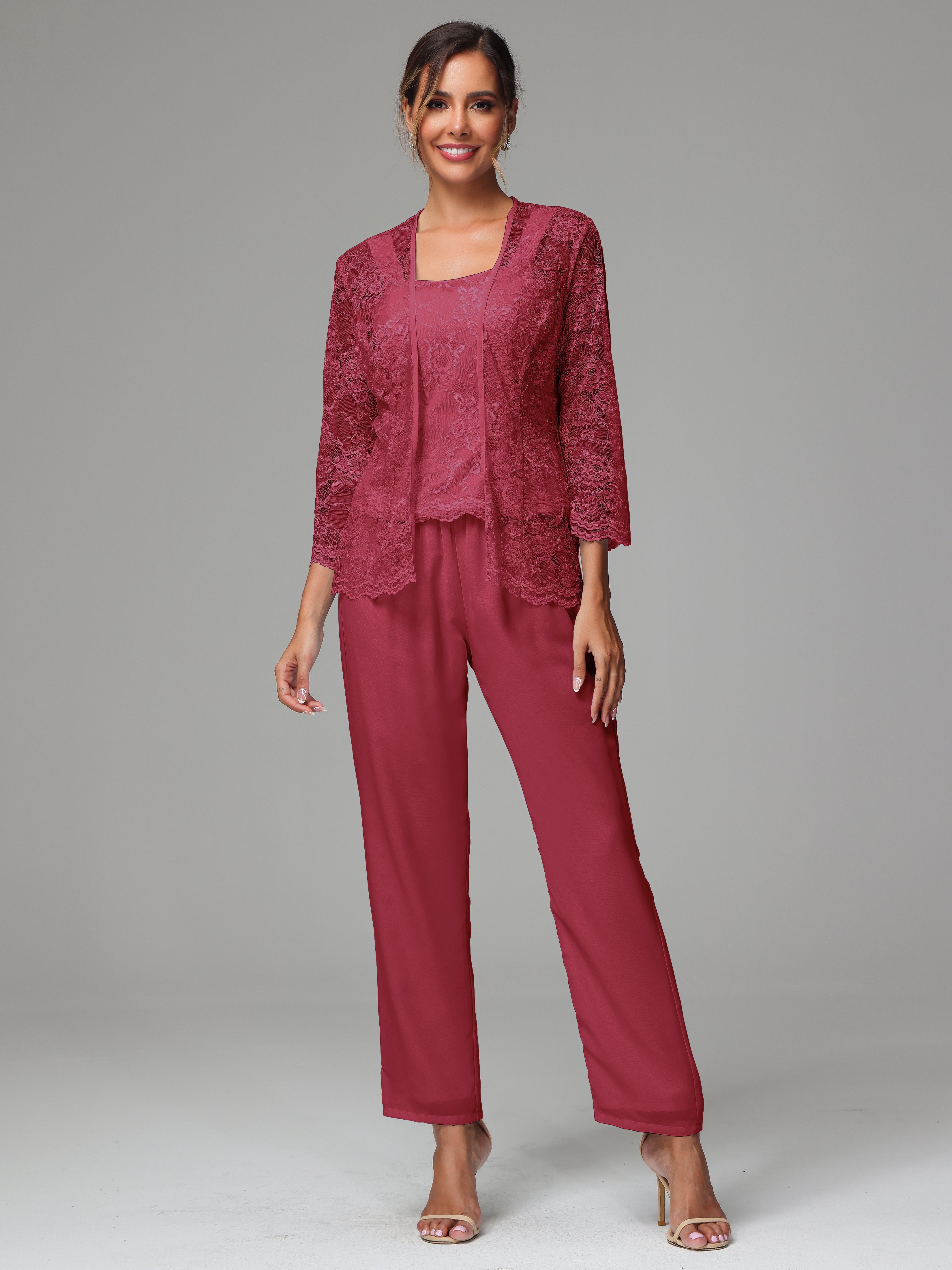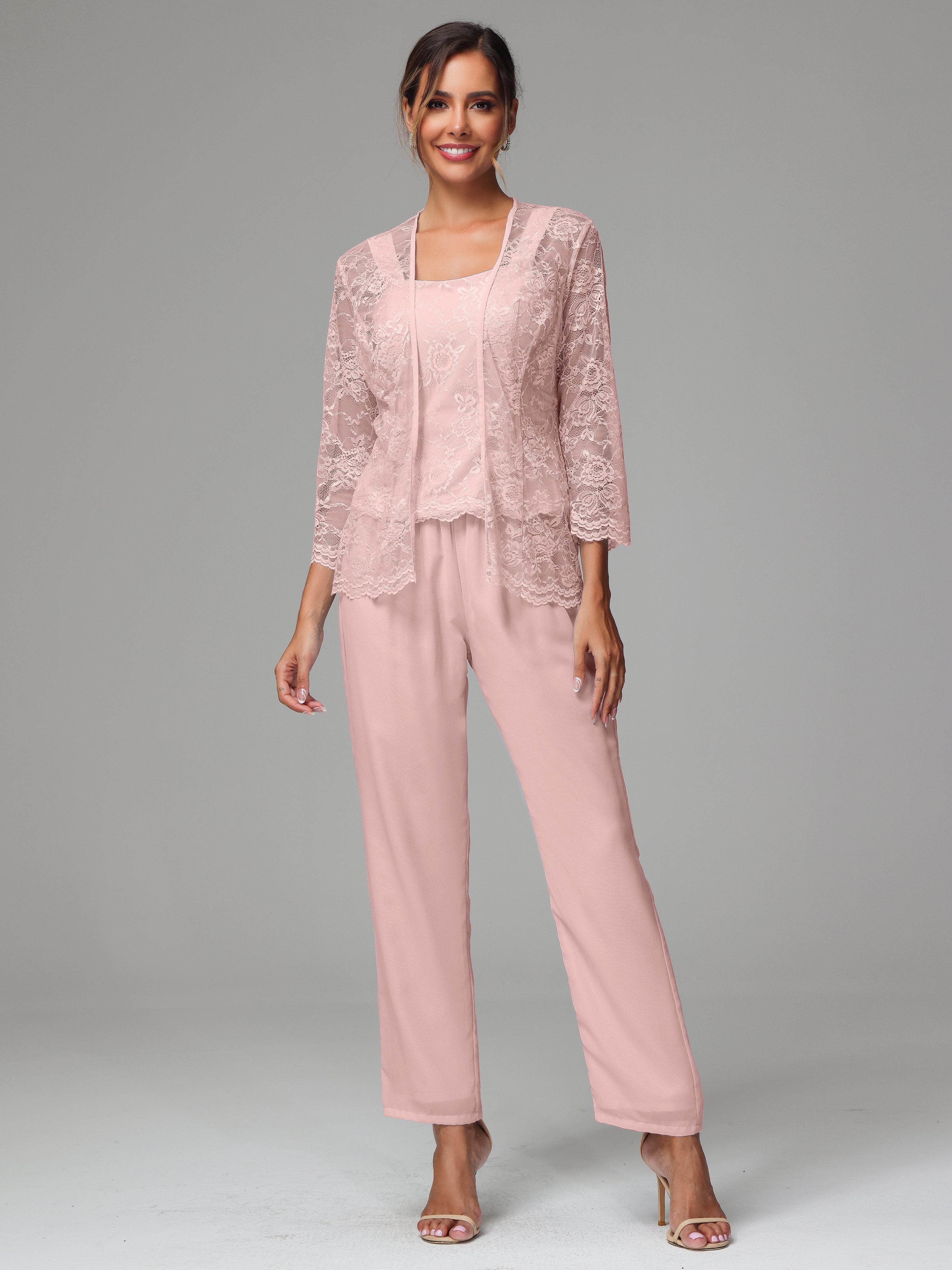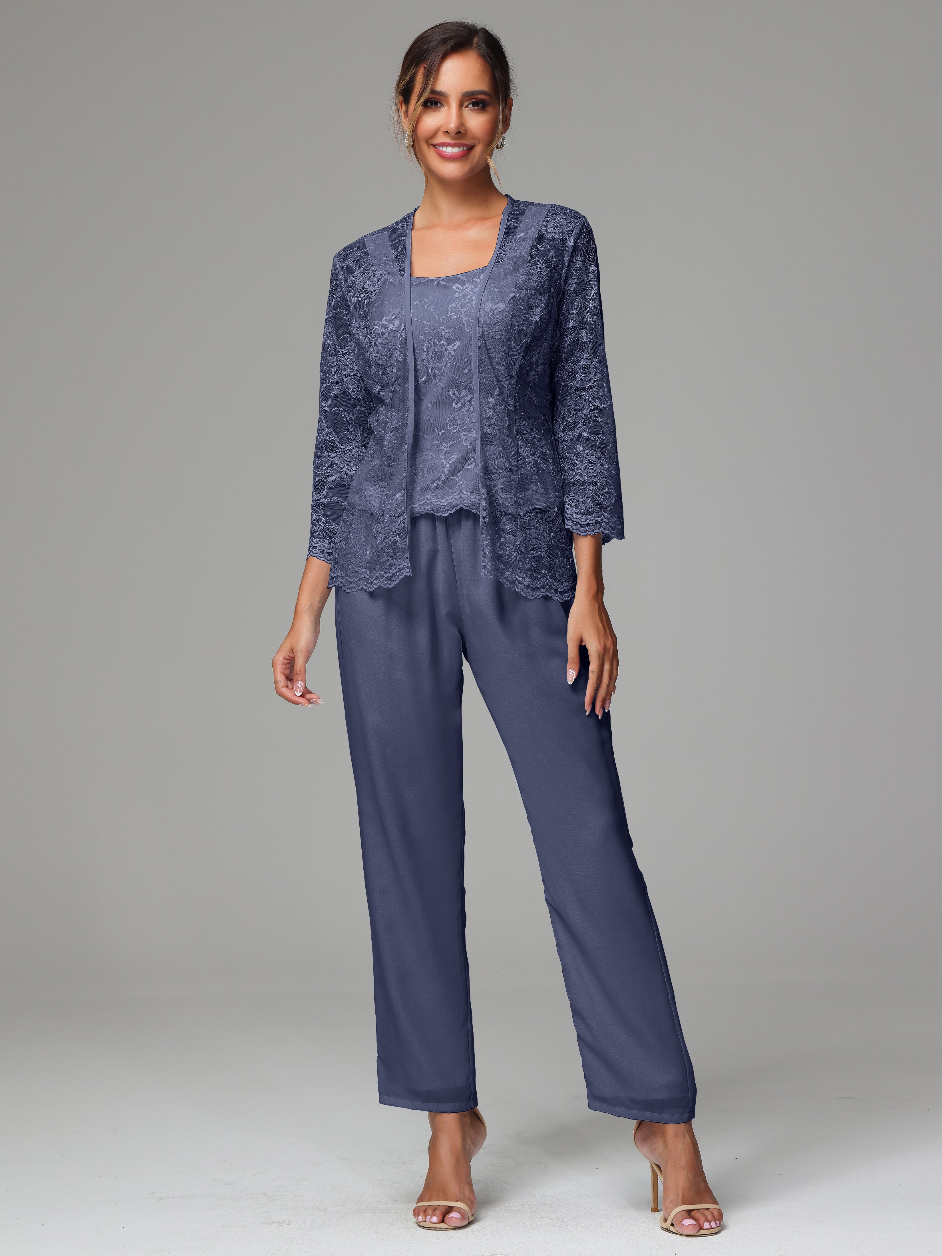 This 3 Pieces Long Sleeves Chiffon Lace Mother Of The Bride Dress Pants Suits is an exquisite ensemble crafted from high-quality chiffon and lace fabric. The set features a long-sleeve jacket, dress, and pants, all exquisitely designed to make you look and feel your best on the big day.