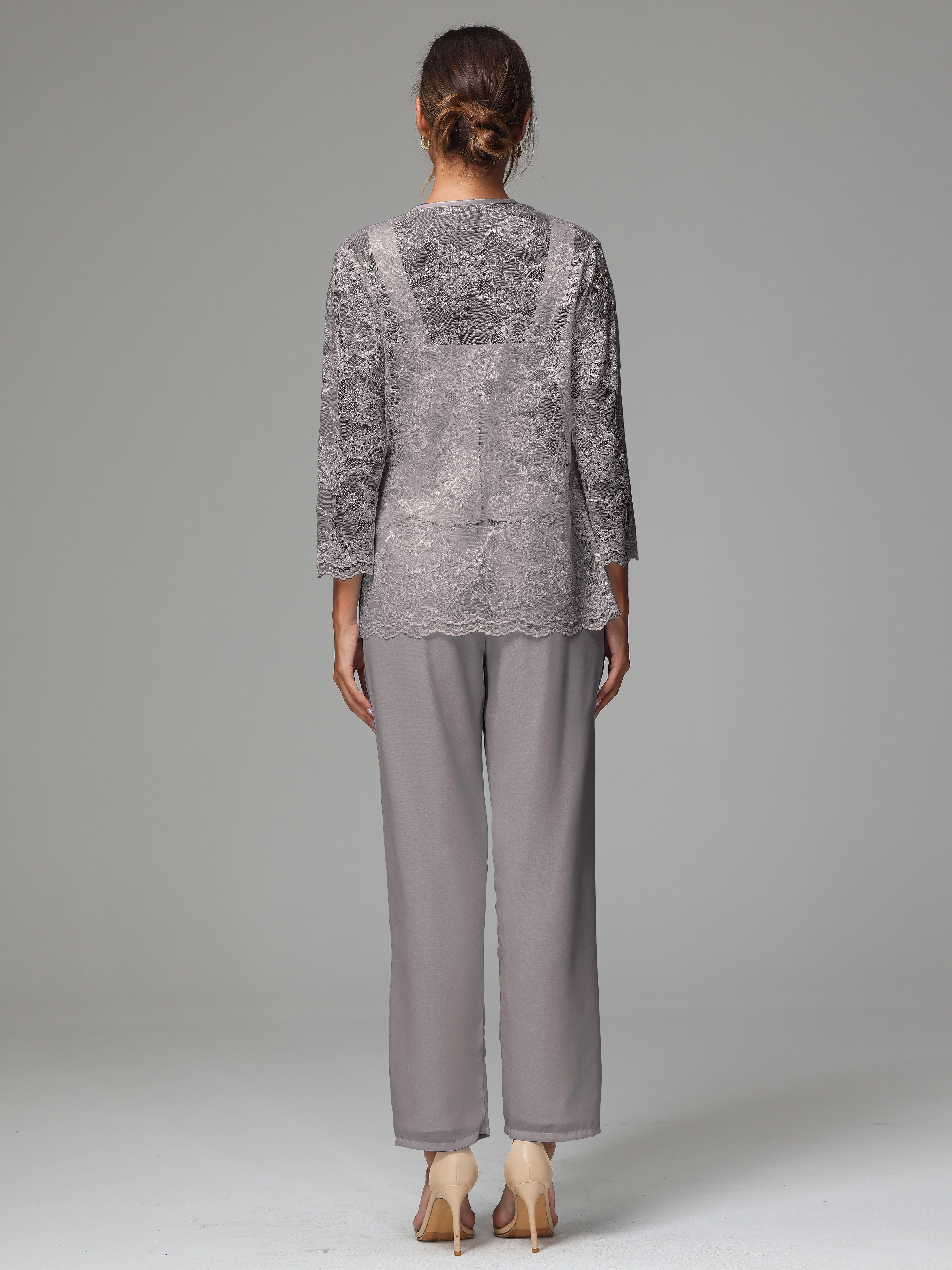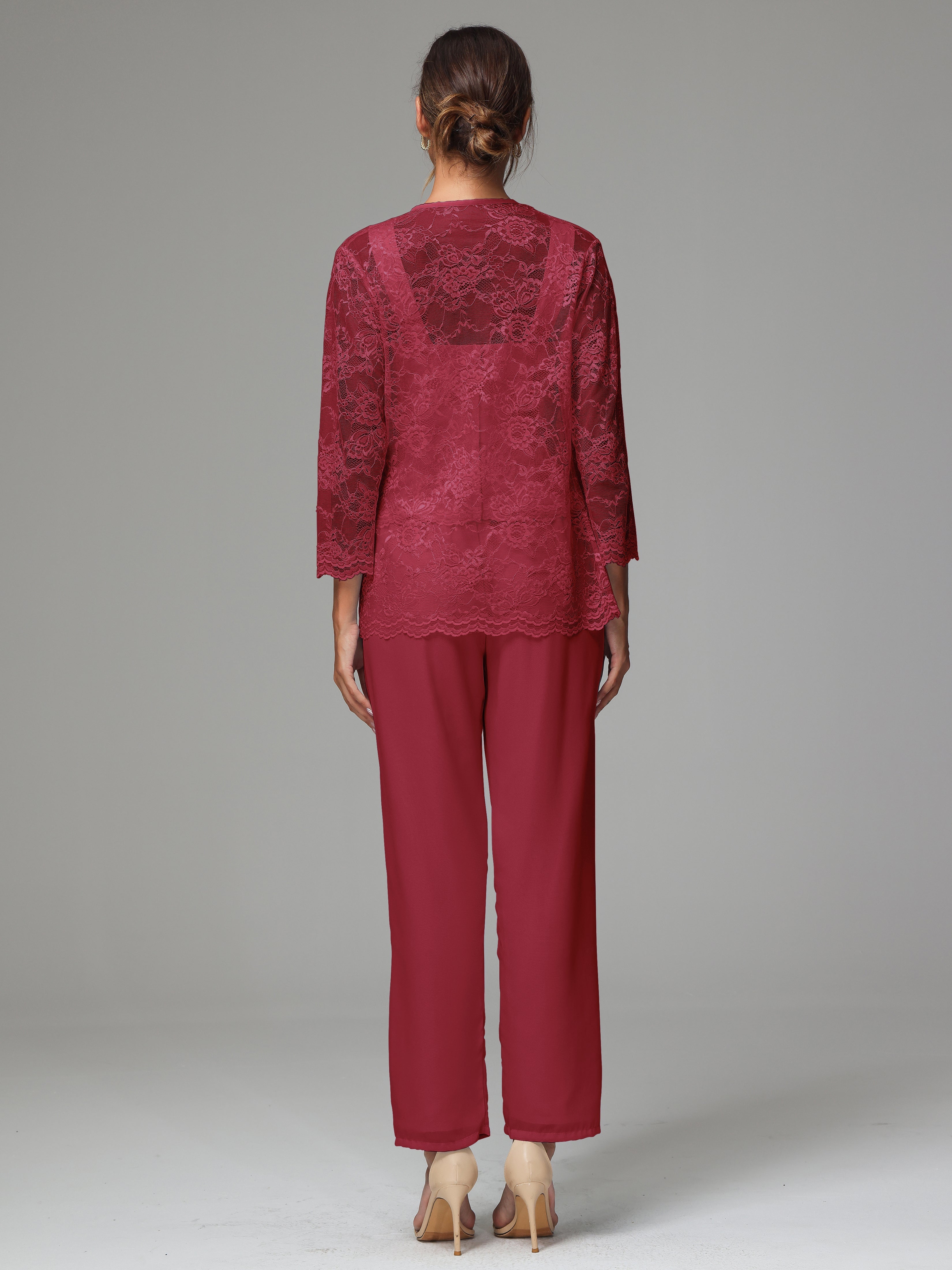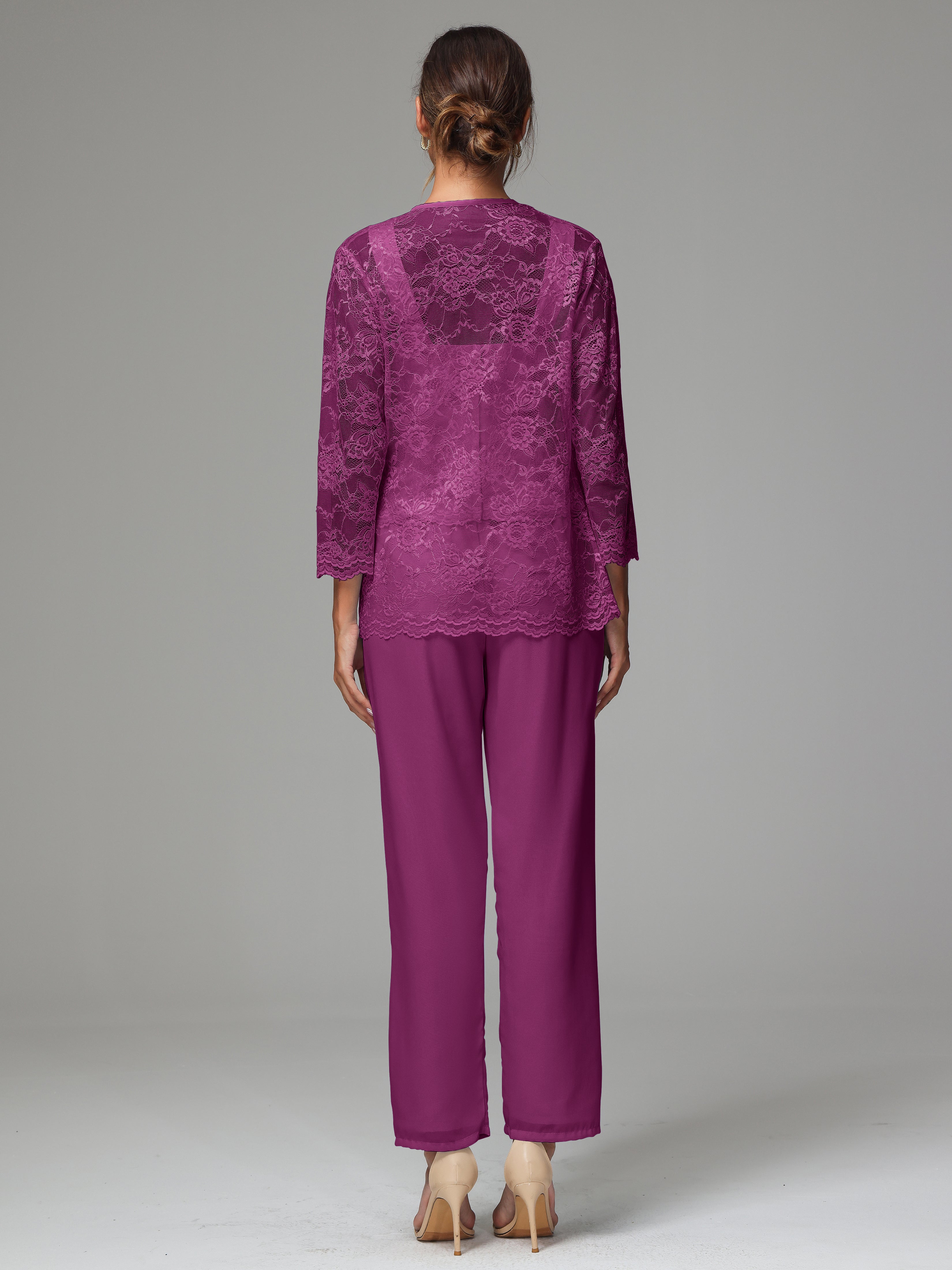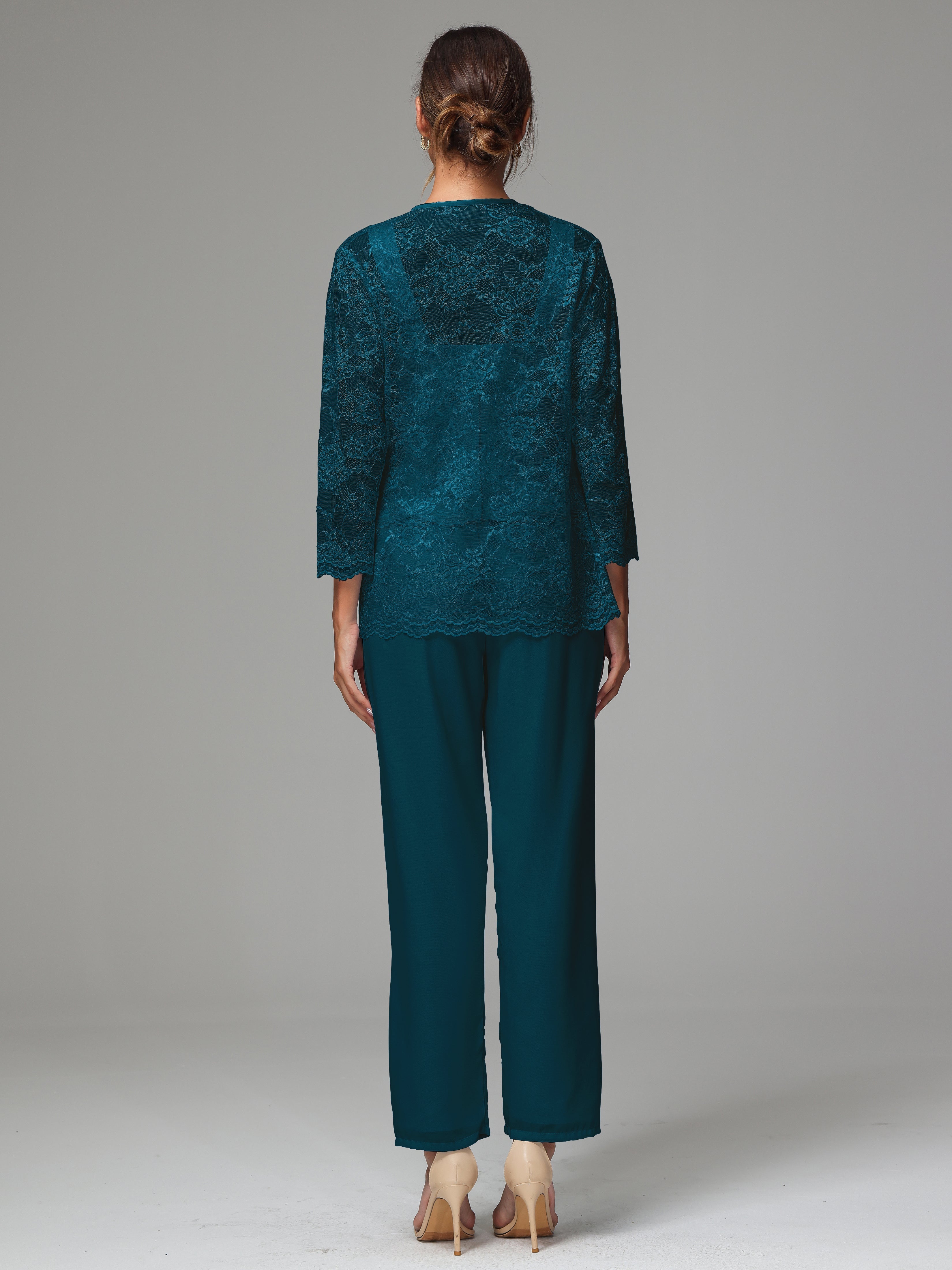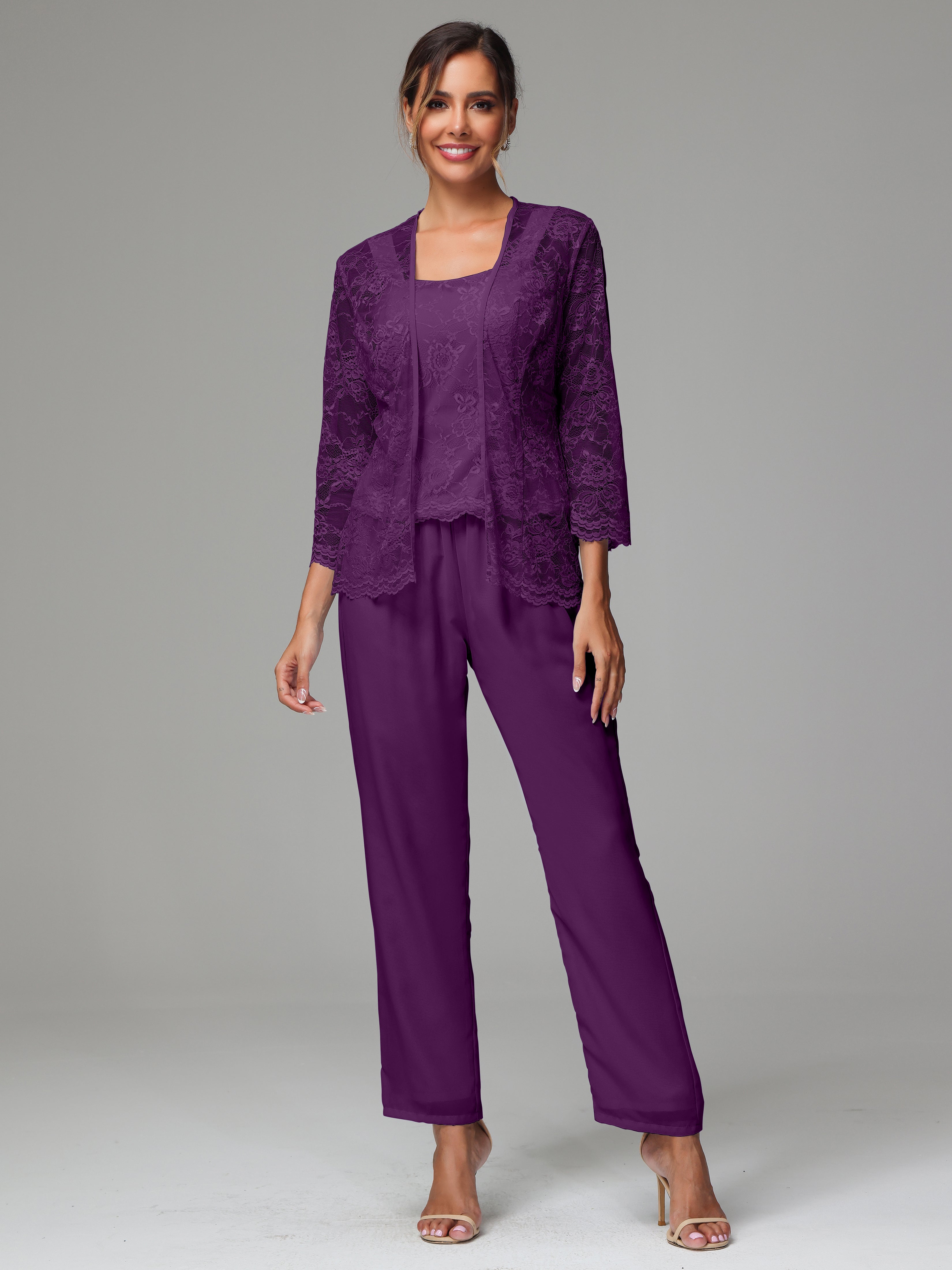 This 3 Pieces Long Sleeves Chiffon Lace Mother Of The Bride Dress Pants Suits is an exquisite ensemble crafted from high-quality chiffon and lace fabric. The set features a long-sleeve jacket, dress, and pants, all exquisitely designed to make you look and feel your best on the big day.