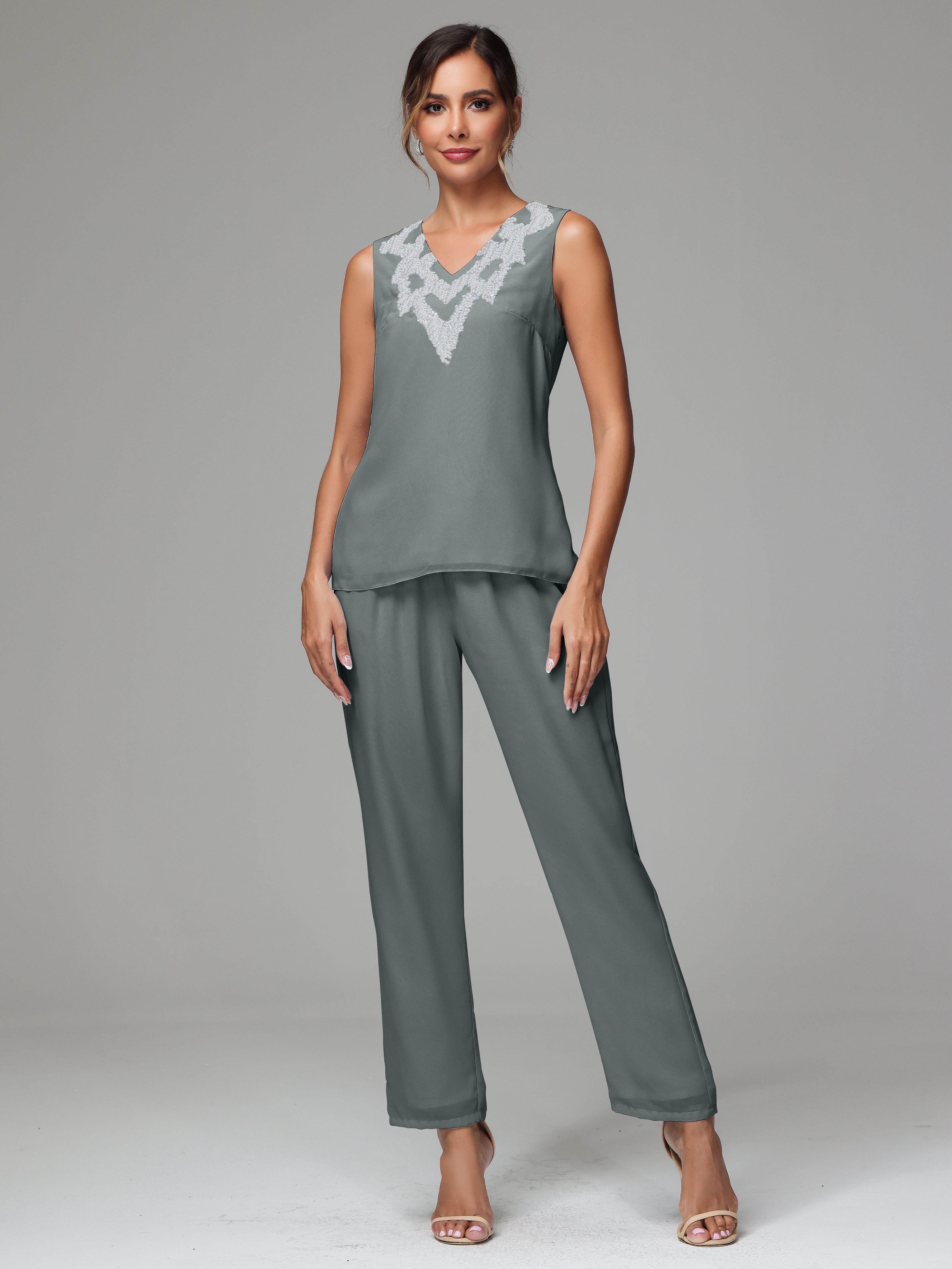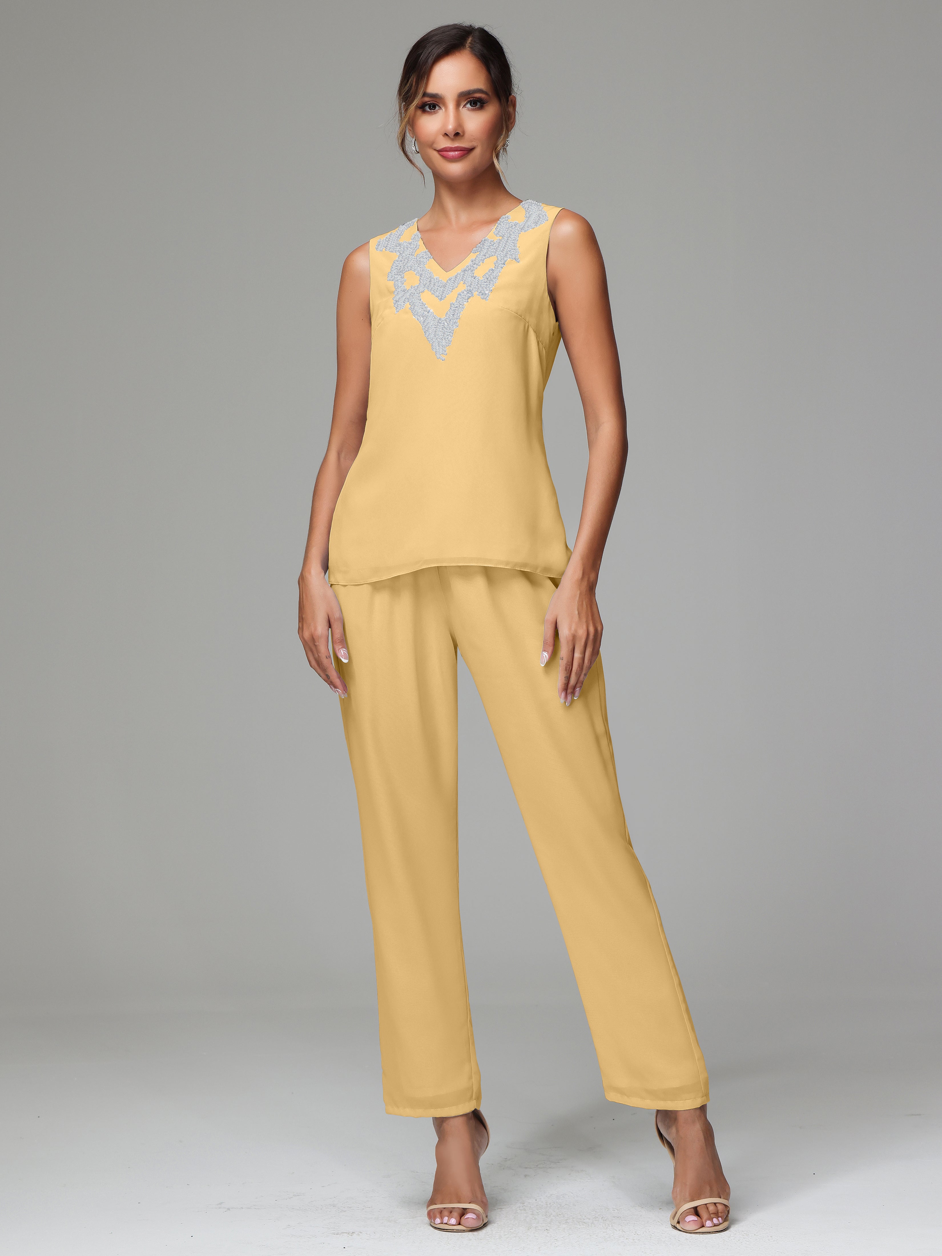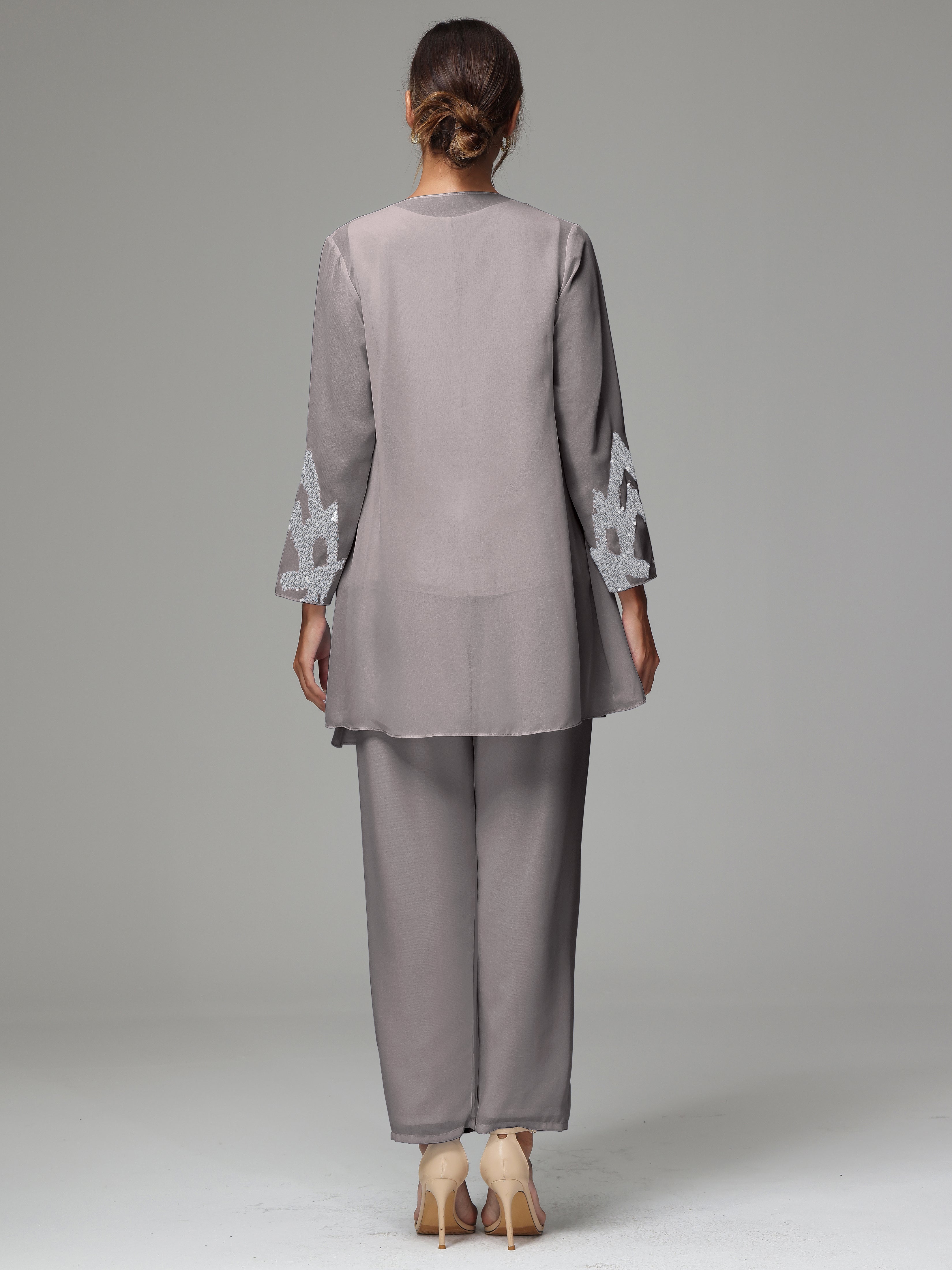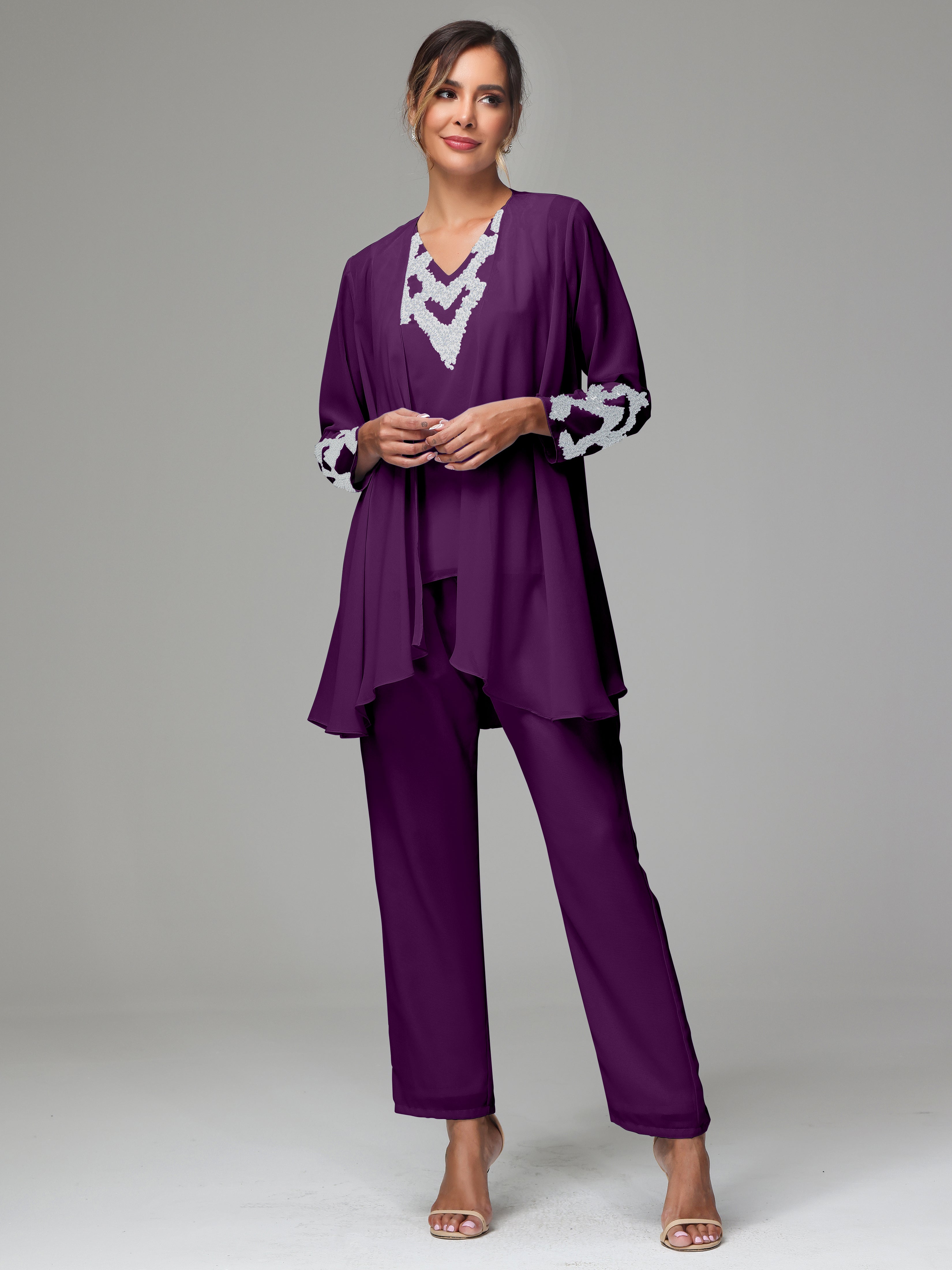 This 3 Pieces Long Sleeves Chiffon Lace Mother Of The Bride Dress Pants Suits is an exquisite ensemble crafted from high-quality chiffon and lace fabric. The set features a long-sleeve jacket, dress, and pants, all exquisitely designed to make you look and feel your best on the big day.