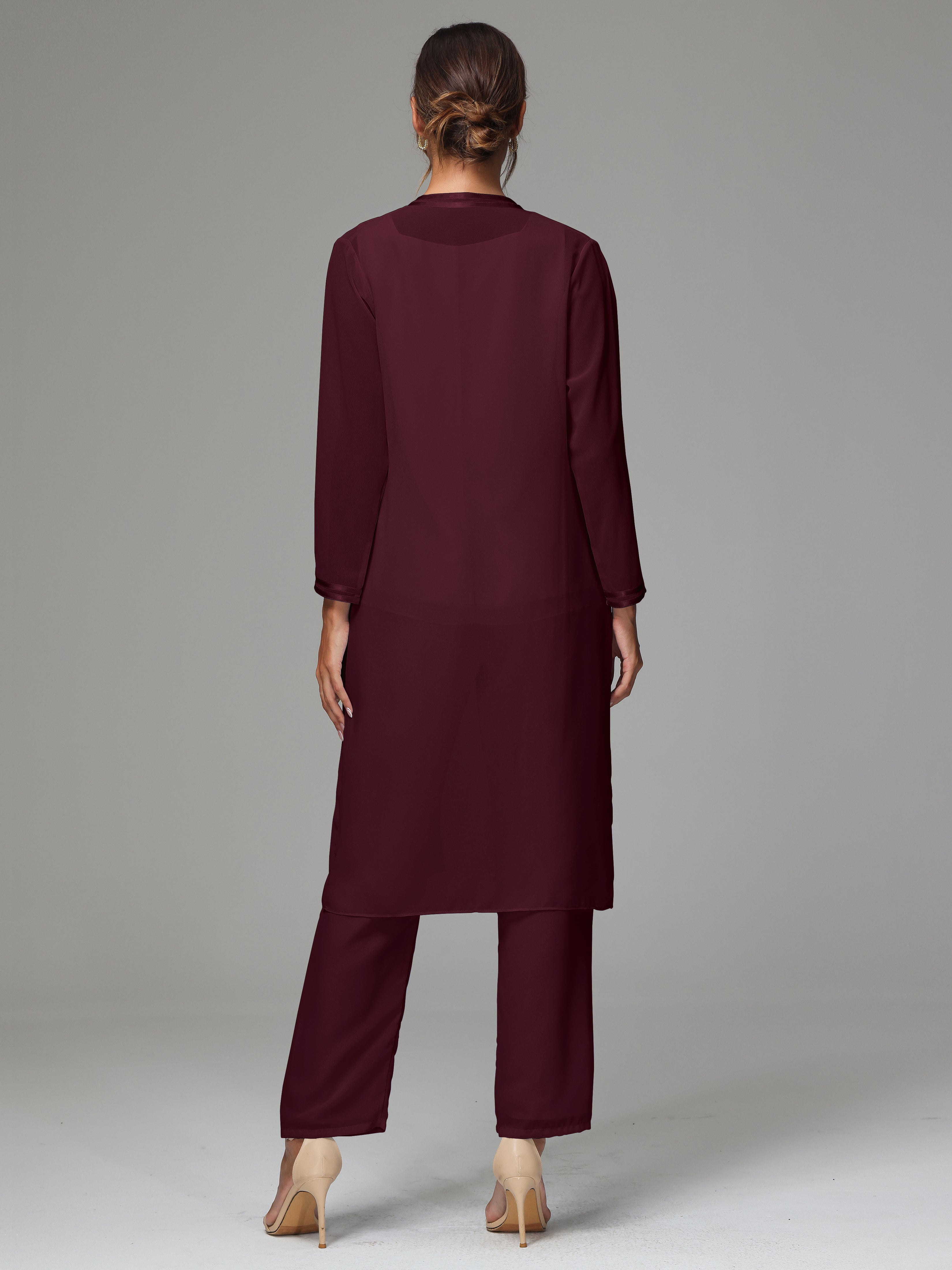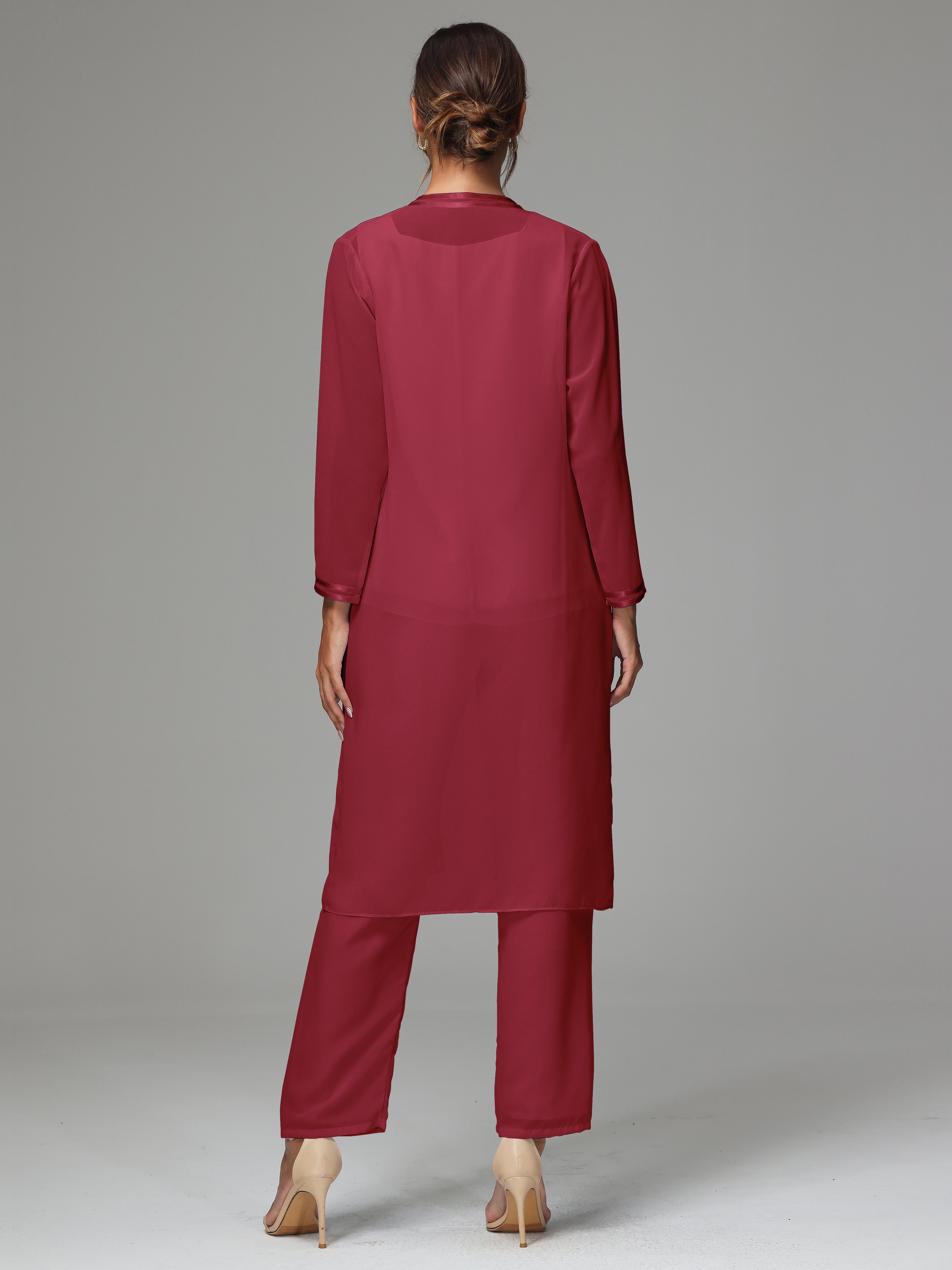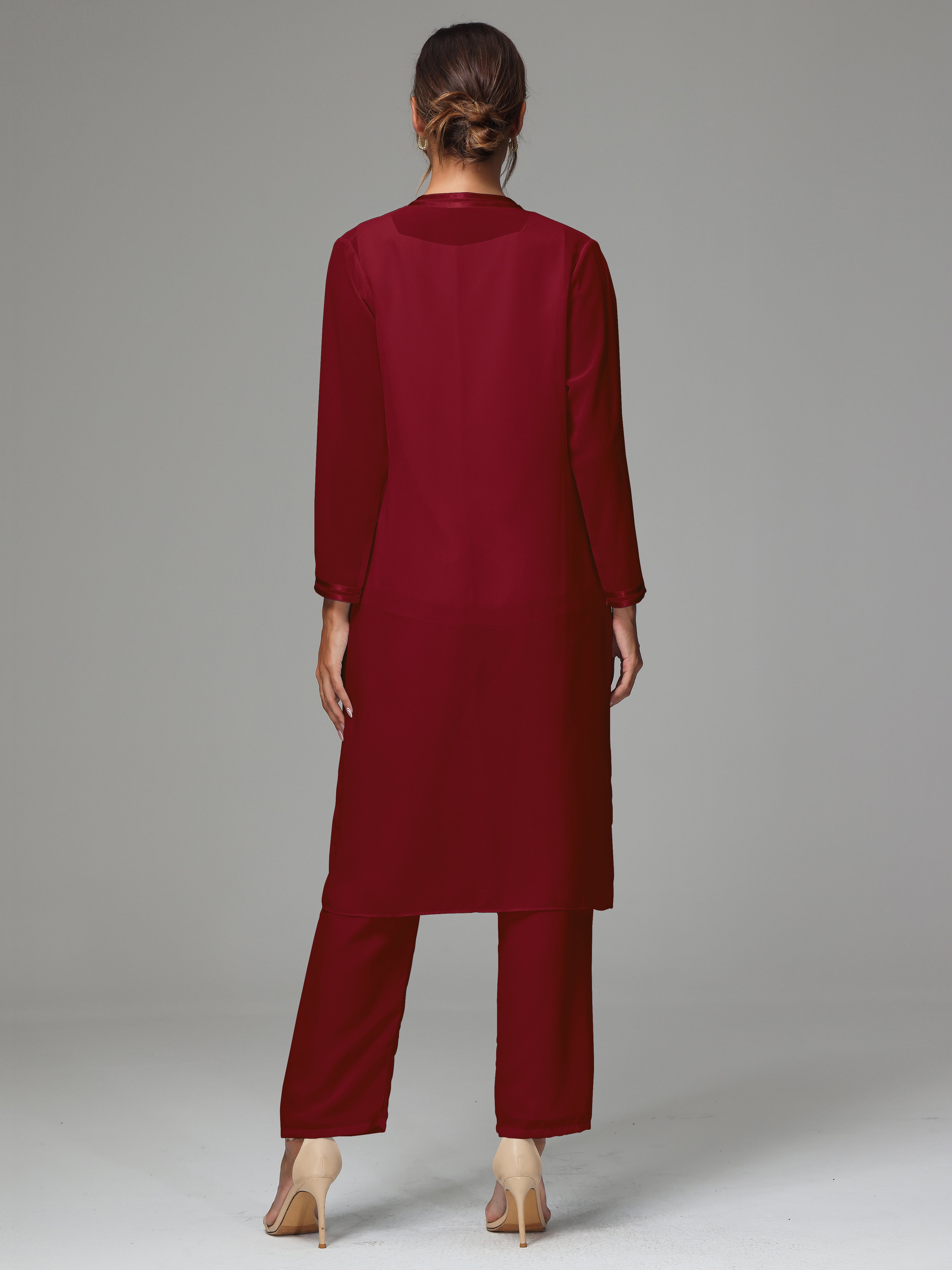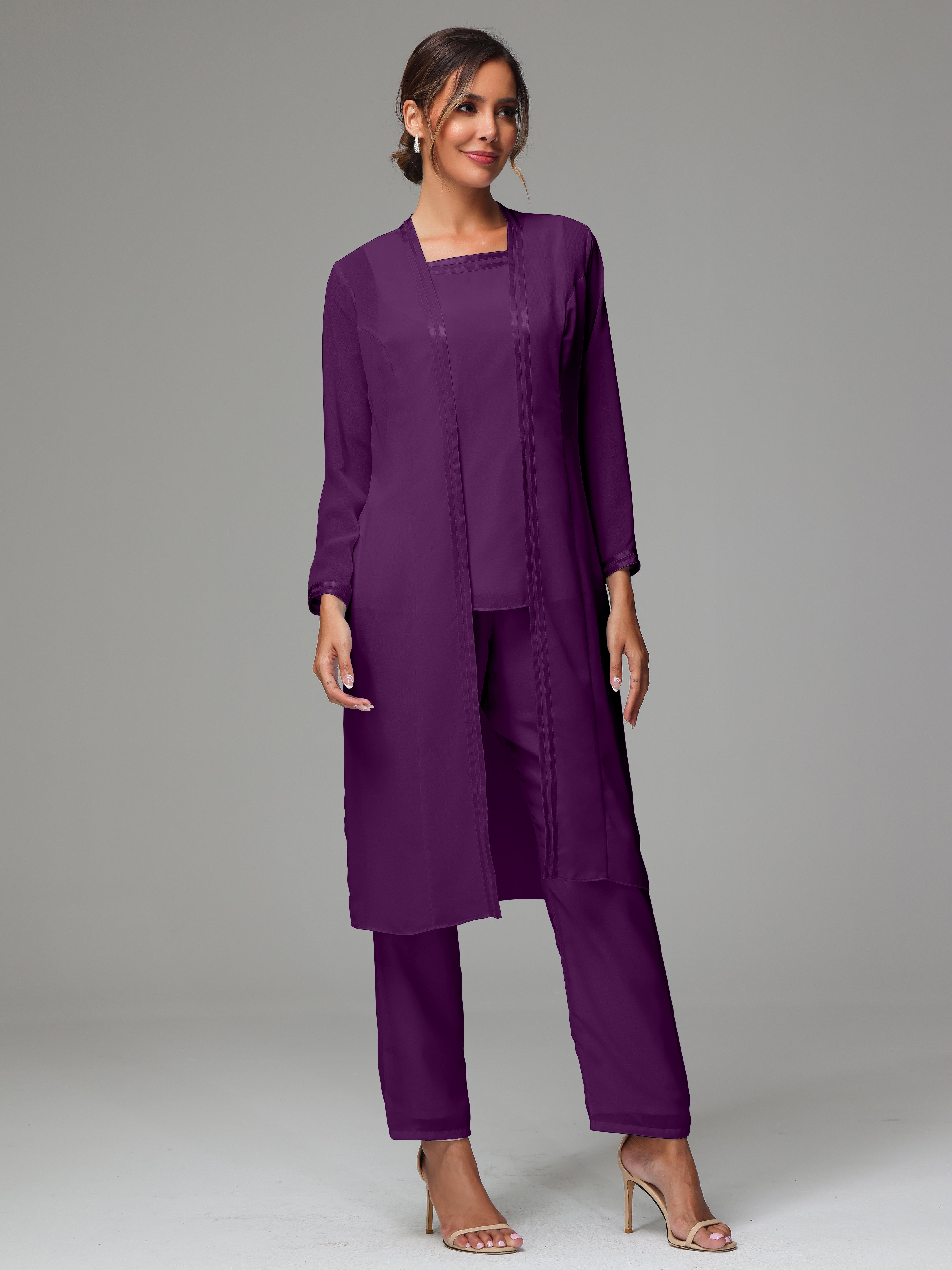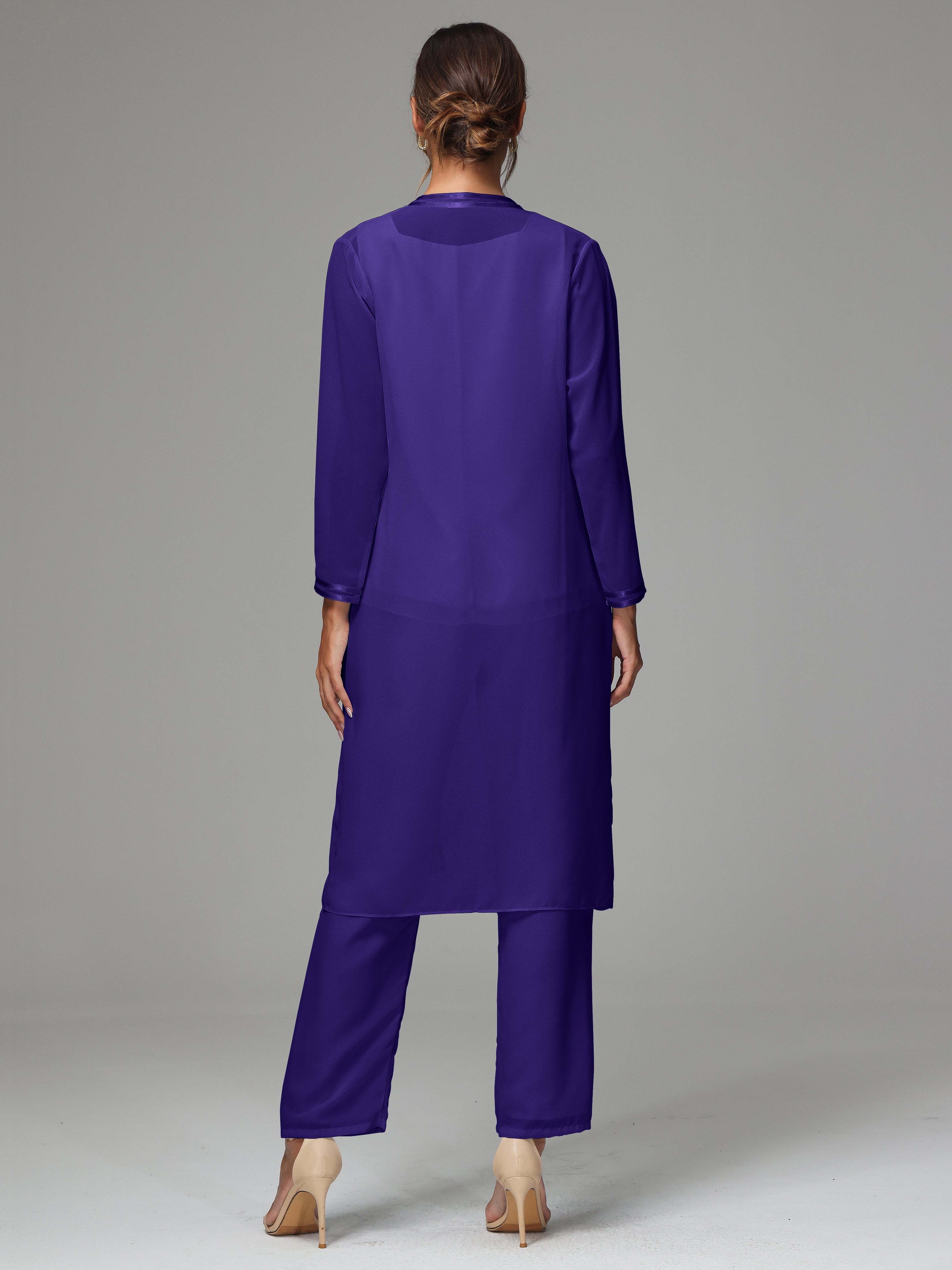 This 3 Pieces Long Sleeves Chiffon Mother Of The Bride Dress Pants Suit is a stylish and sophisticated choice for any mother of the bride. The 3-piece ensemble includes a long-sleeved top, matching pants and a chiffon overlay for elegant movement. Perfect for formal occasions, this timeless outfit is sure to make a lasting impression
