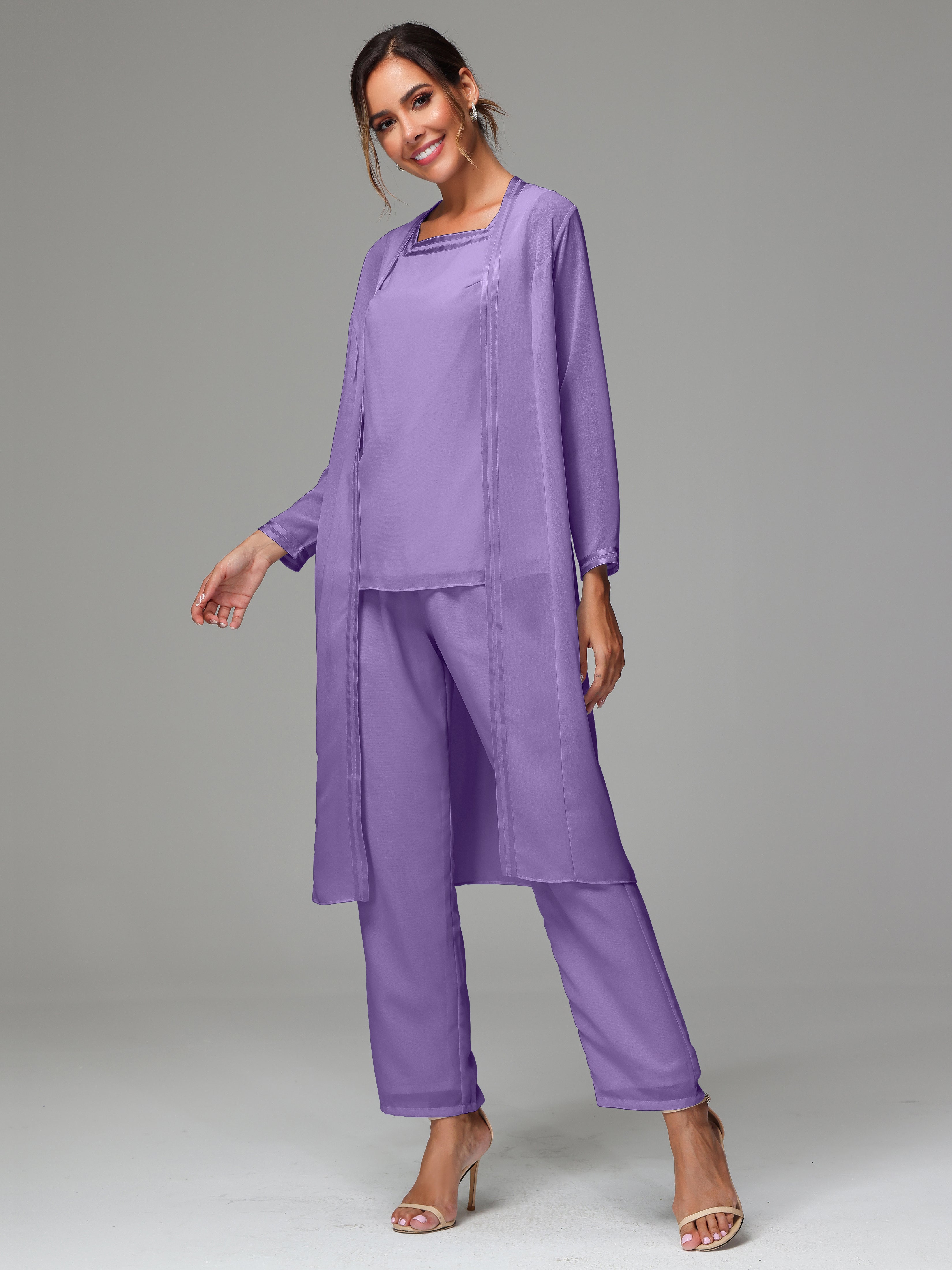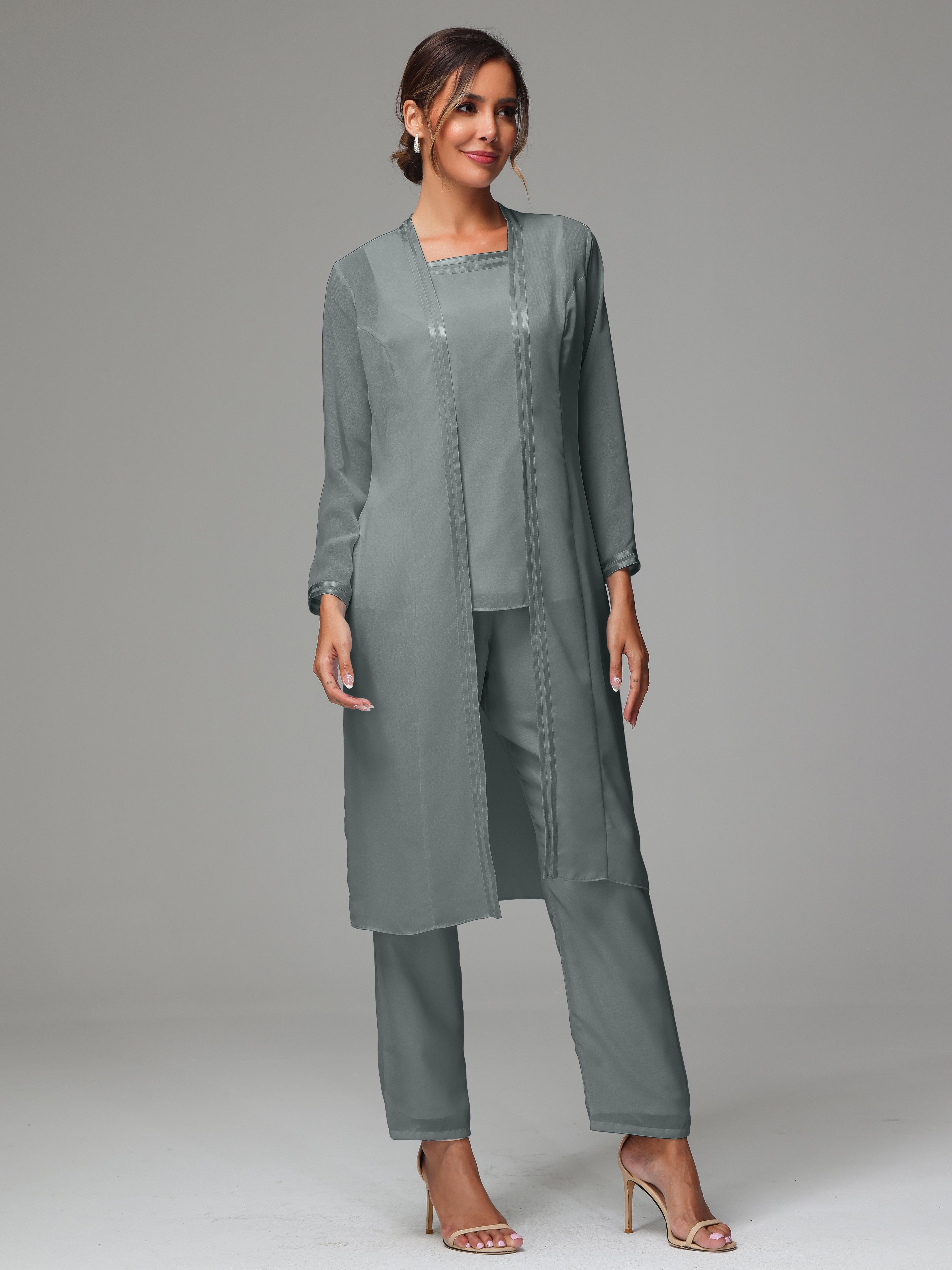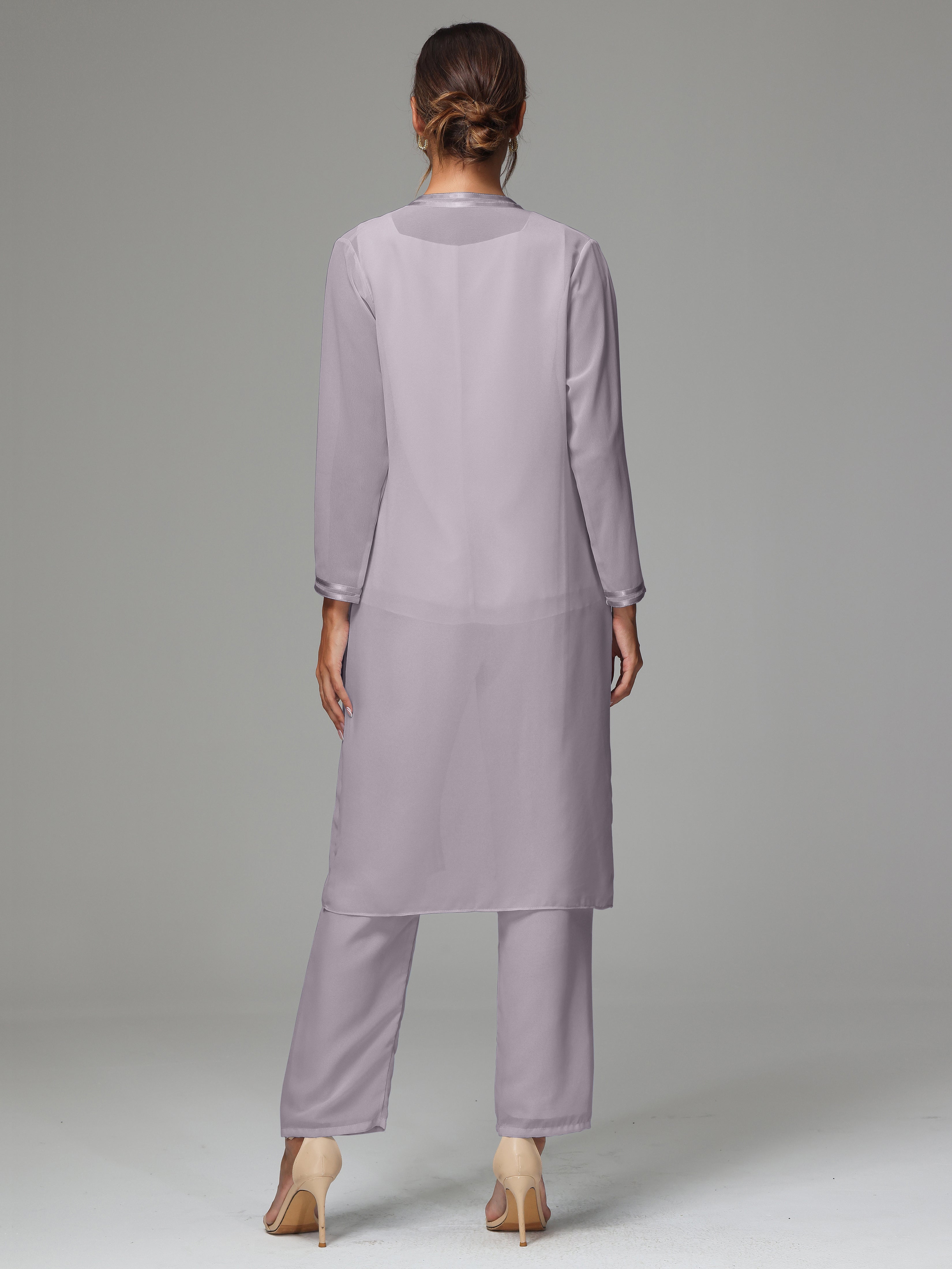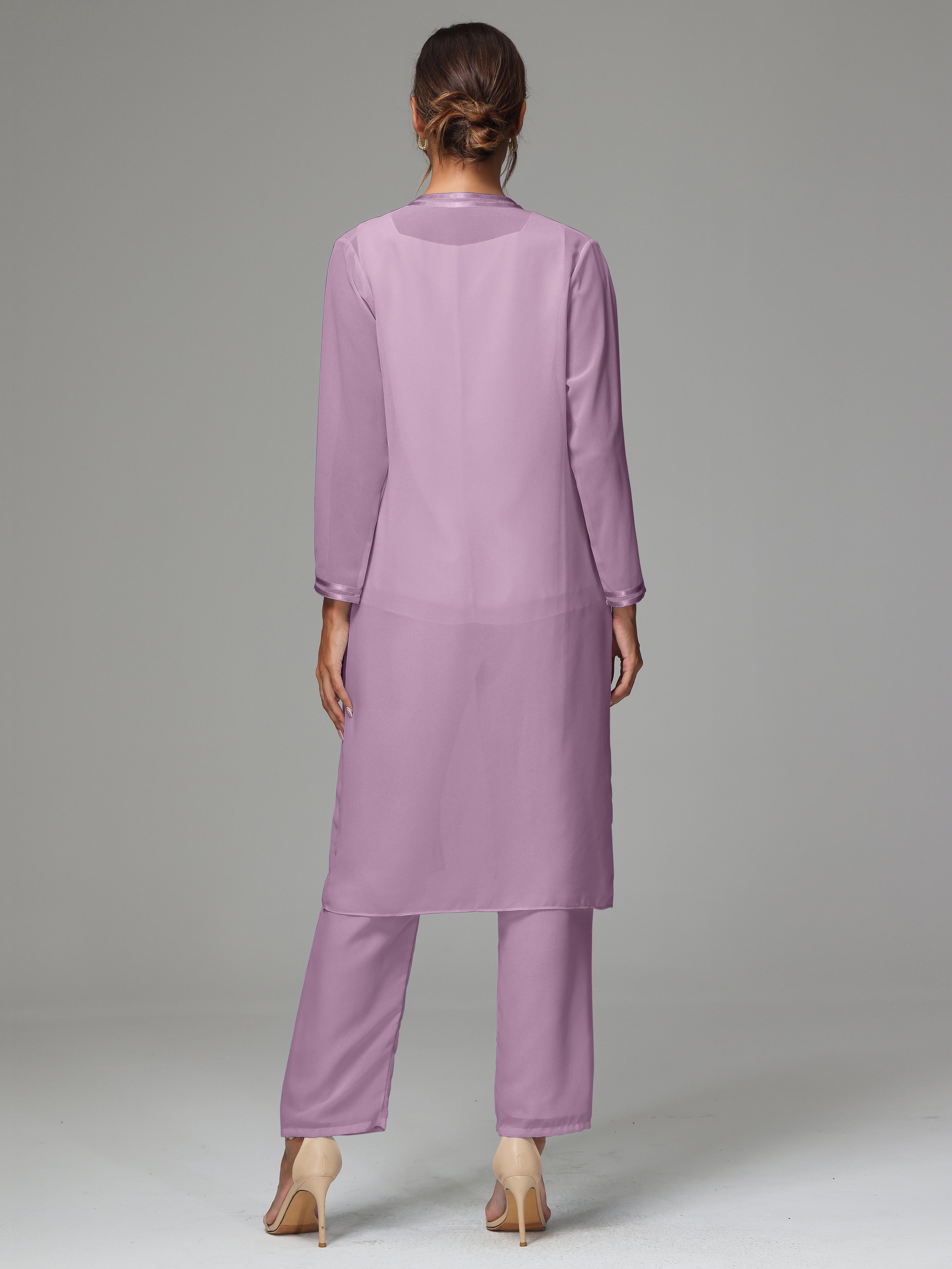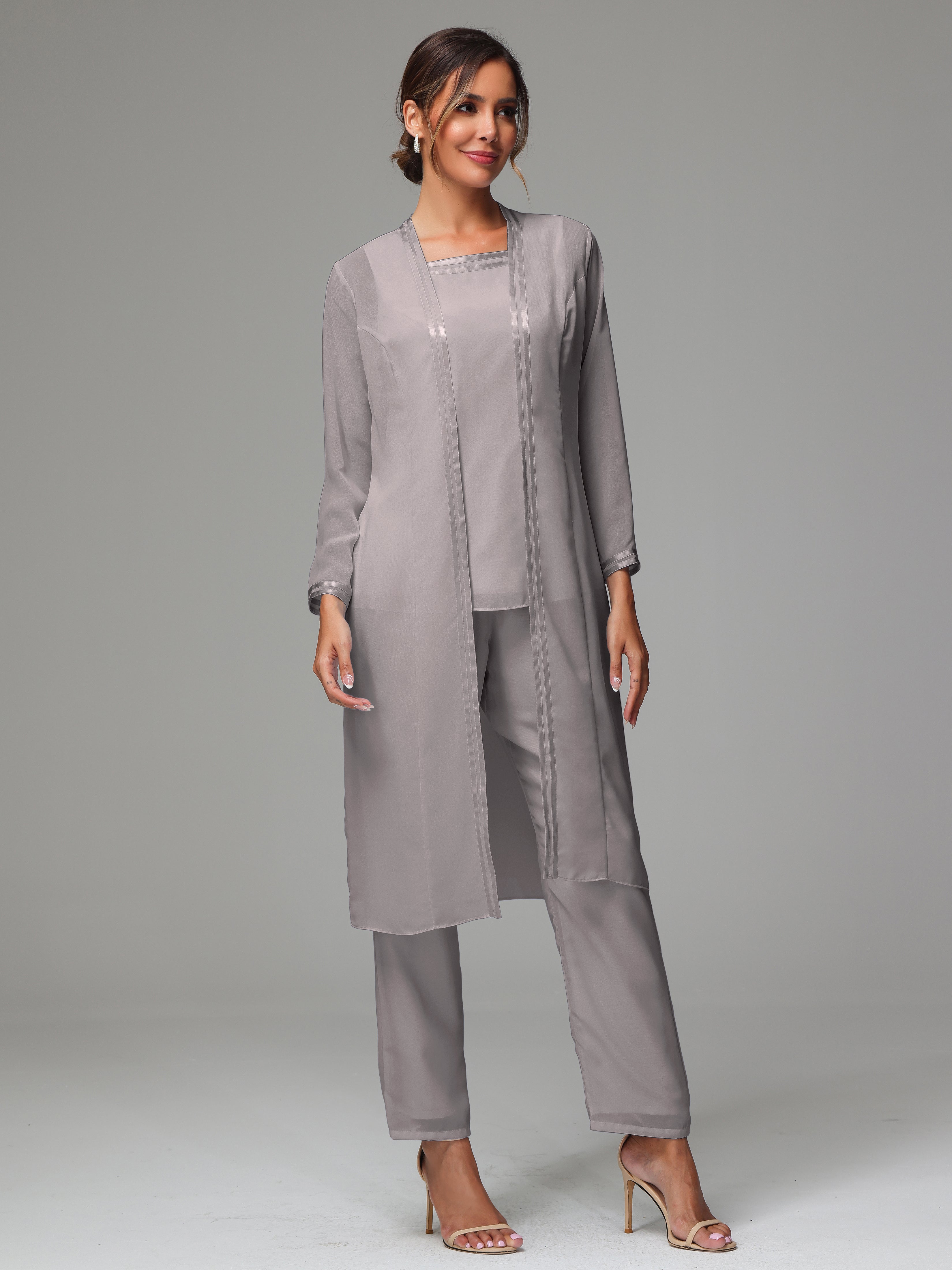 This 3 Pieces Long Sleeves Chiffon Mother Of The Bride Dress Pants Suit is a stylish and sophisticated choice for any mother of the bride. The 3-piece ensemble includes a long-sleeved top, matching pants and a chiffon overlay for elegant movement. Perfect for formal occasions, this timeless outfit is sure to make a lasting impression
