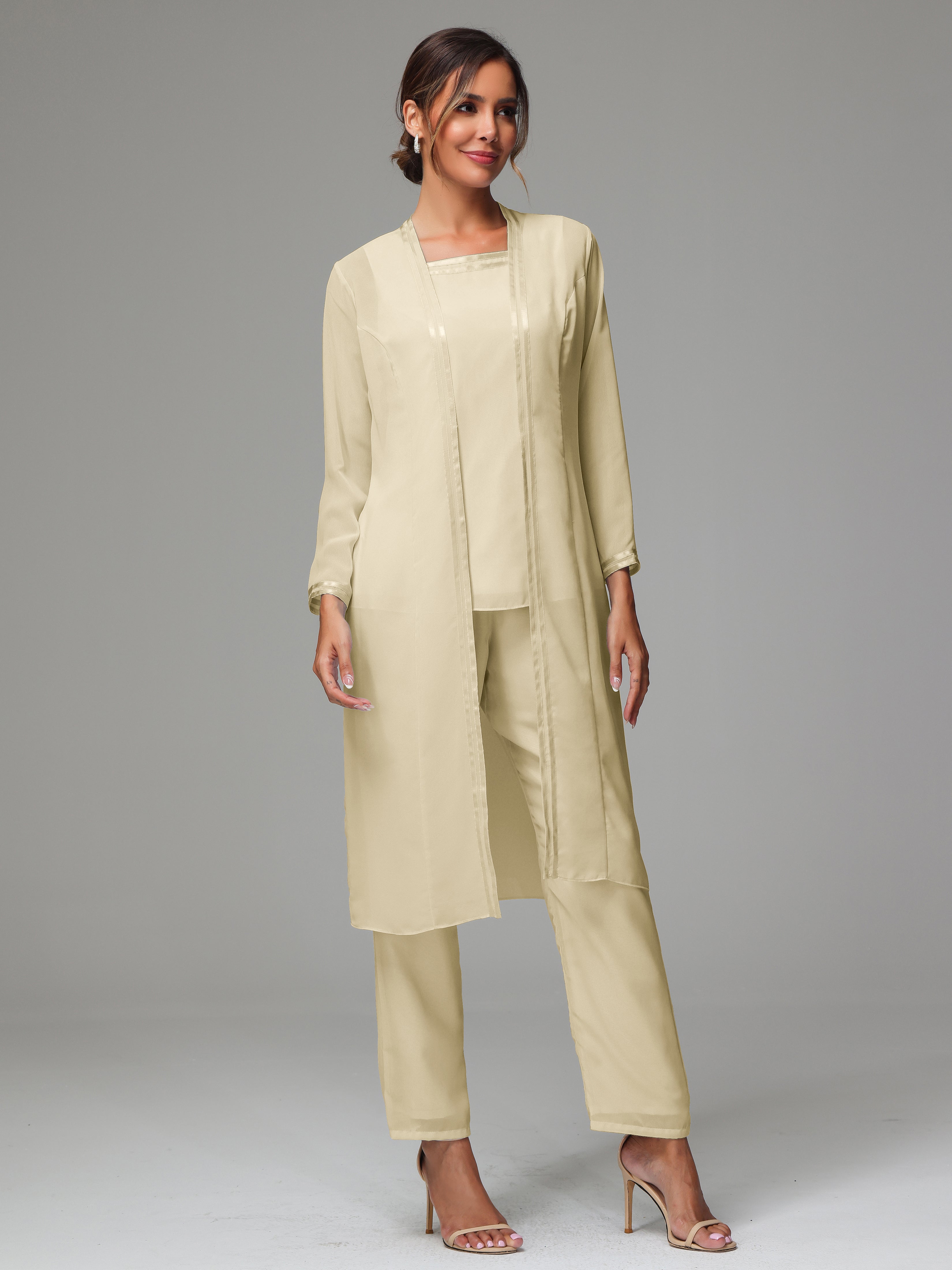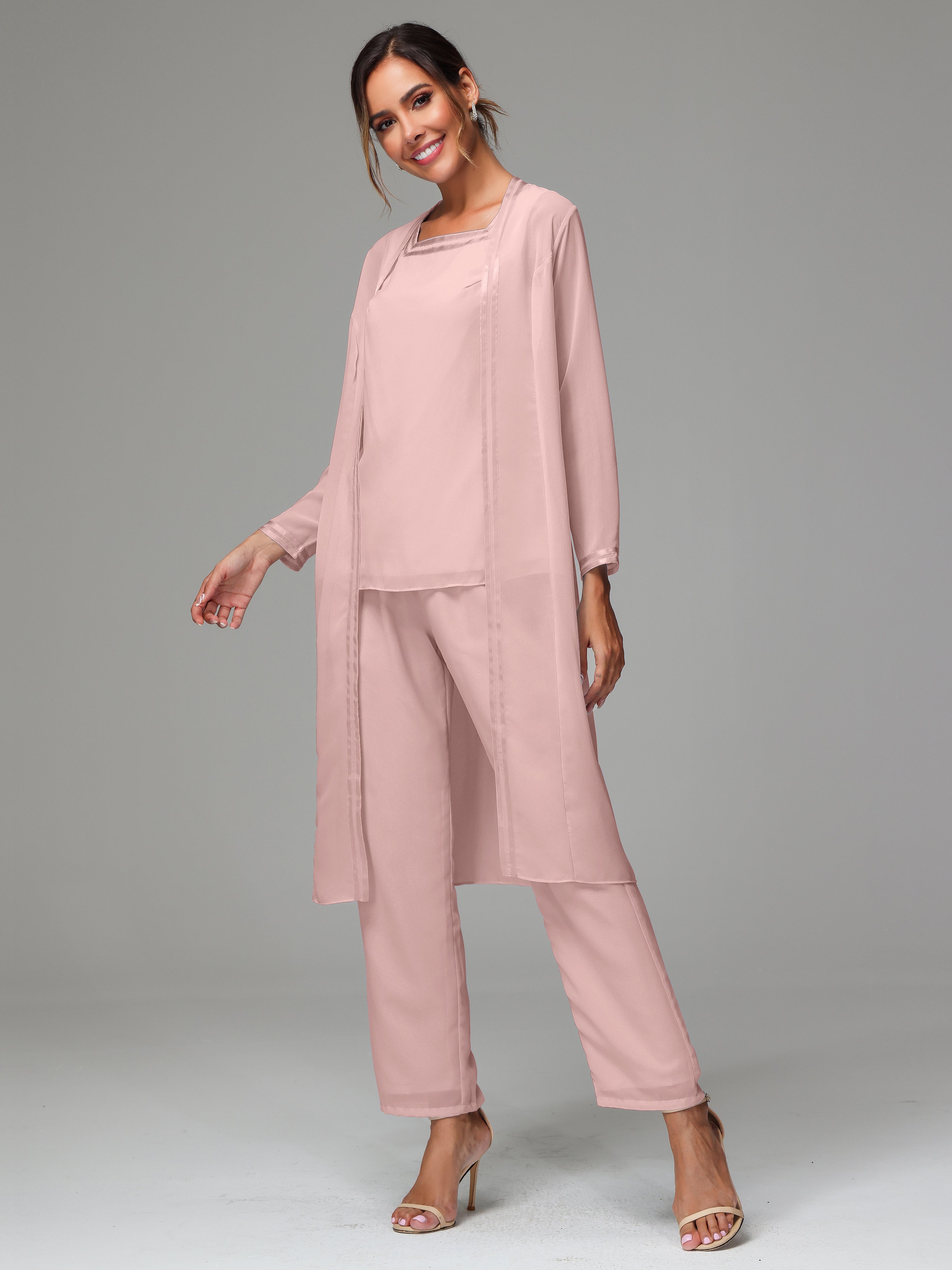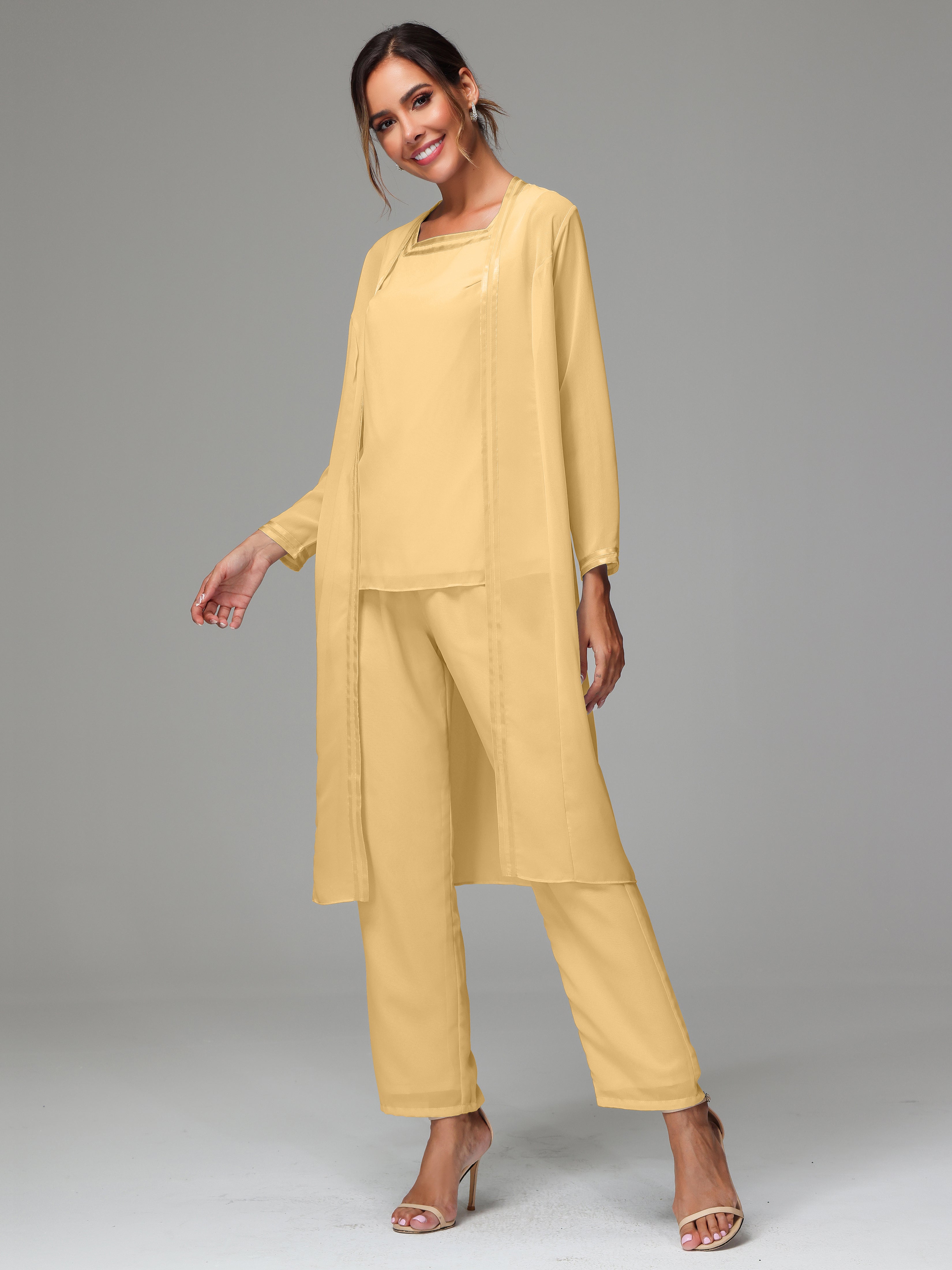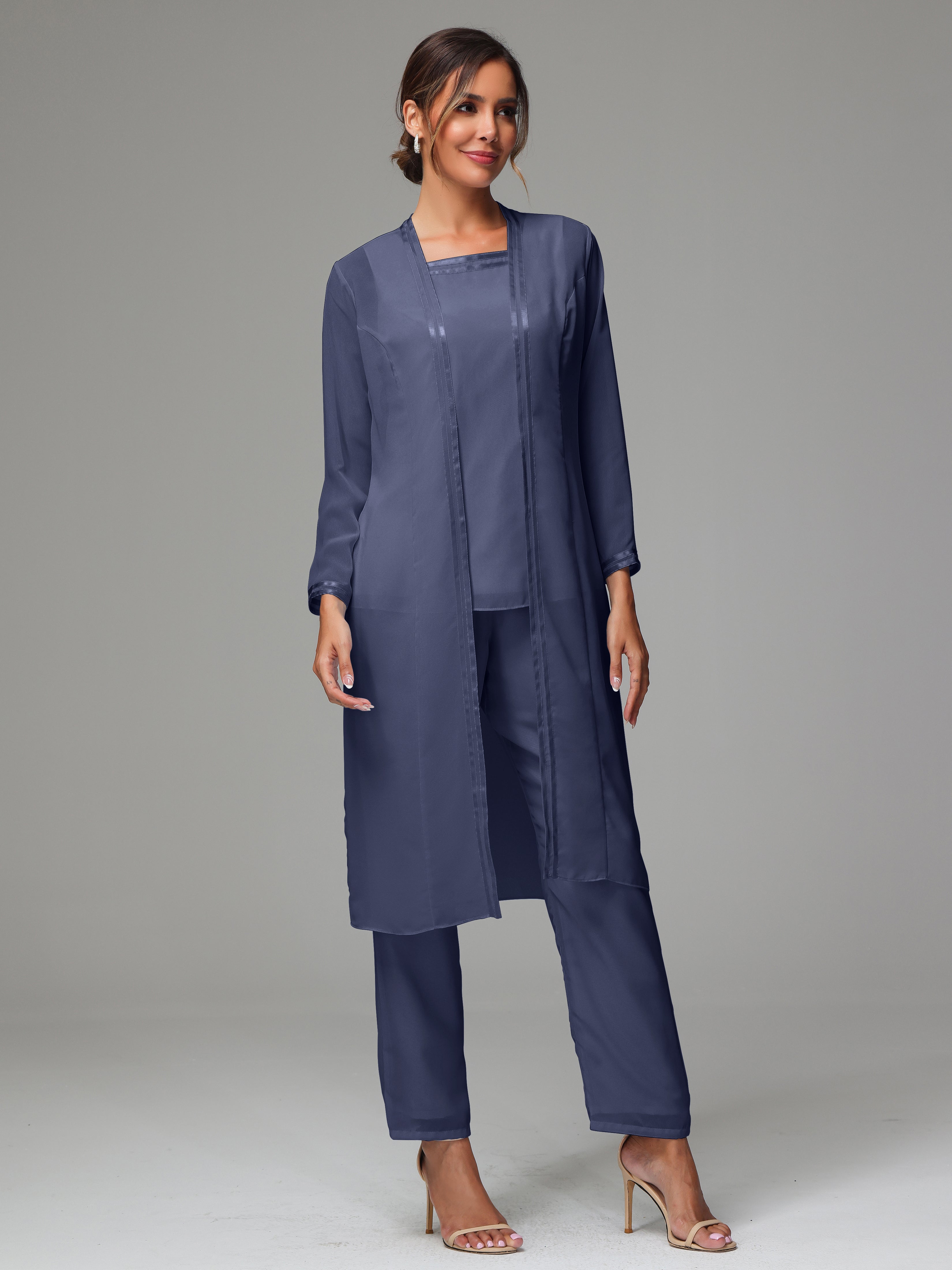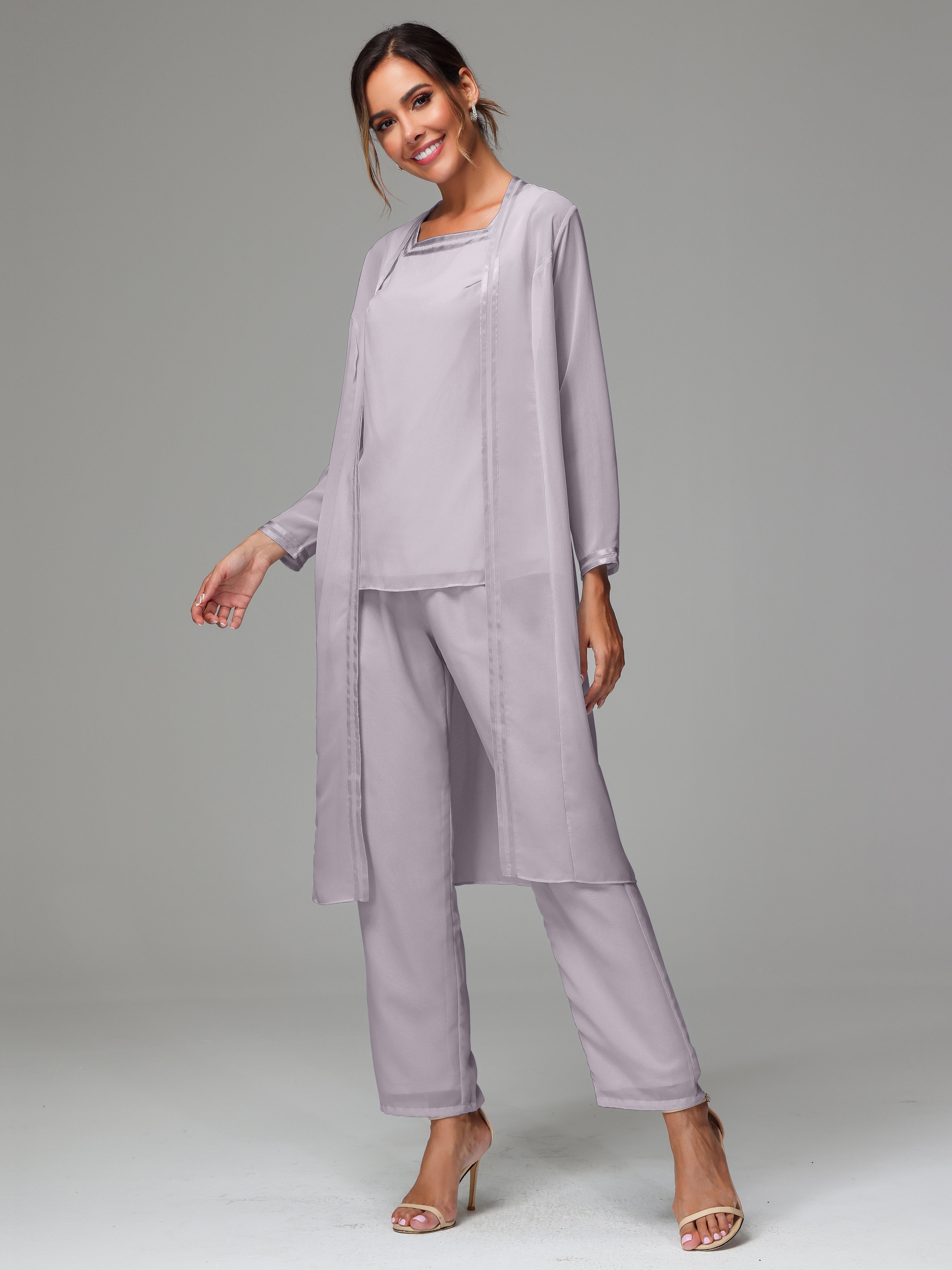 This 3 Pieces Long Sleeves Chiffon Mother Of The Bride Dress Pants Suit is a stylish and sophisticated choice for any mother of the bride. The 3-piece ensemble includes a long-sleeved top, matching pants and a chiffon overlay for elegant movement. Perfect for formal occasions, this timeless outfit is sure to make a lasting impression