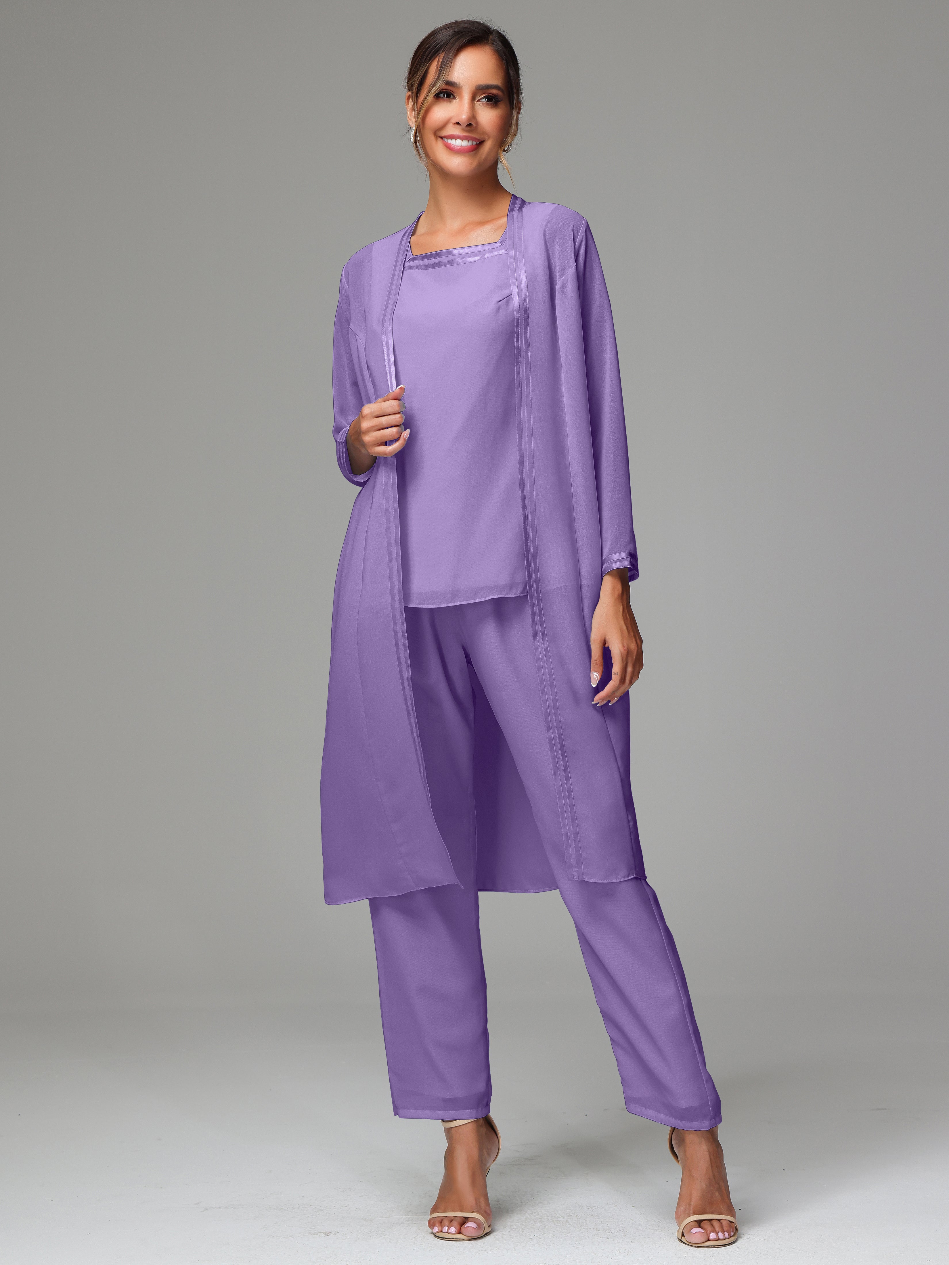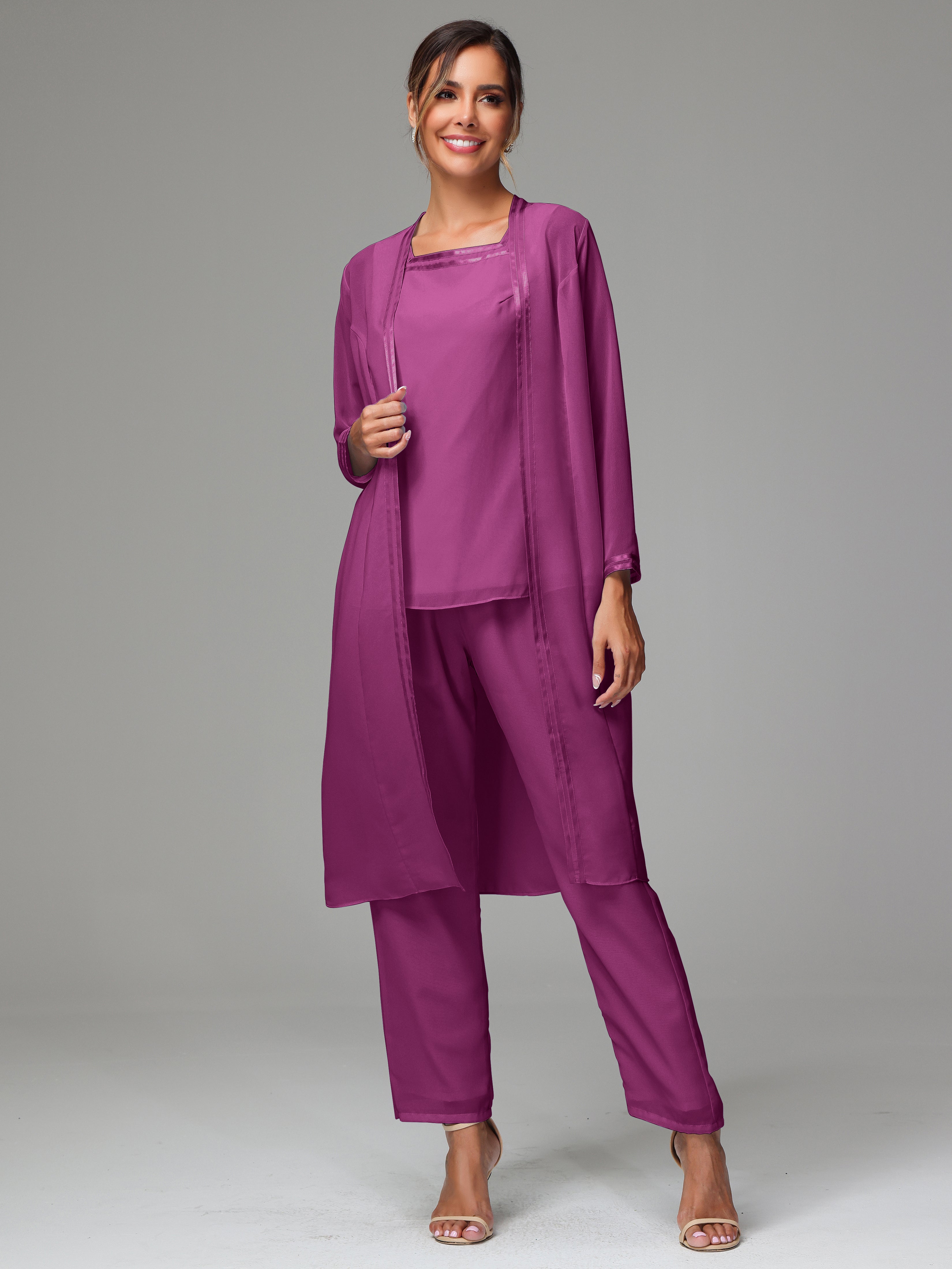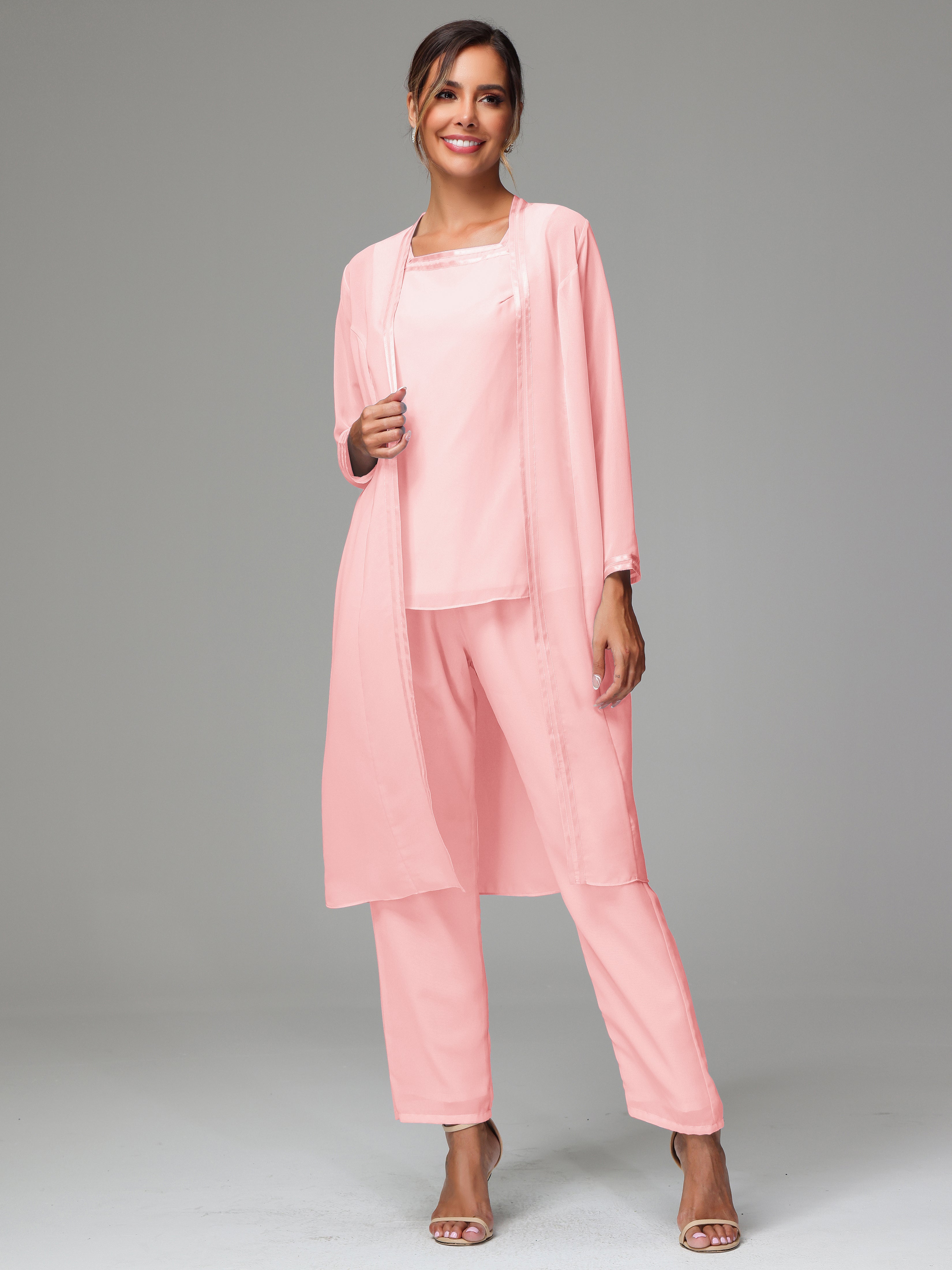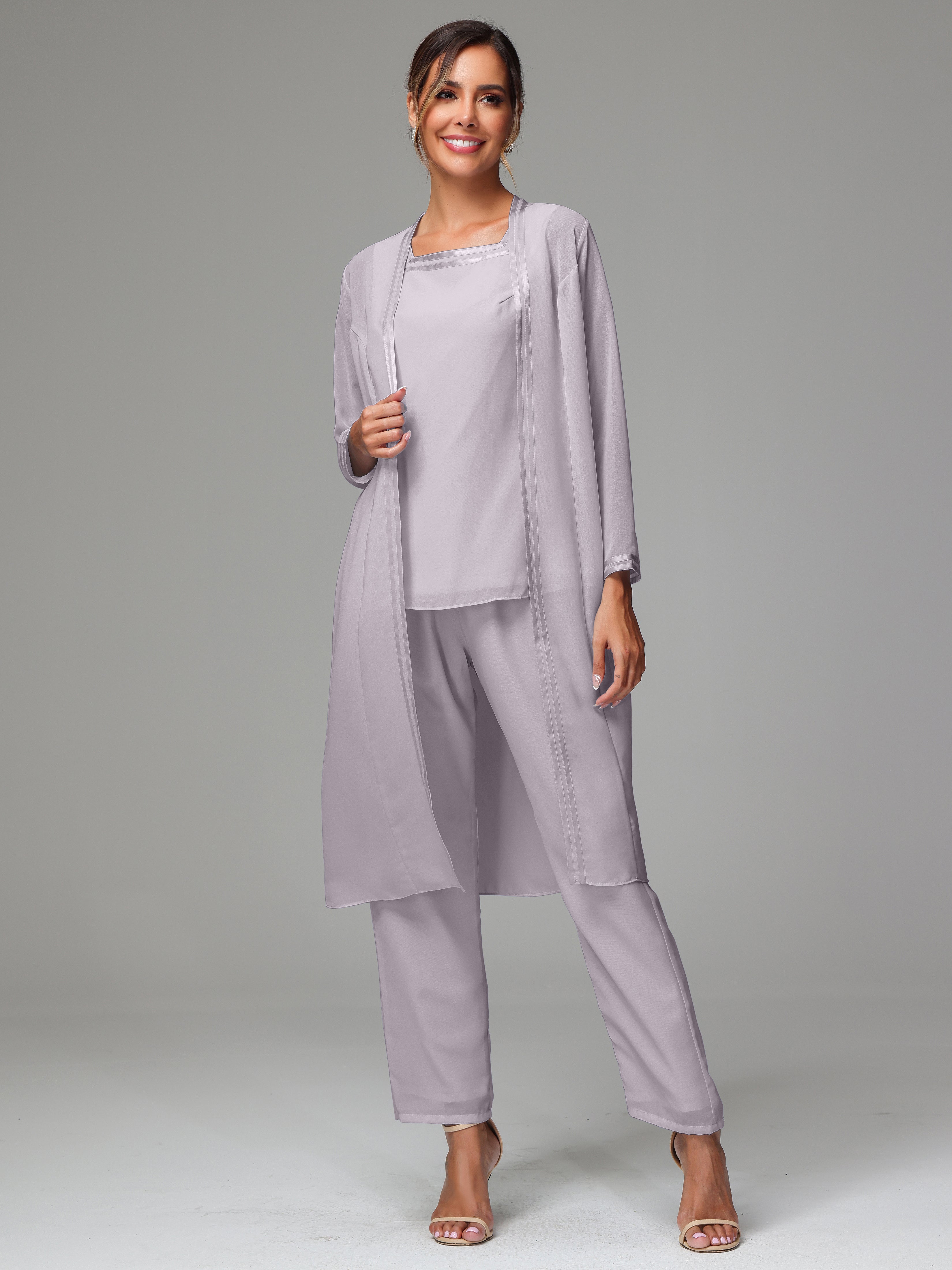 This 3 Pieces Long Sleeves Chiffon Mother Of The Bride Dress Pants Suit is a stylish and sophisticated choice for any mother of the bride. The 3-piece ensemble includes a long-sleeved top, matching pants and a chiffon overlay for elegant movement. Perfect for formal occasions, this timeless outfit is sure to make a lasting impression