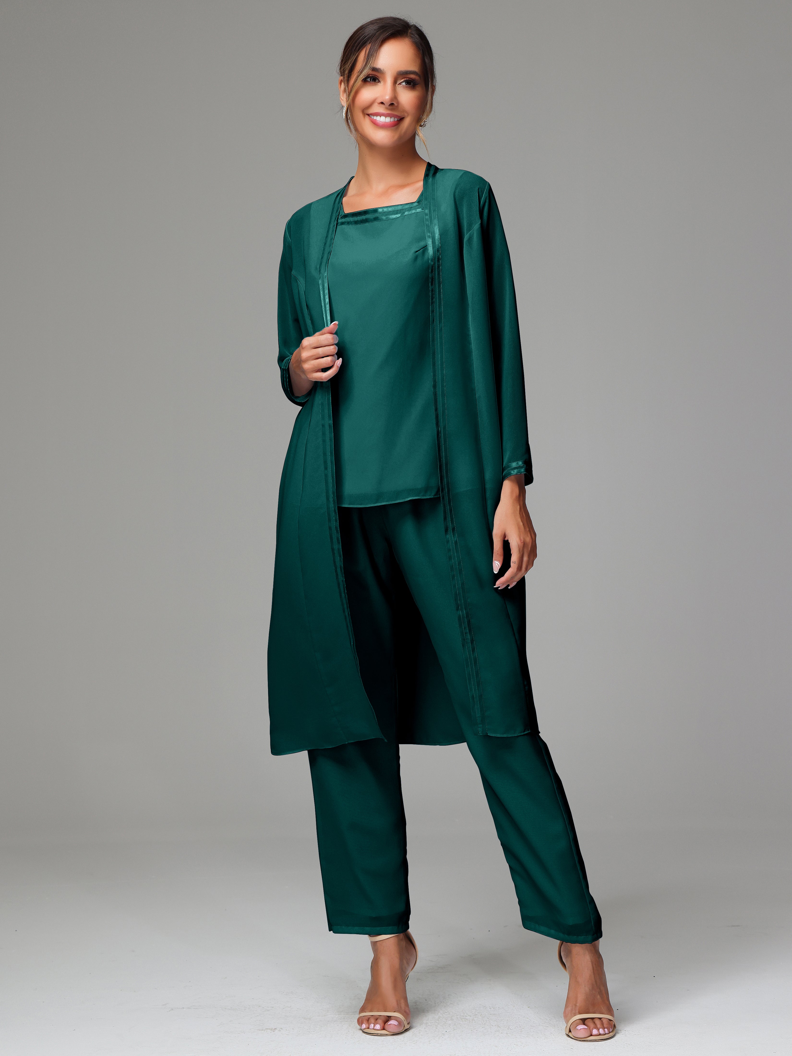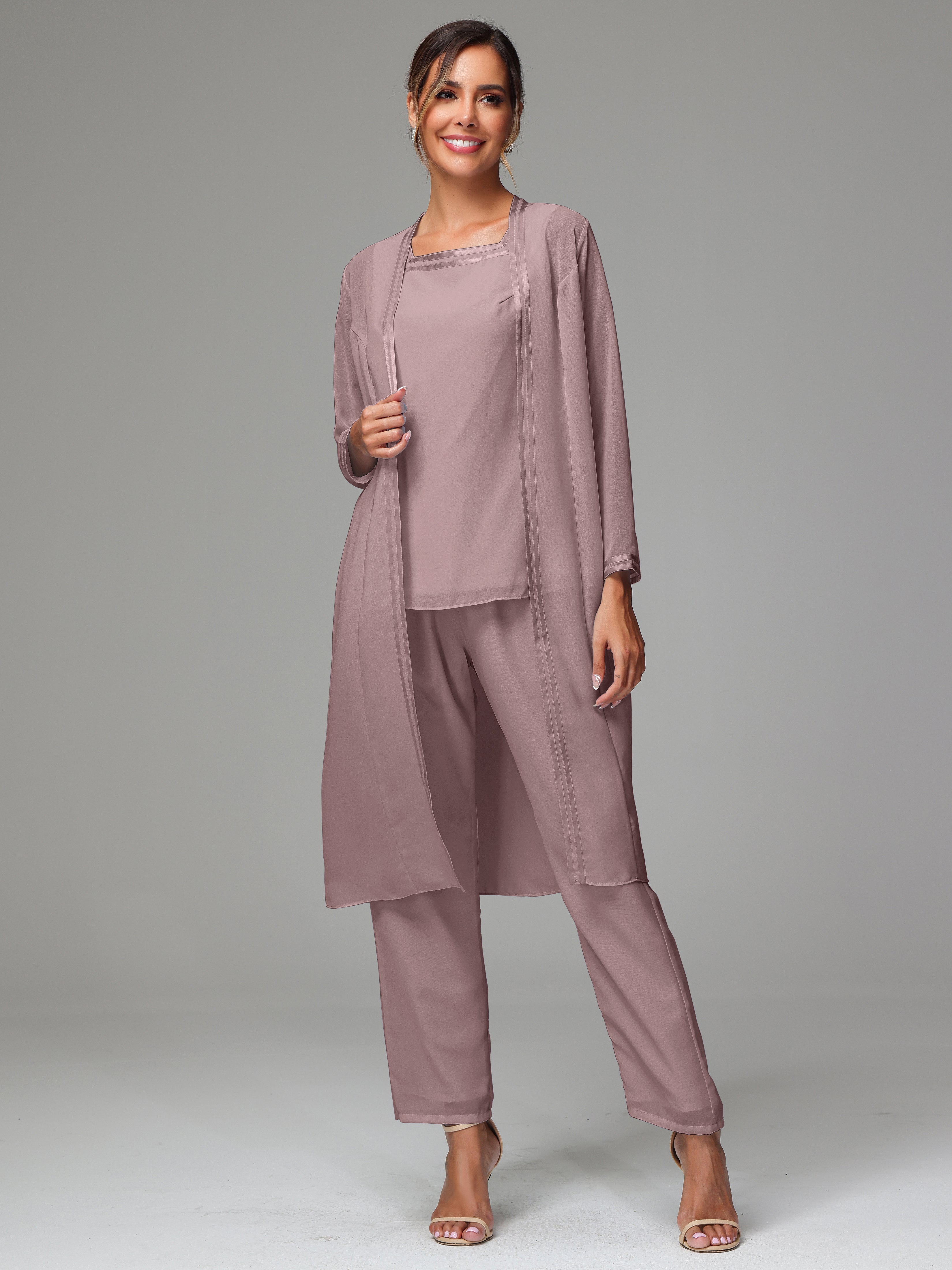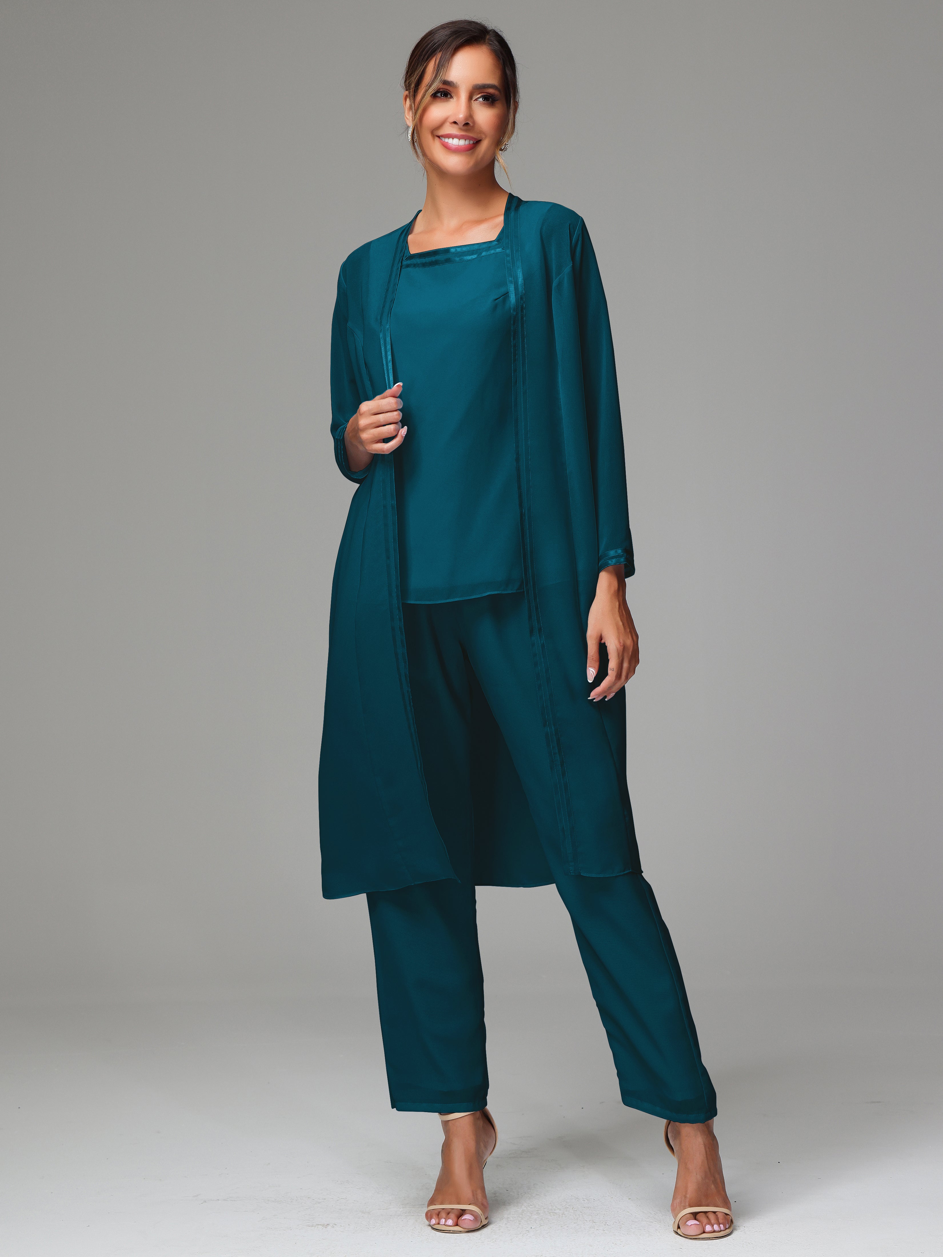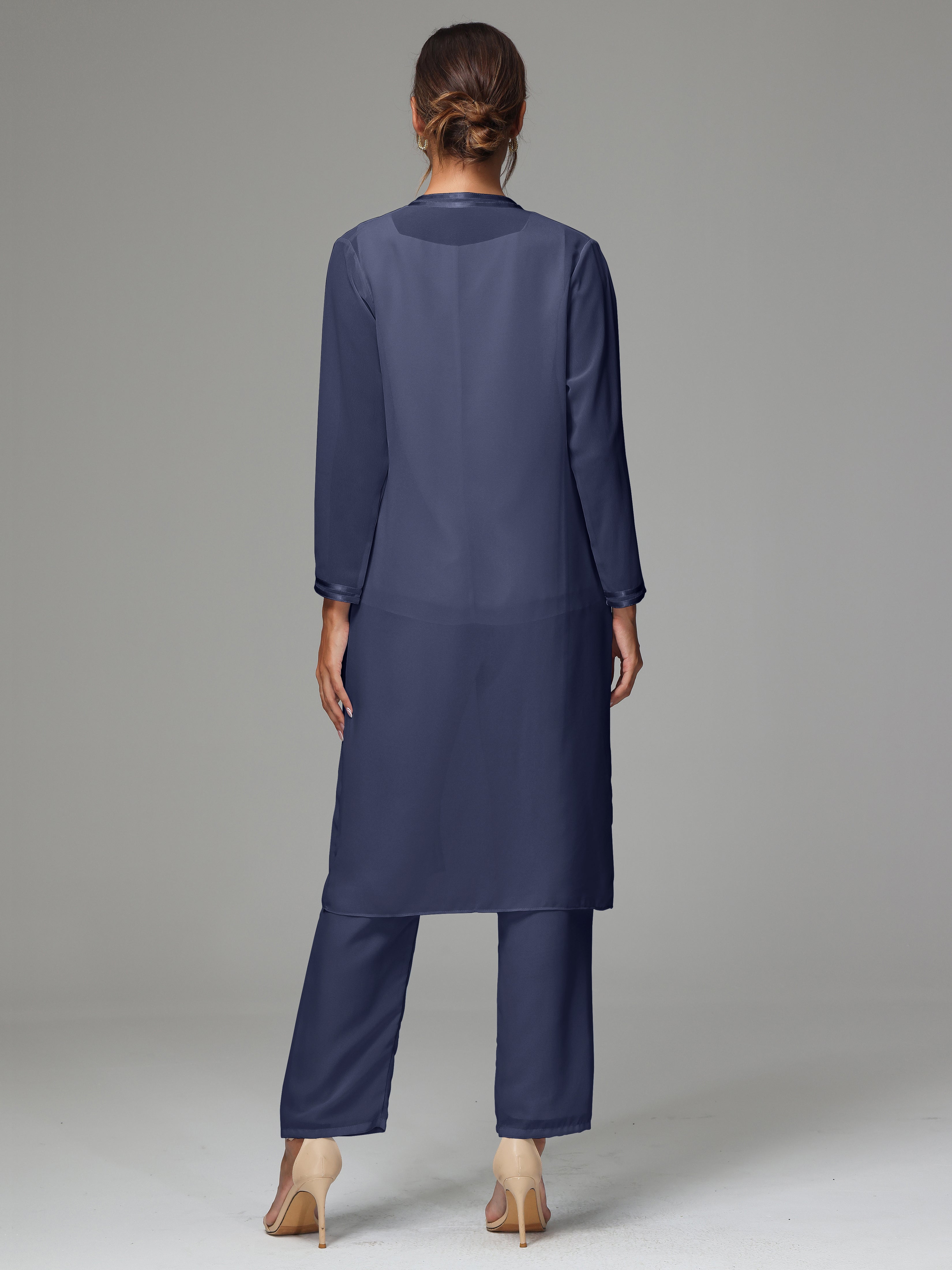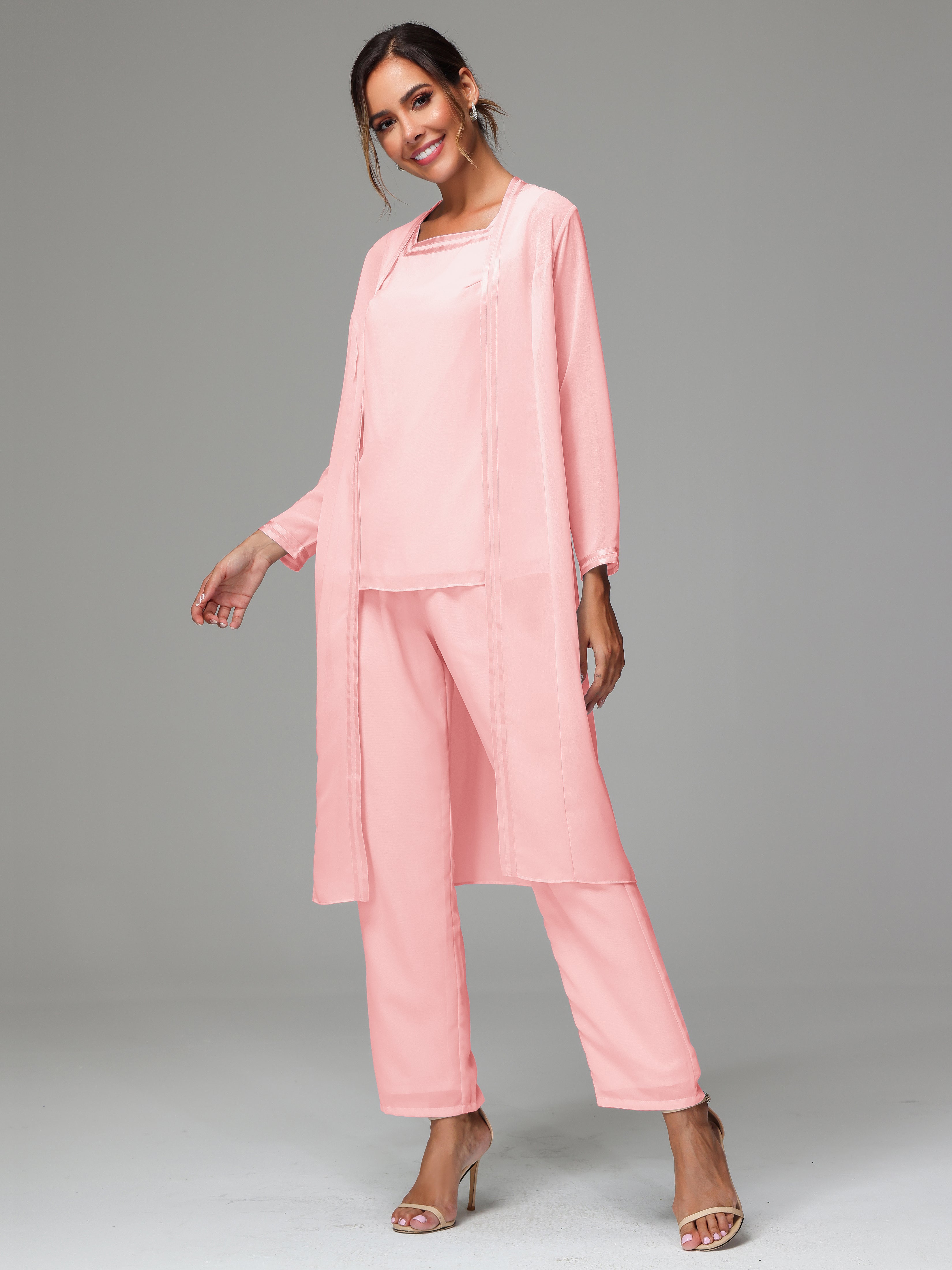 This 3 Pieces Long Sleeves Chiffon Mother Of The Bride Dress Pants Suit is a stylish and sophisticated choice for any mother of the bride. The 3-piece ensemble includes a long-sleeved top, matching pants and a chiffon overlay for elegant movement. Perfect for formal occasions, this timeless outfit is sure to make a lasting impression