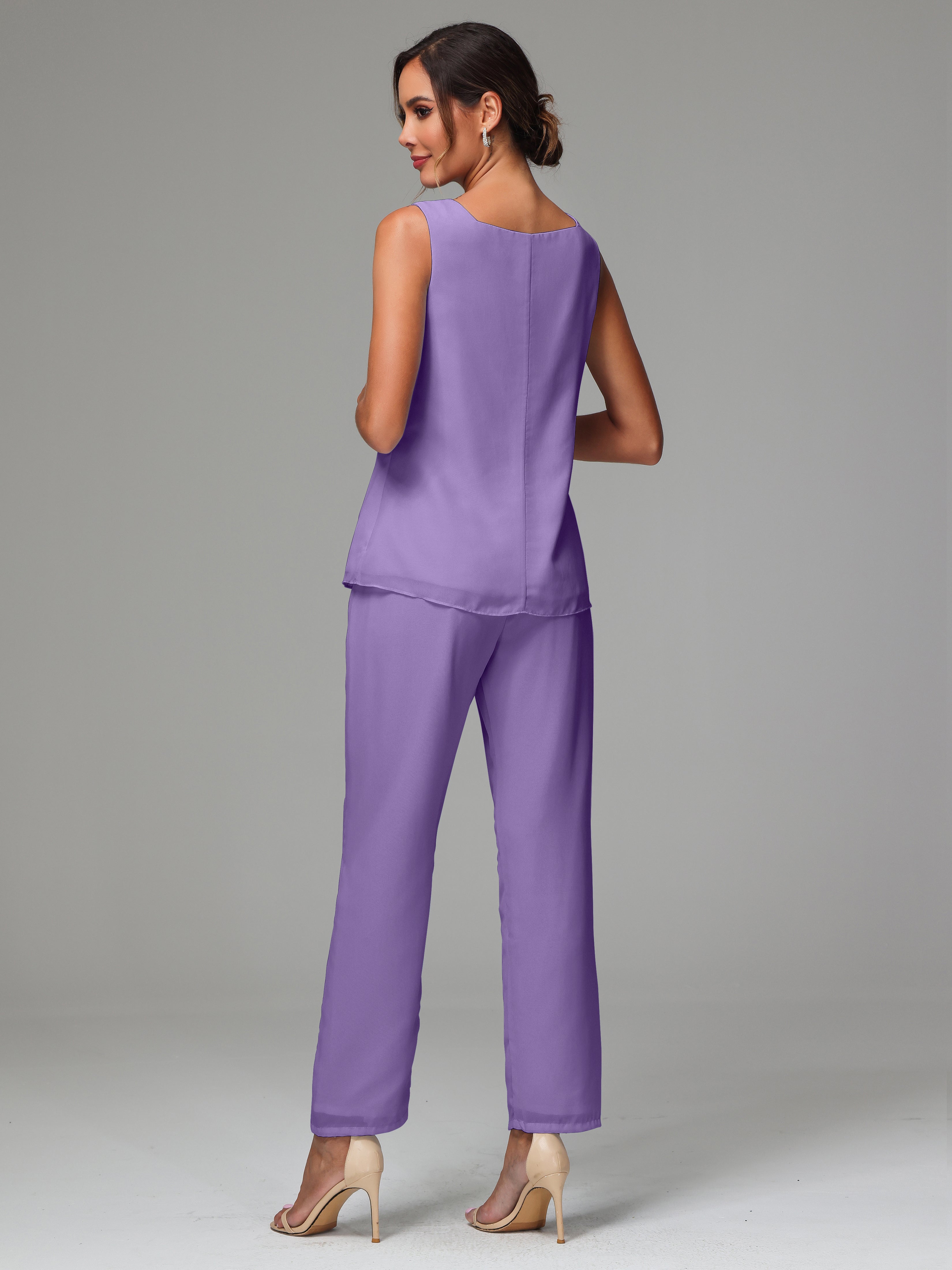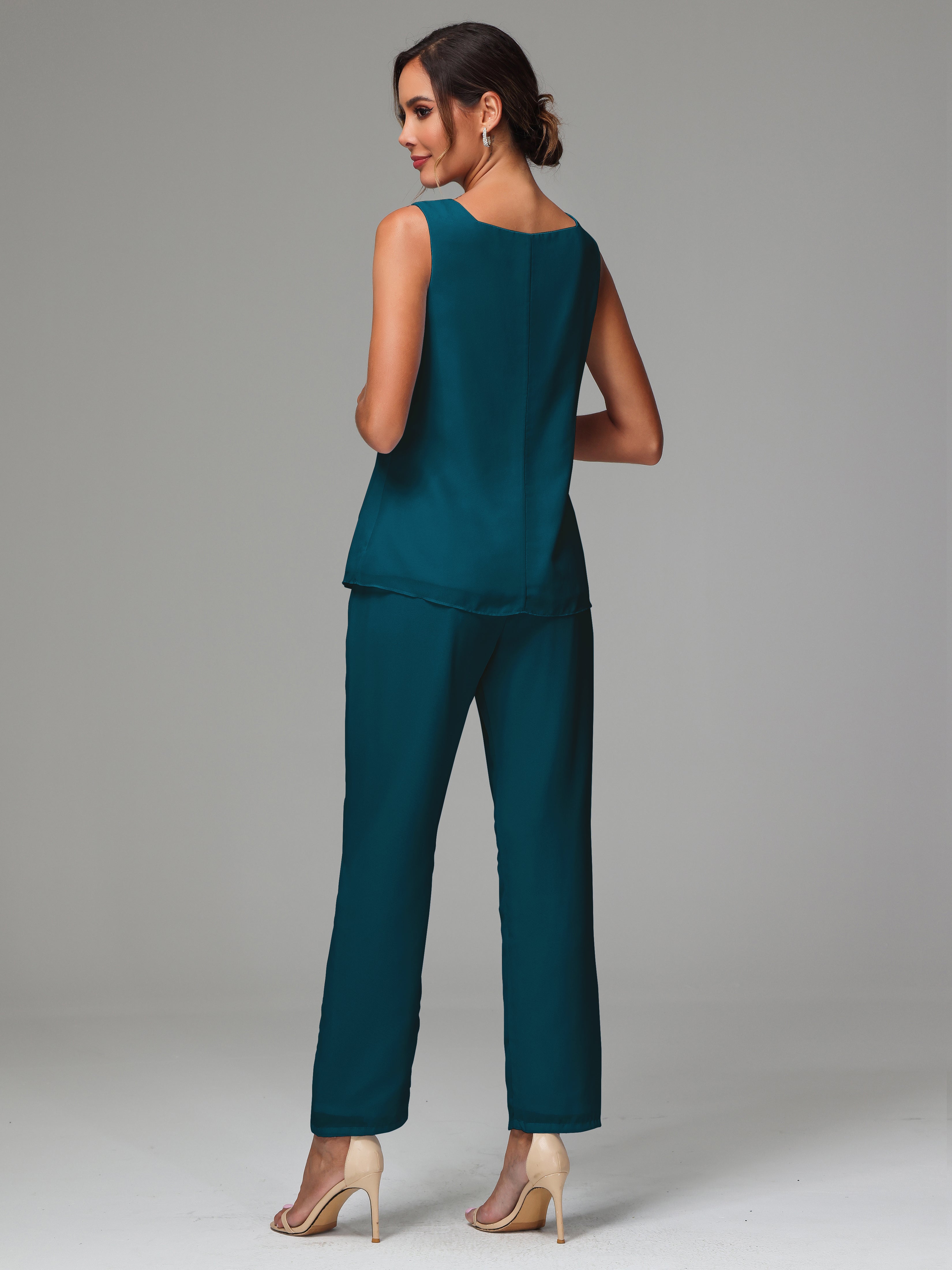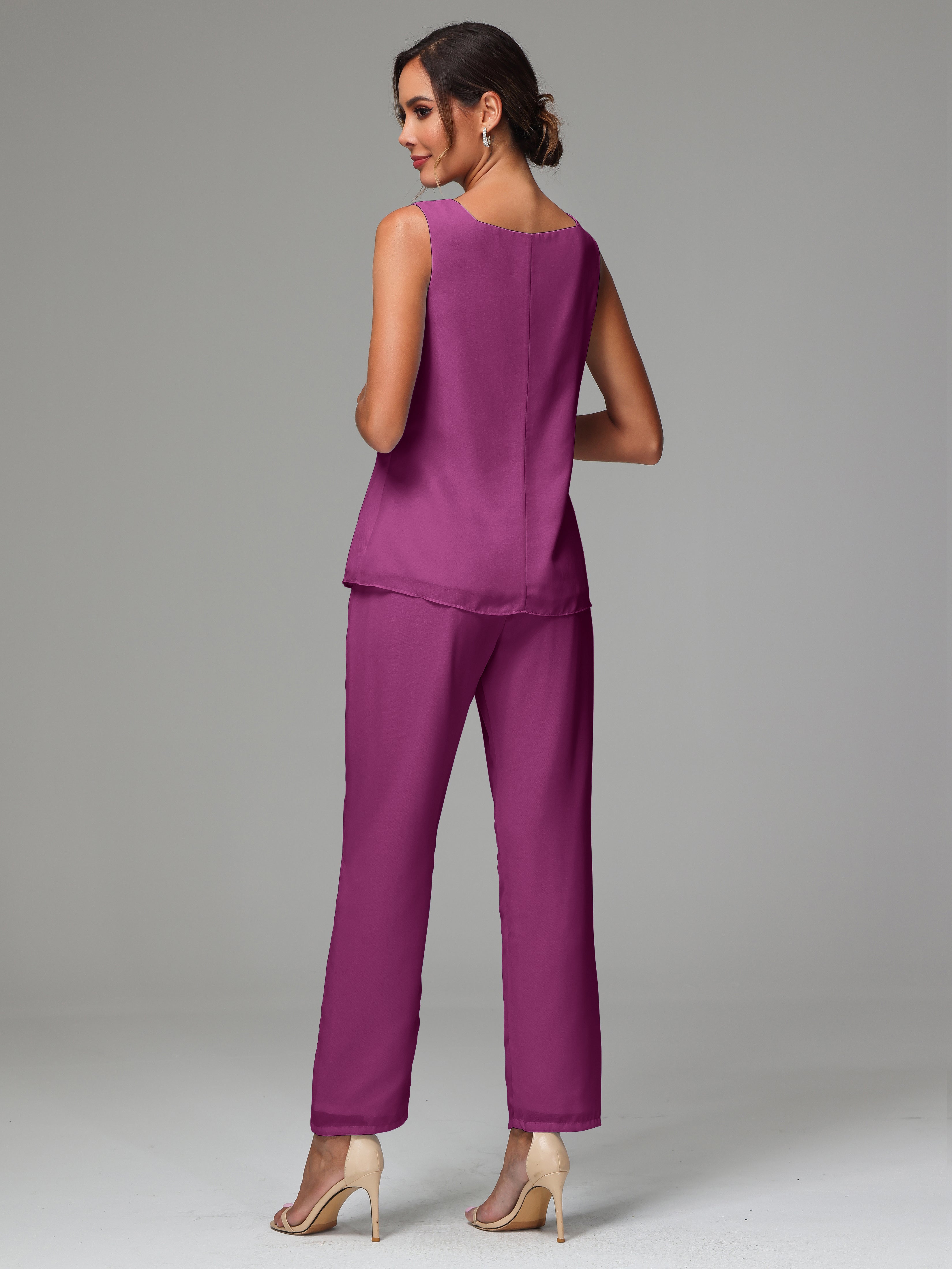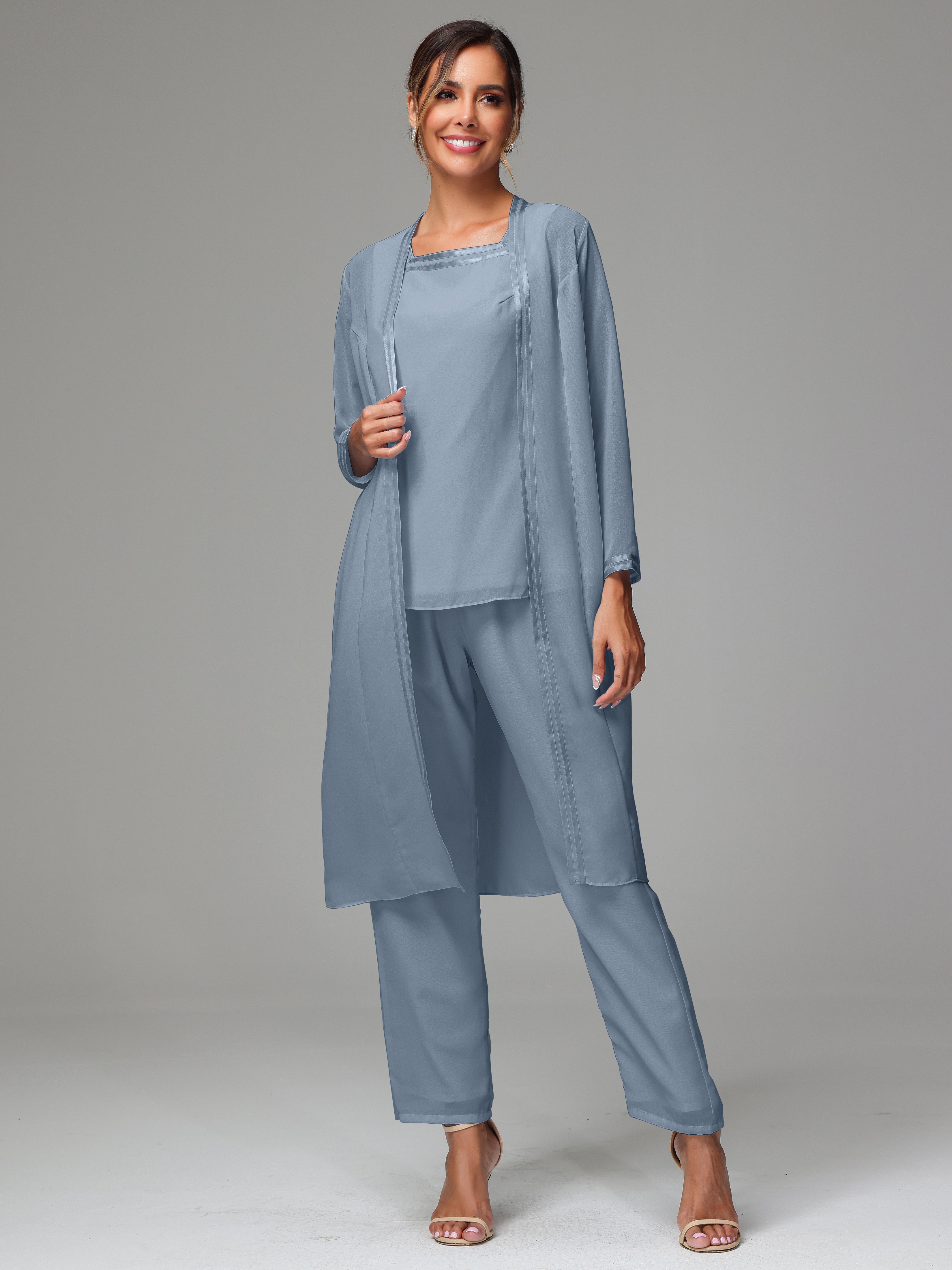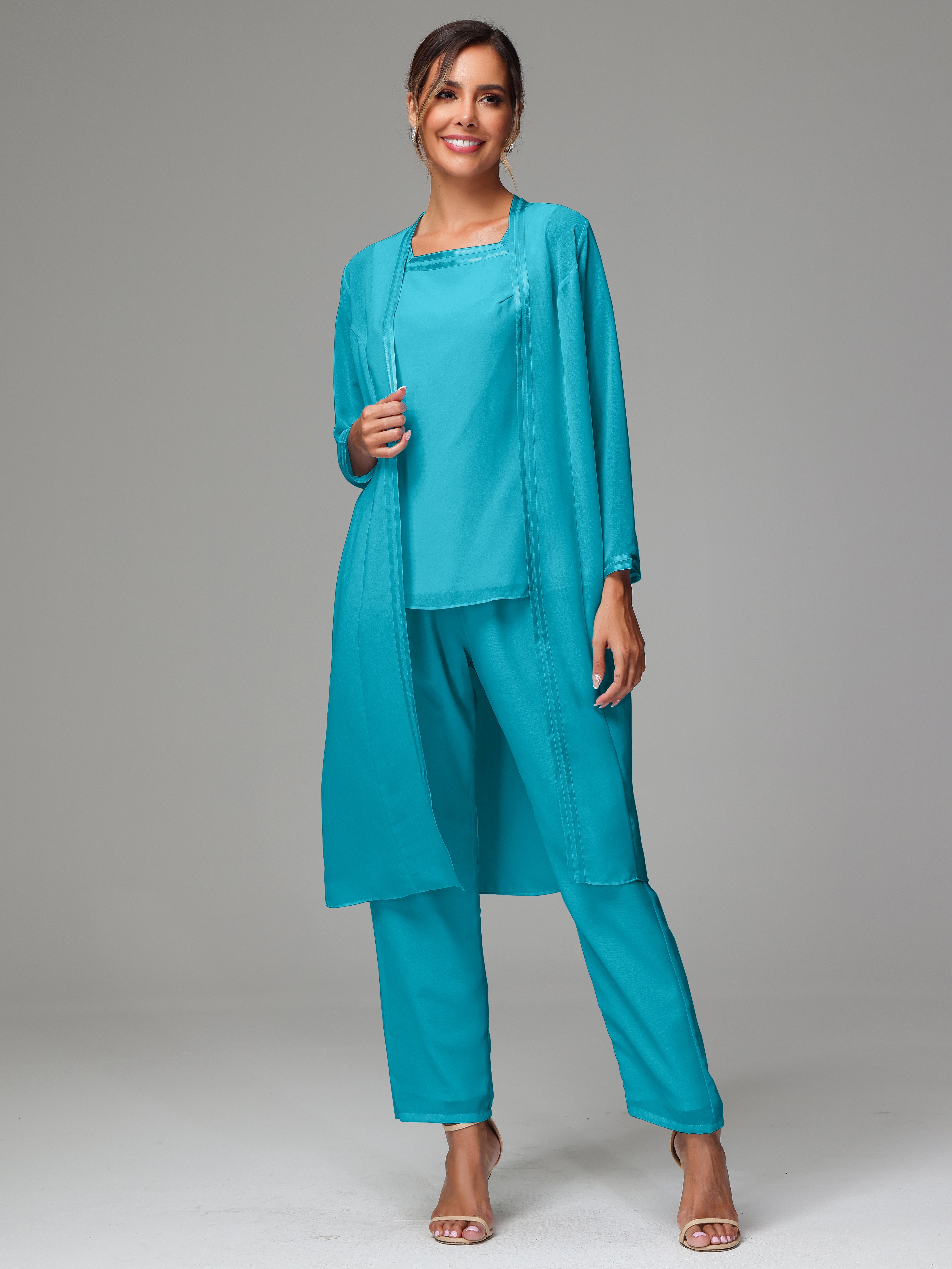 This 3 Pieces Long Sleeves Chiffon Mother Of The Bride Dress Pants Suit is a stylish and sophisticated choice for any mother of the bride. The 3-piece ensemble includes a long-sleeved top, matching pants and a chiffon overlay for elegant movement. Perfect for formal occasions, this timeless outfit is sure to make a lasting impression