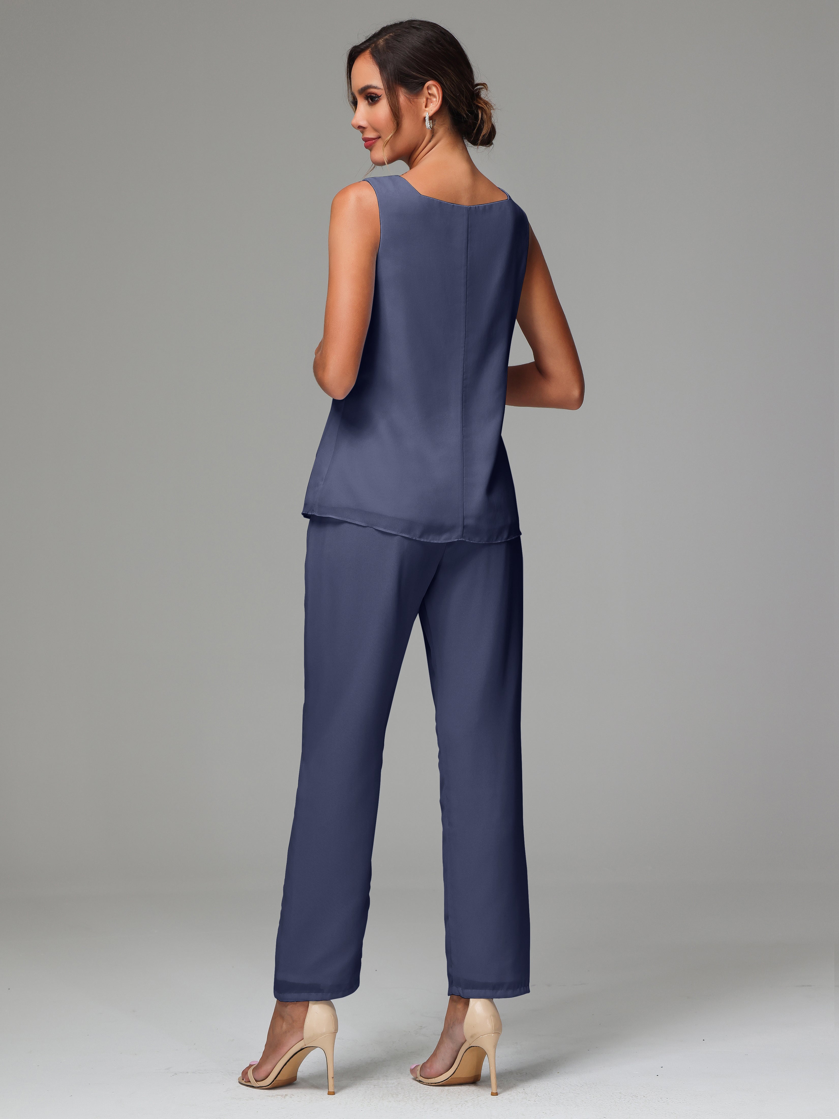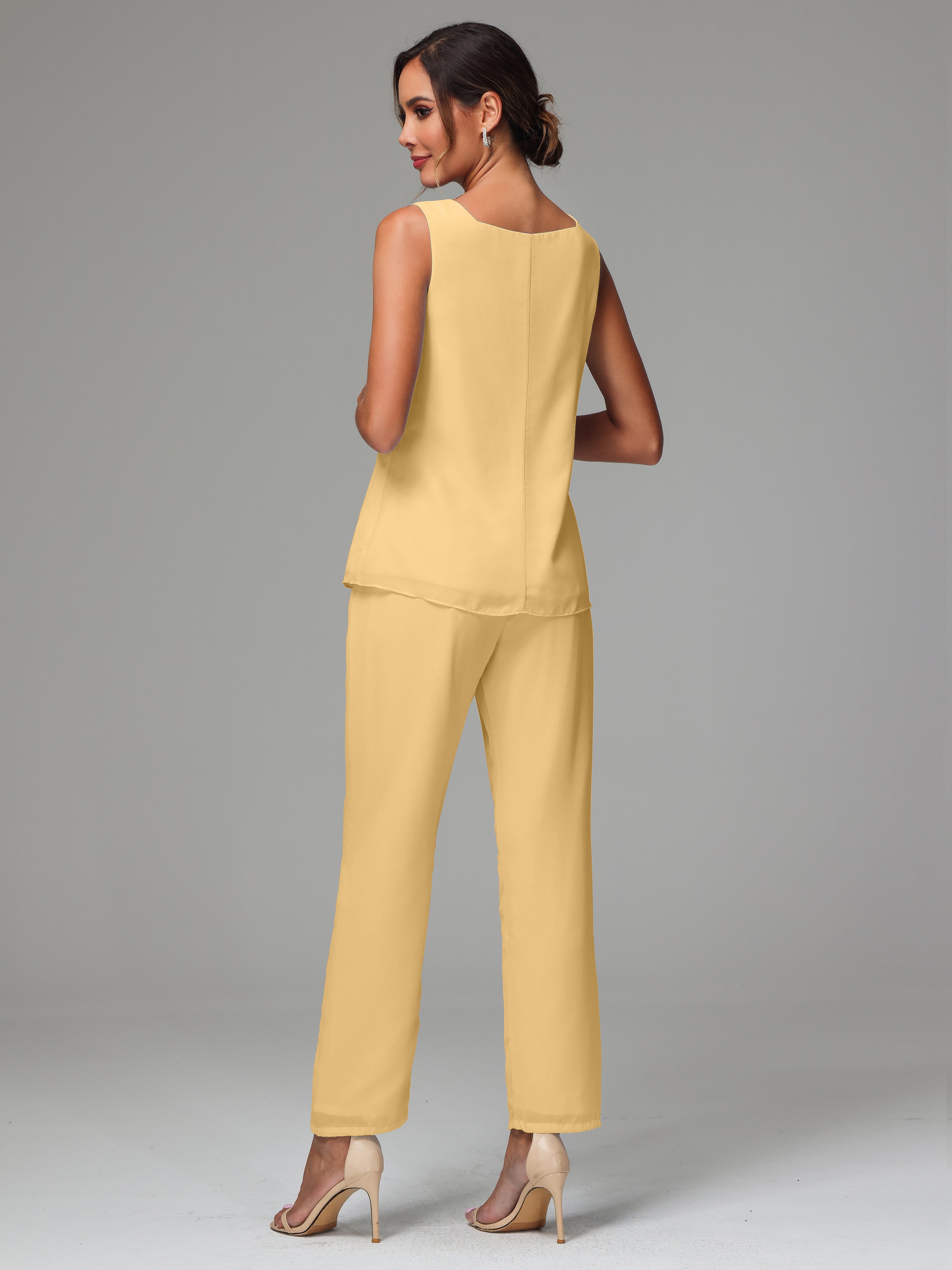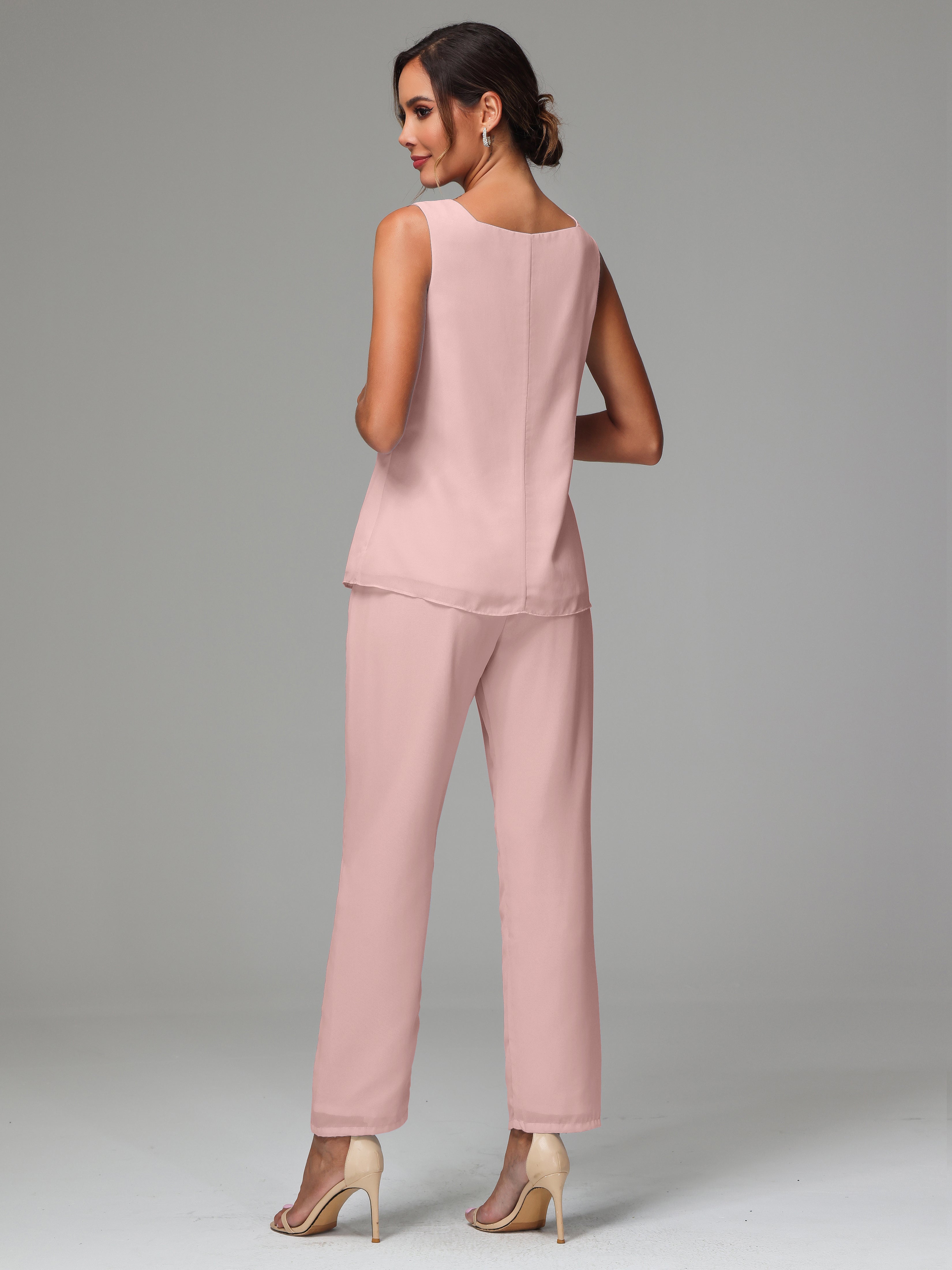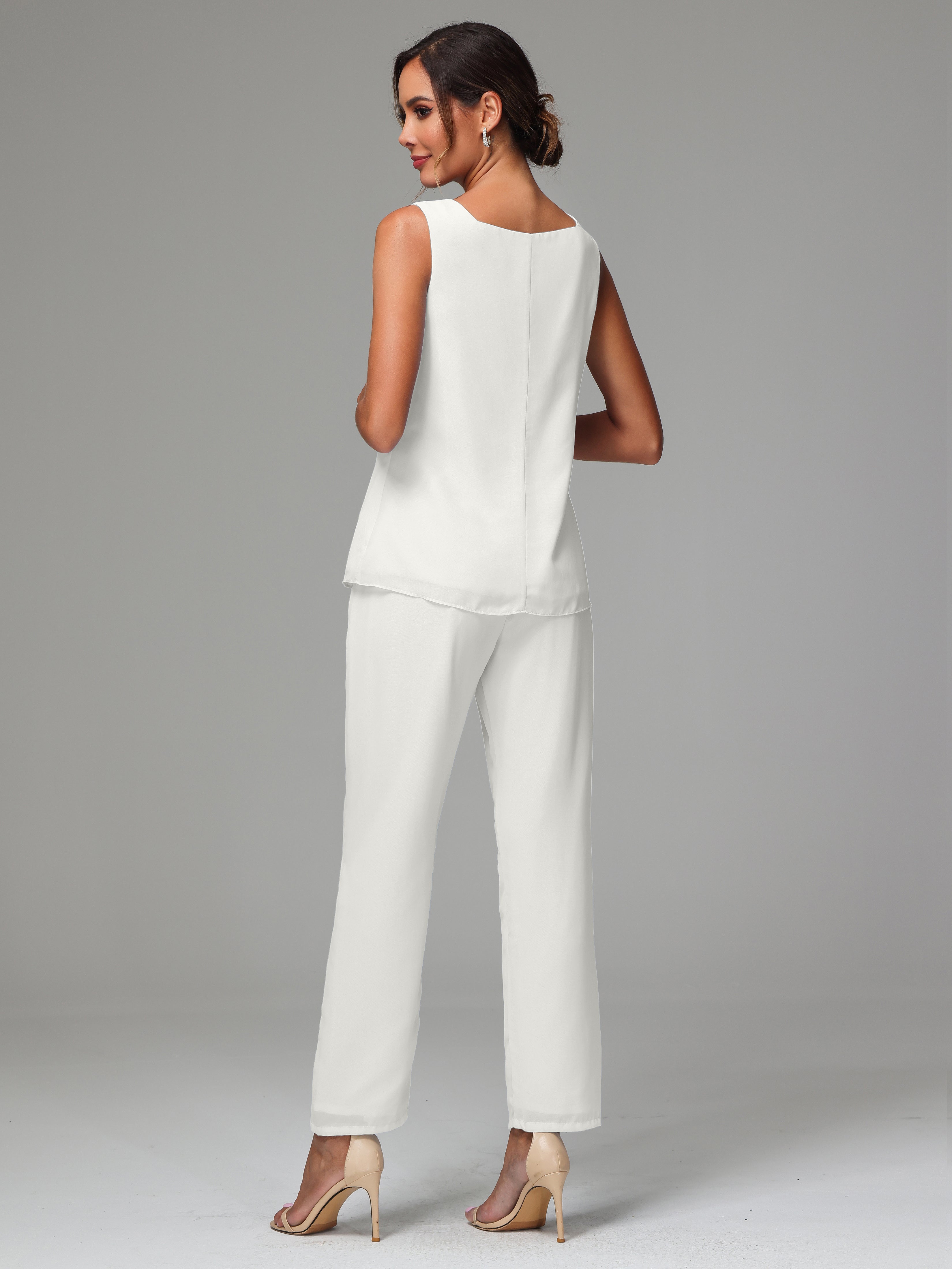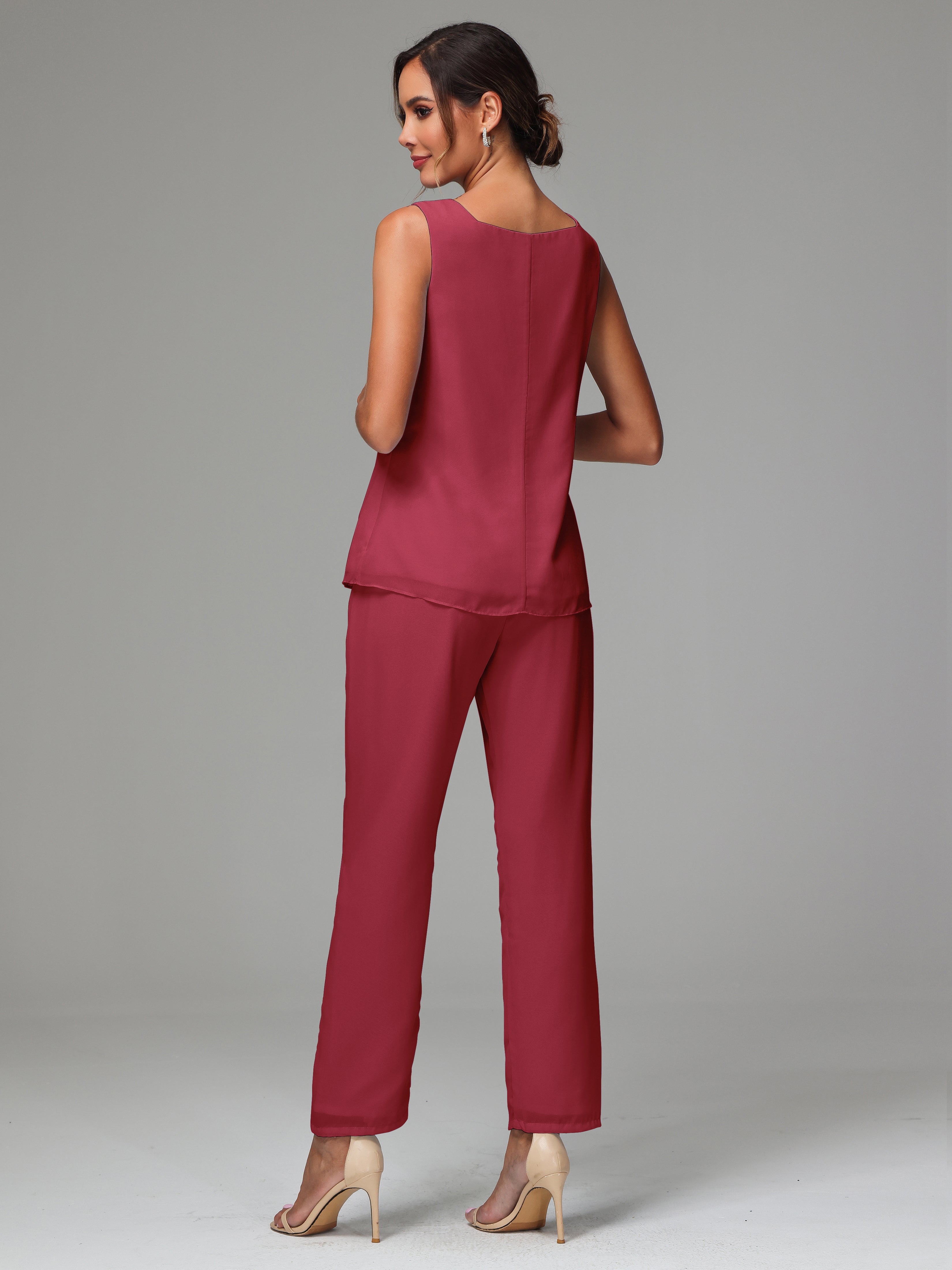 This 3 Pieces Long Sleeves Chiffon Mother Of The Bride Dress Pants Suit is a stylish and sophisticated choice for any mother of the bride. The 3-piece ensemble includes a long-sleeved top, matching pants and a chiffon overlay for elegant movement. Perfect for formal occasions, this timeless outfit is sure to make a lasting impression