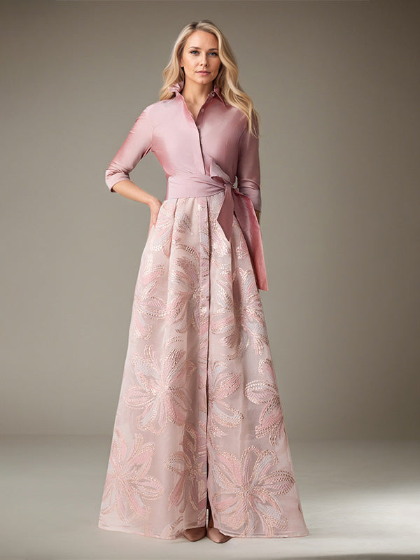 A-Line Collared Neckline Floor-Length Mother of the Bride Dress