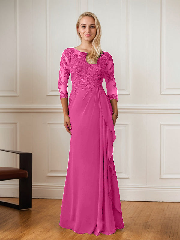 A-Line Floor-Length Scoop Chiffon Mother of Bride Dress