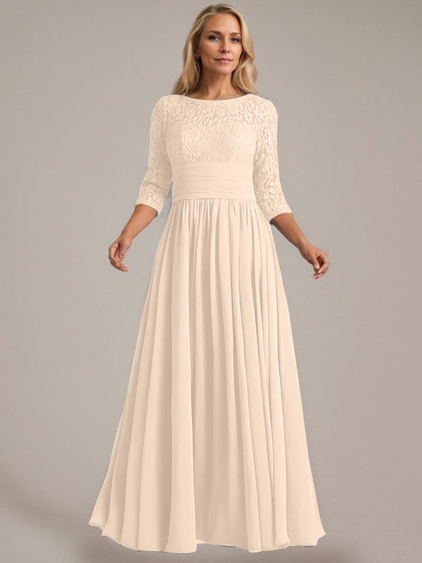 A-Line Scoop Floor-Length Chiffon Mother of the Bride Dress