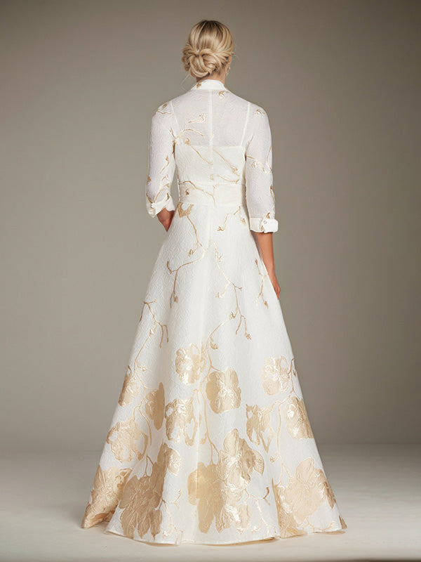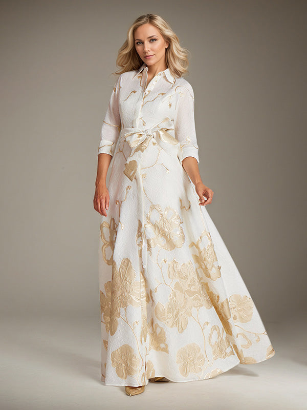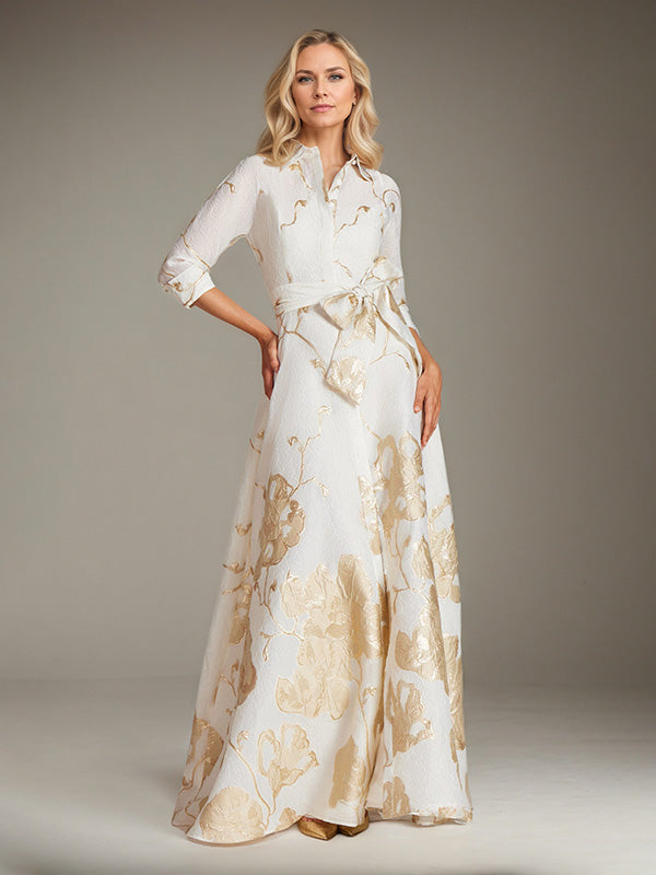A-Line Scoop 3/4-Sleeve Floor-Length Formal Dress With Belt