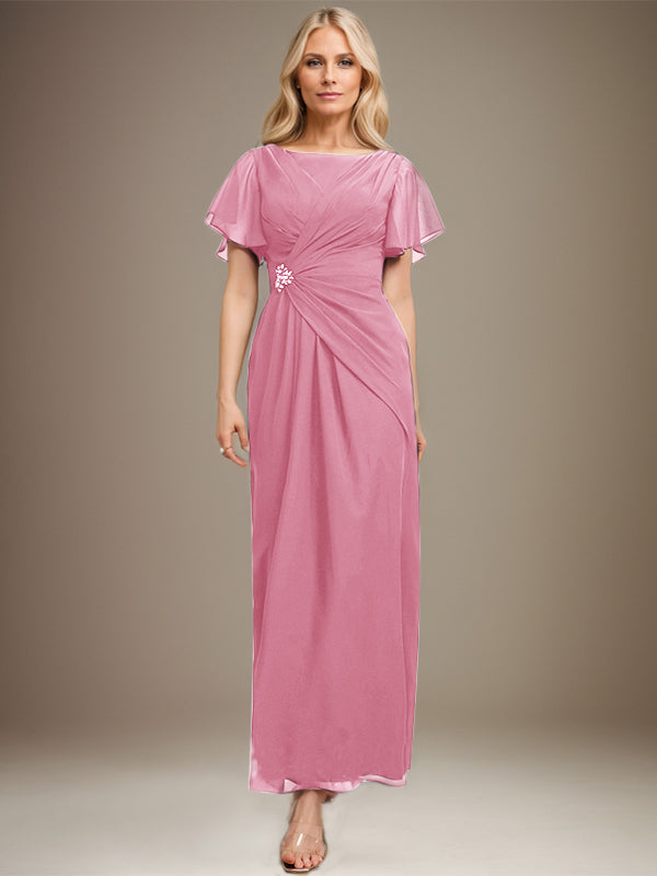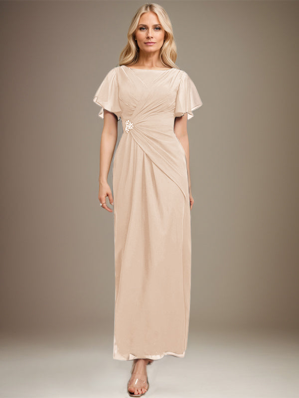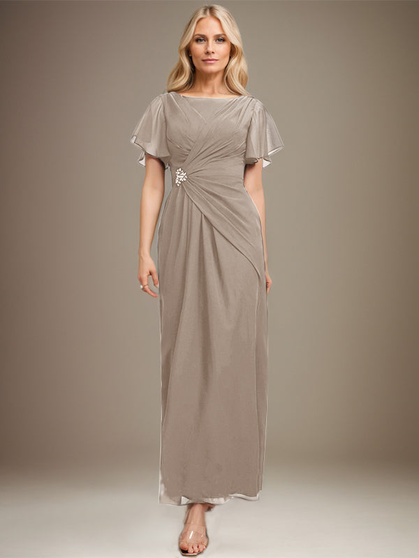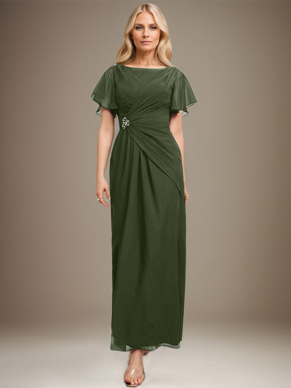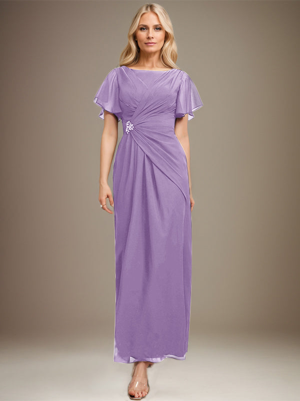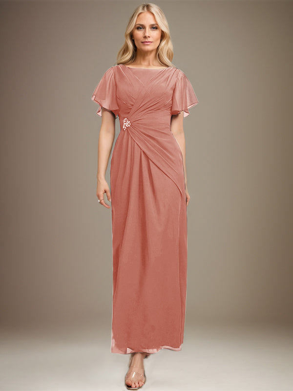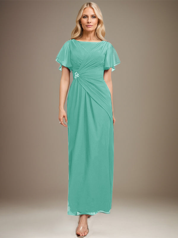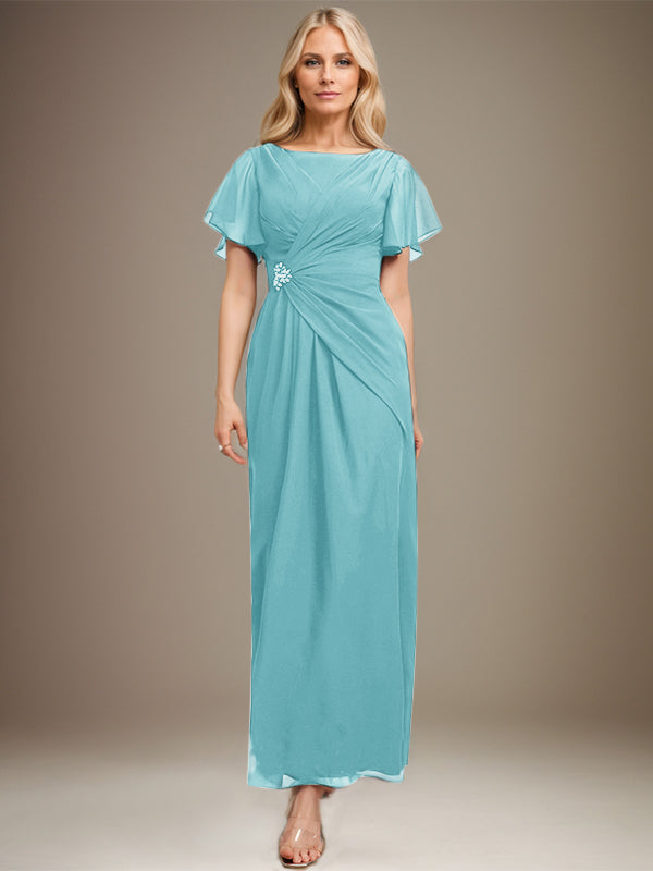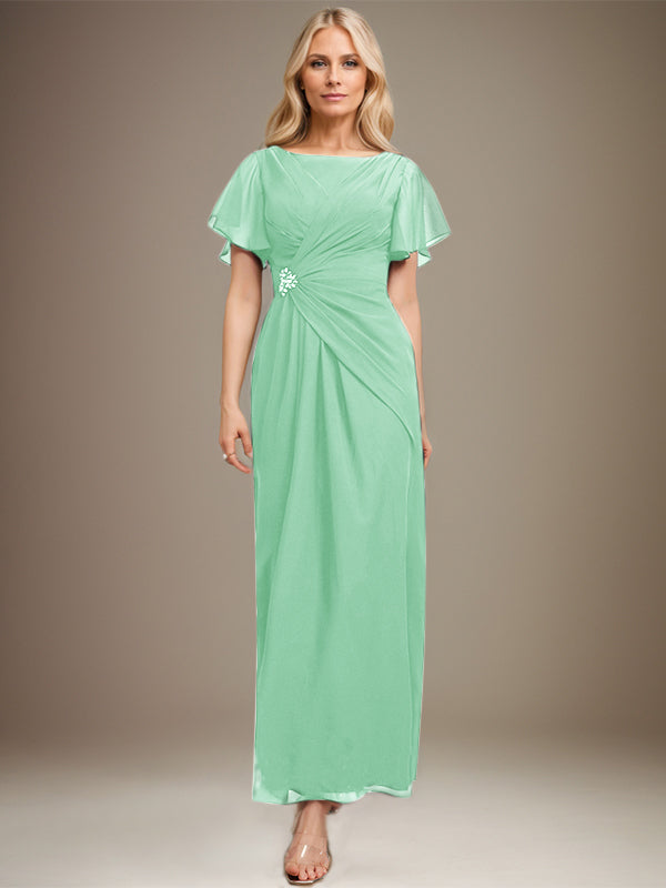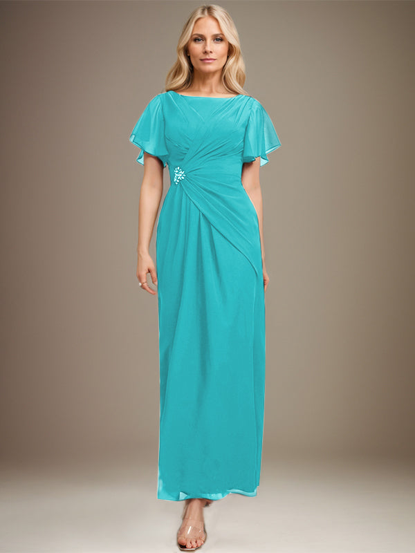 A-line Scoop Ankle-Length Chiffon Mother of the Bride Dress With Beading Pleated