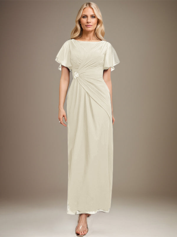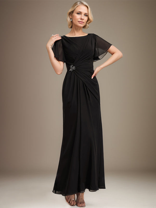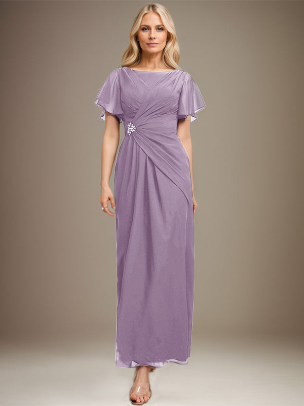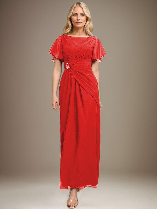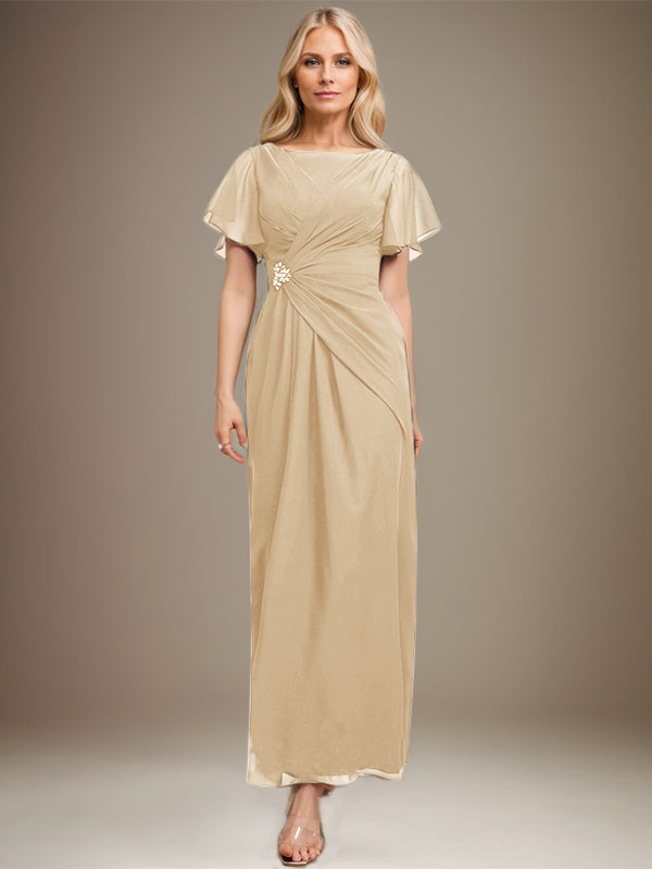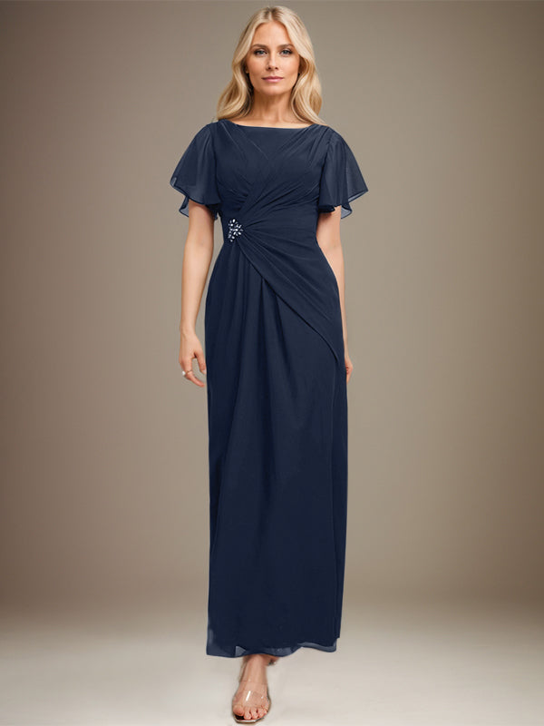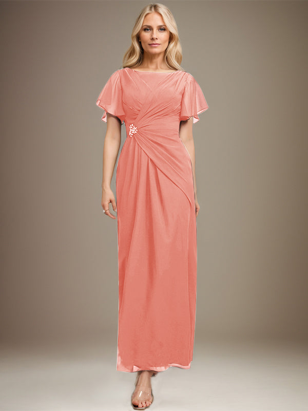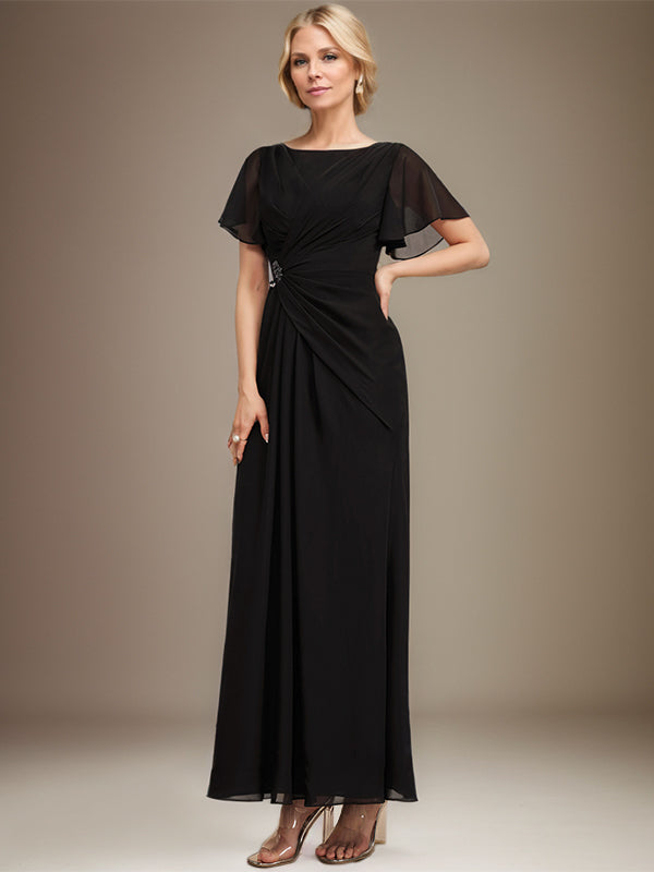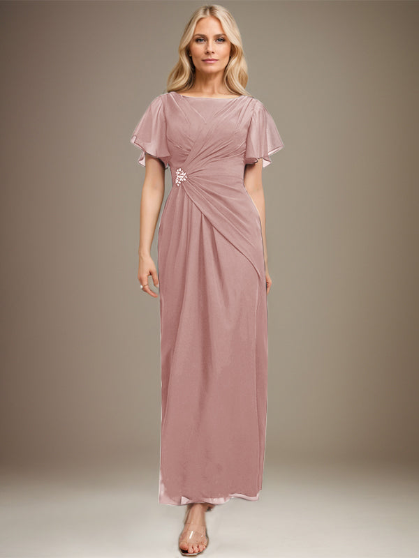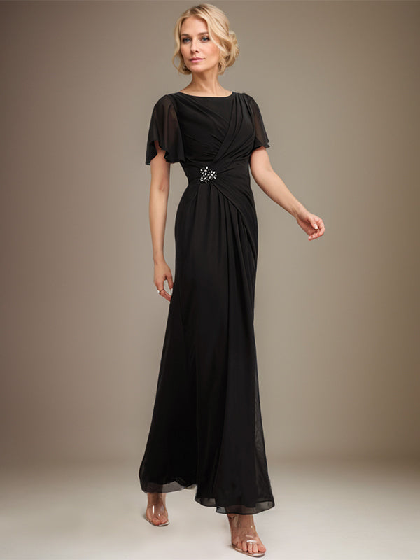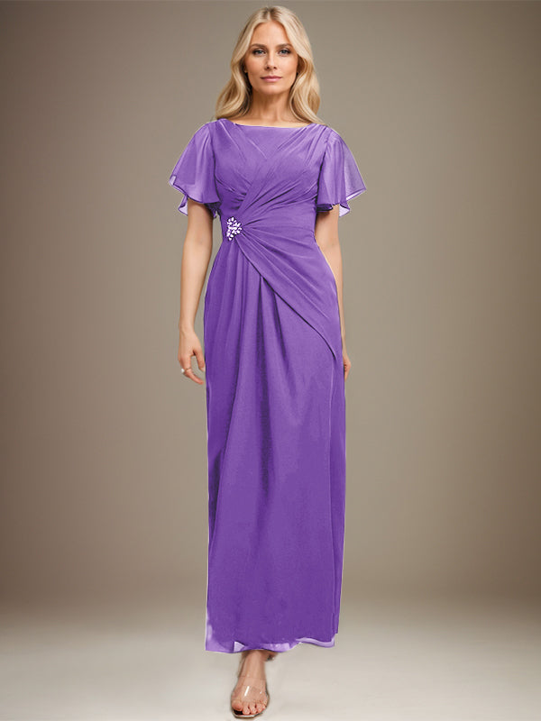 A-line Scoop Ankle-Length Chiffon Mother of the Bride Dress With Beading Pleated