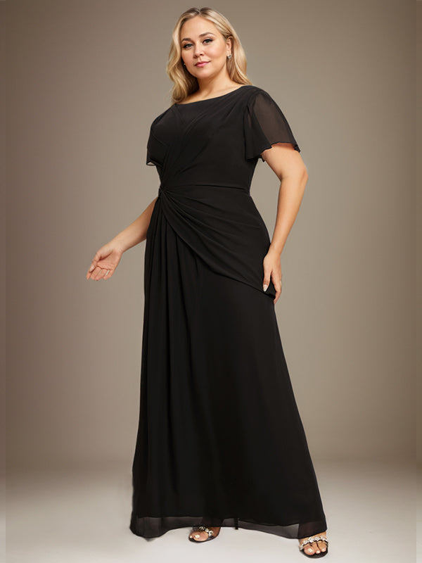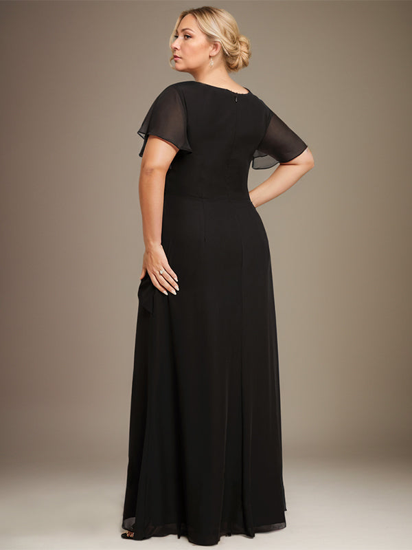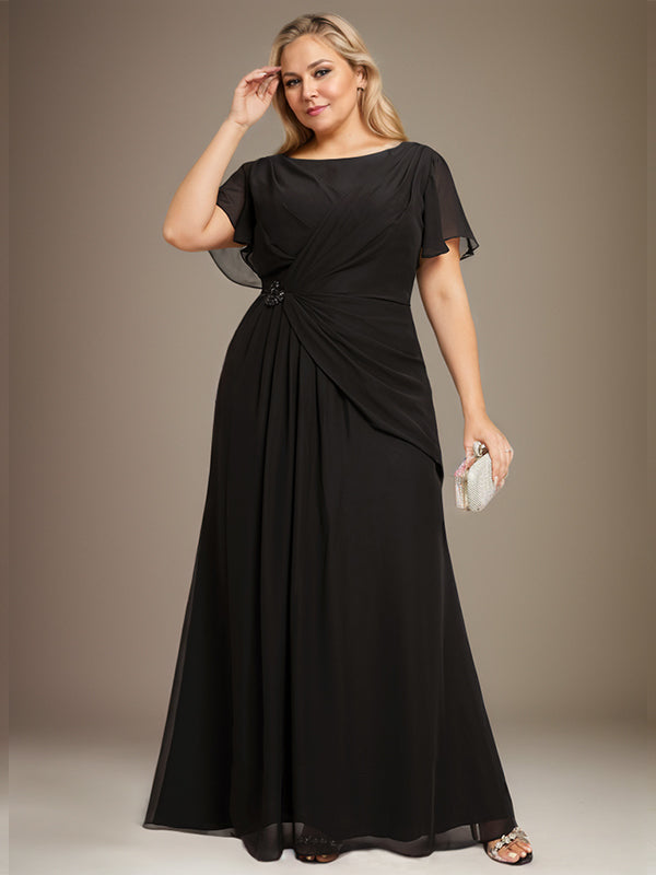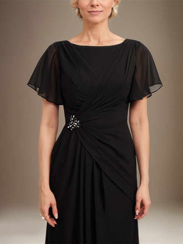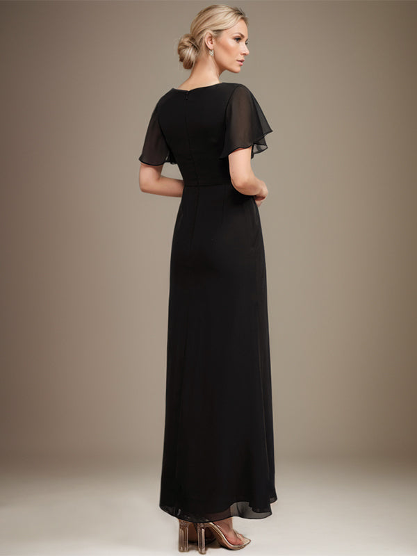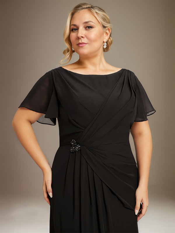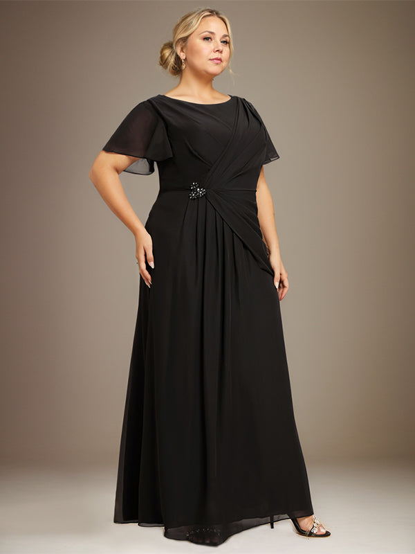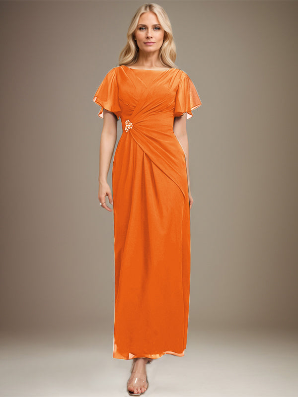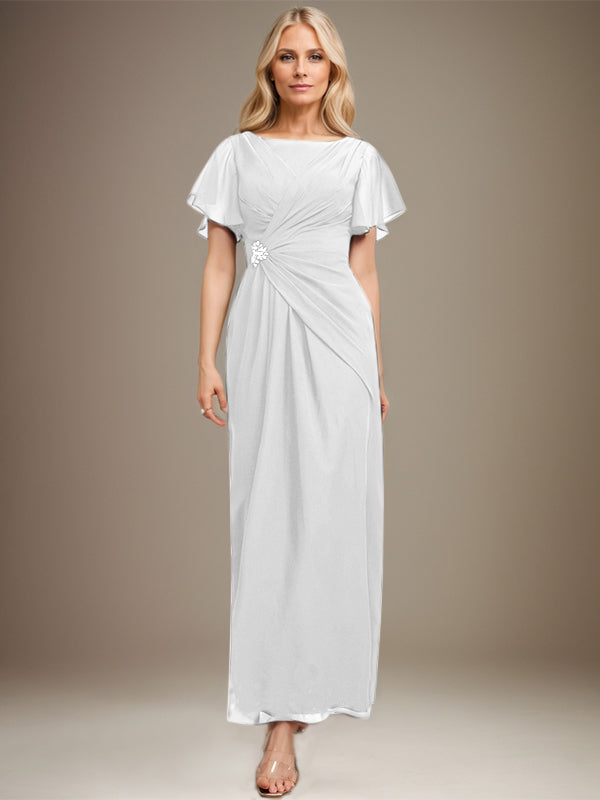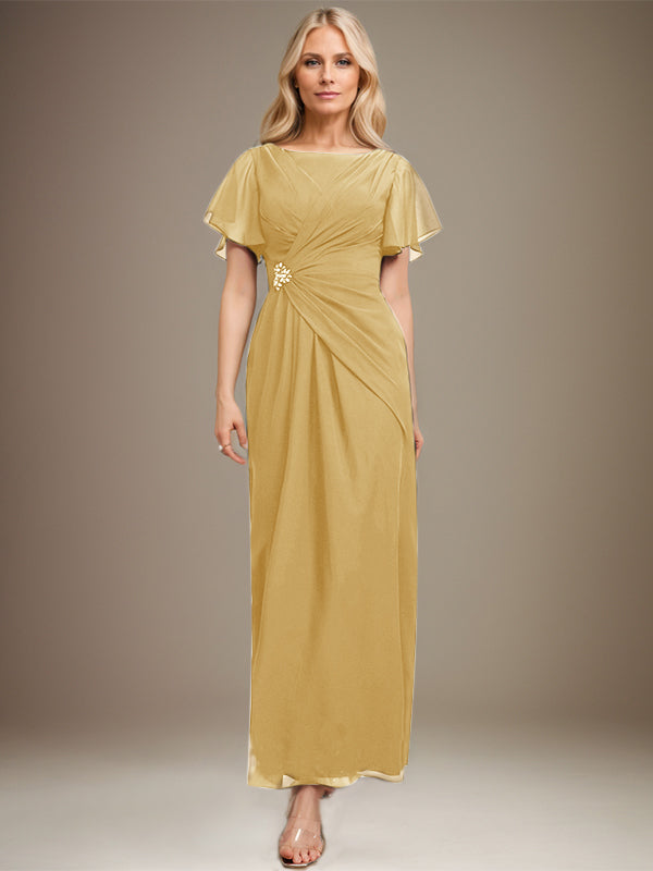 A-line Scoop Ankle-Length Chiffon Mother of the Bride Dress With Beading Pleated