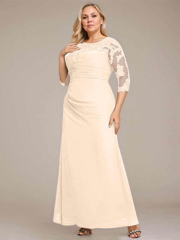 A-line Scoop Floor-Length Chiffon Lace Mother of the Bride Dress With Sequins Beading Pleated
