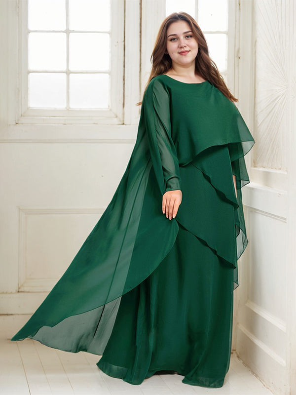 A-line Scoop Floor-Length Chiffon Mother of the Bride Dress
