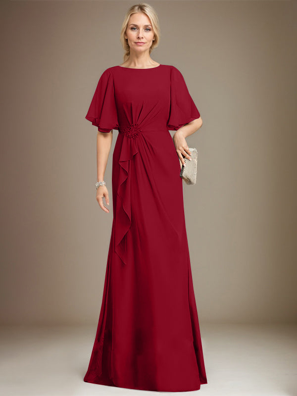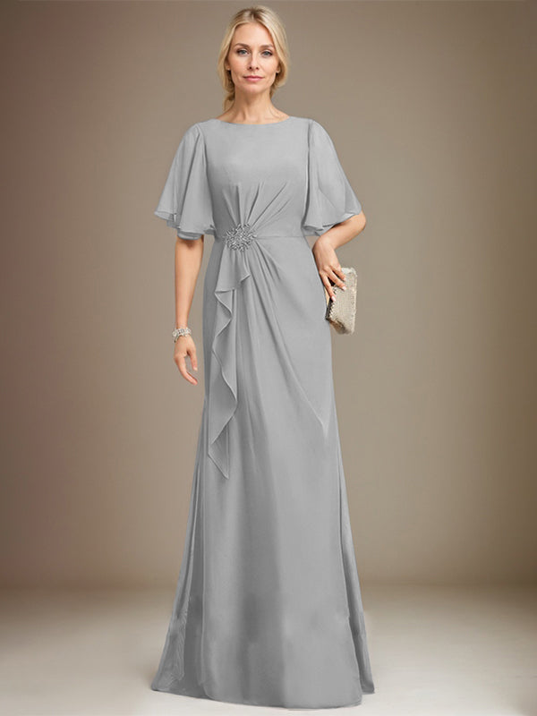A-line Scoop Floor-Length Chiffon Mother of the Bride Dress With Cascading Ruffles Beading Sequins