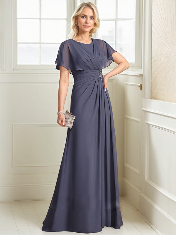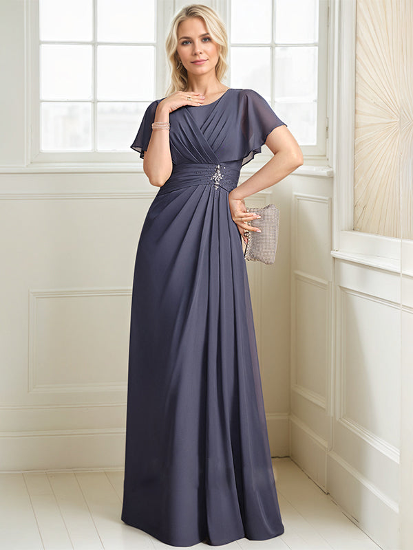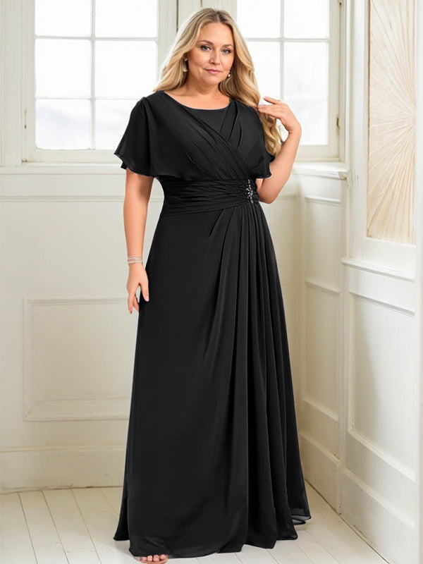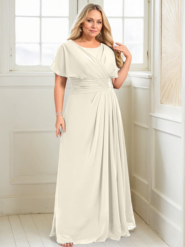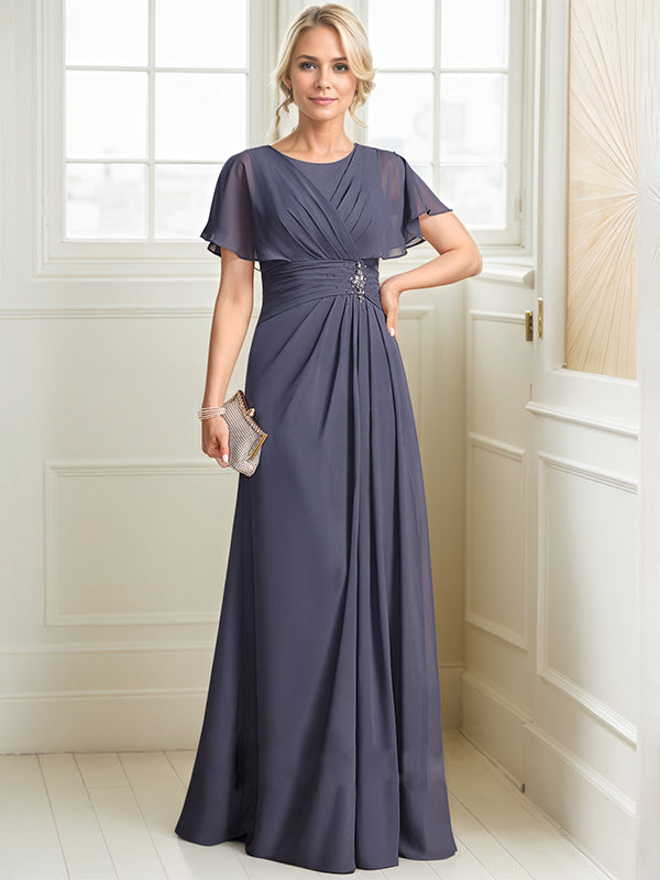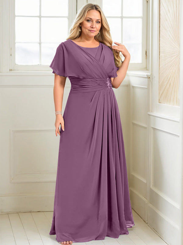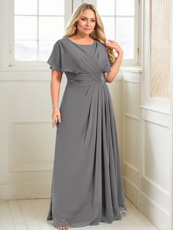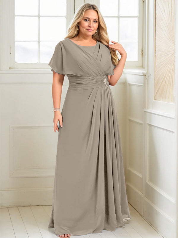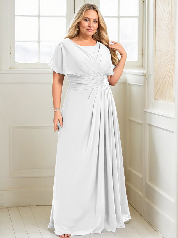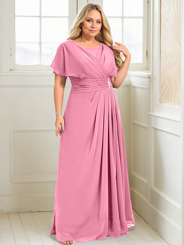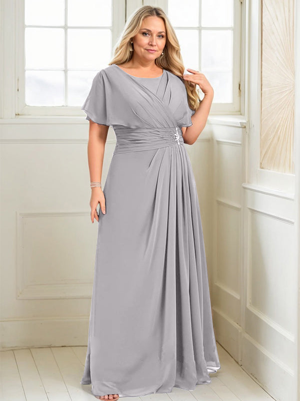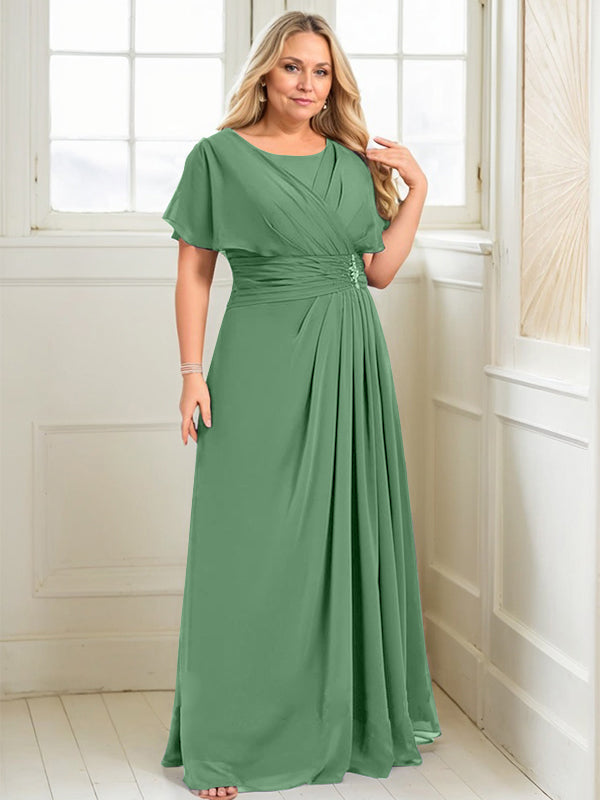 A-line Scoop Floor-Length Chiffon Mother of the Bride Dress With Pleated Beading