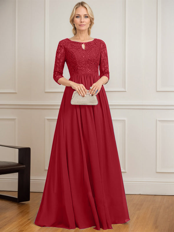 A-line Scoop Floor-Length Lace Chiffon Mother of the Bride Dress With Crystal Brooch Sequins