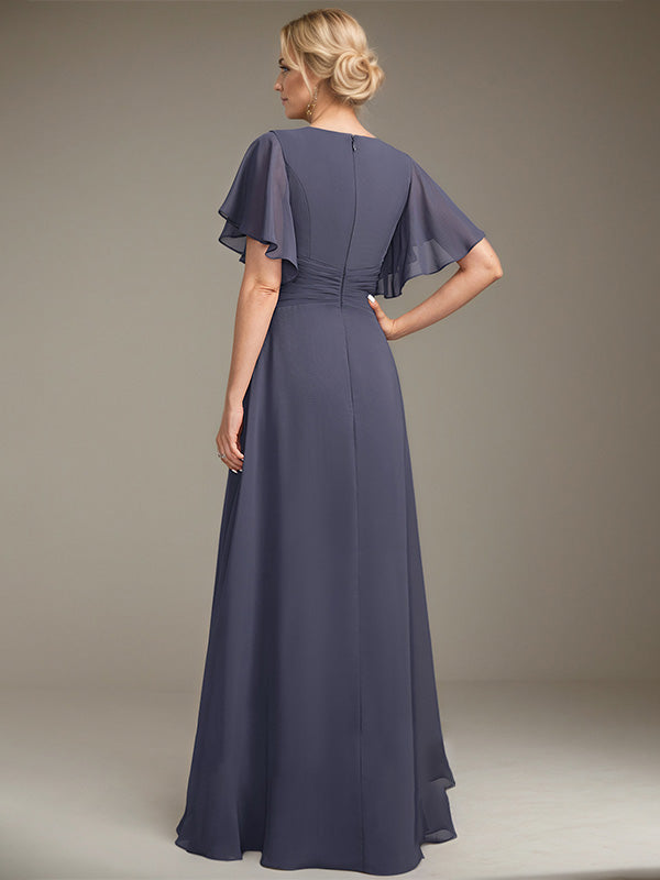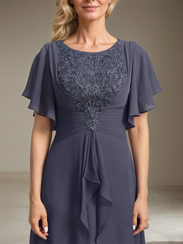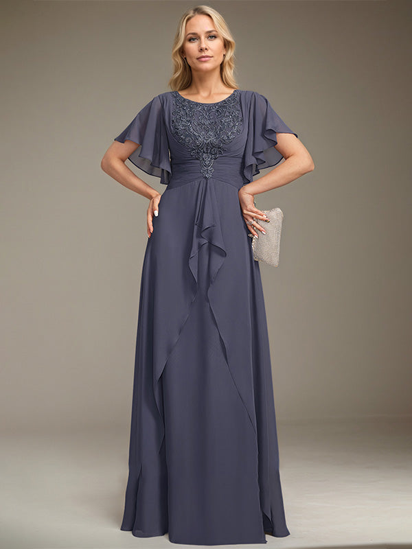 A-line Scoop Floor-Length Lace Chiffon Mother of the Bride Dress With Pleated