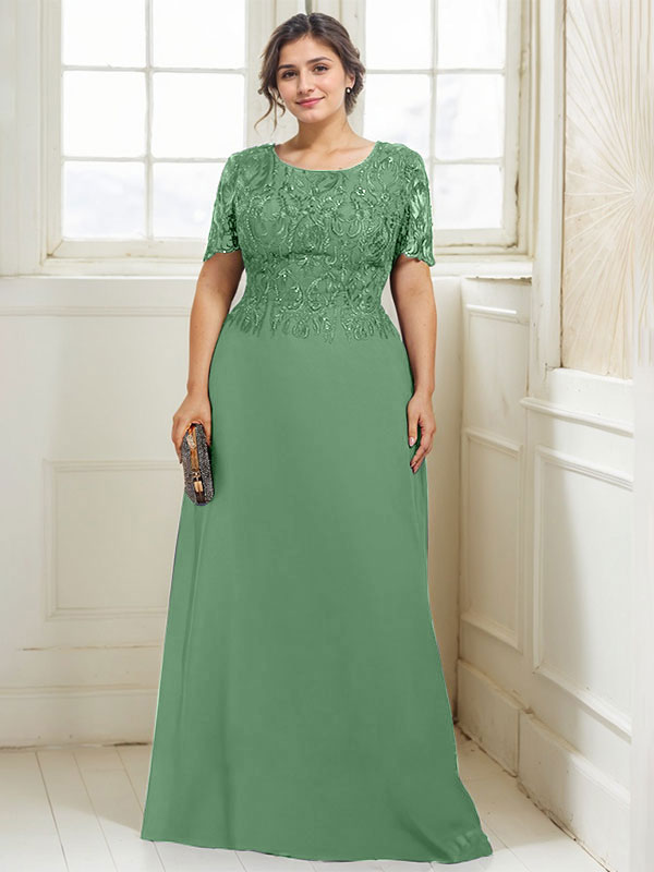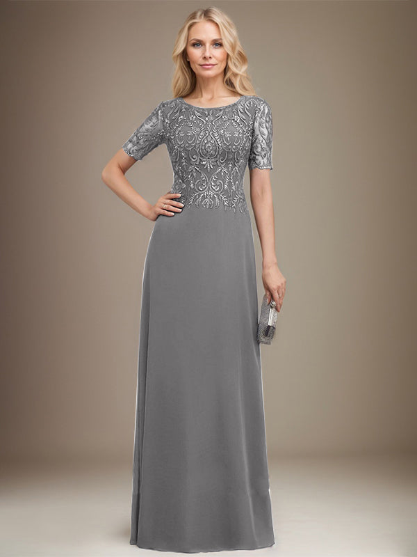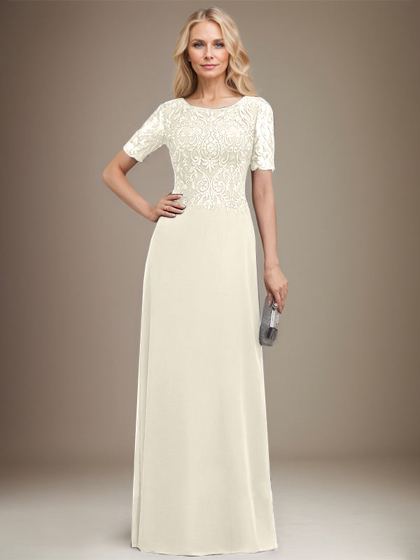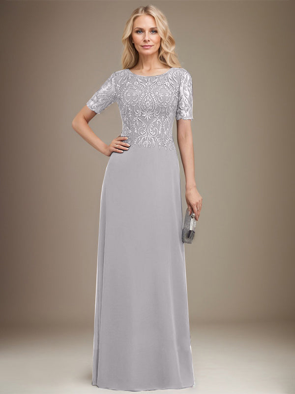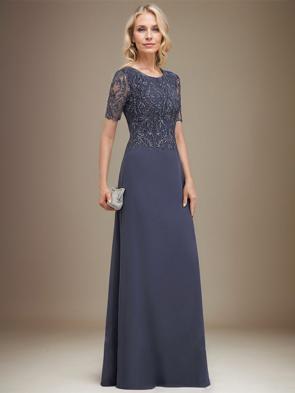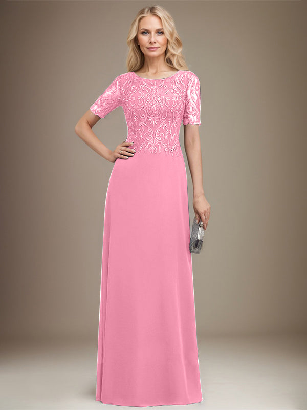 A-line Scoop Floor-Length Lace Chiffon Mother of the Bride Dress With Sequins