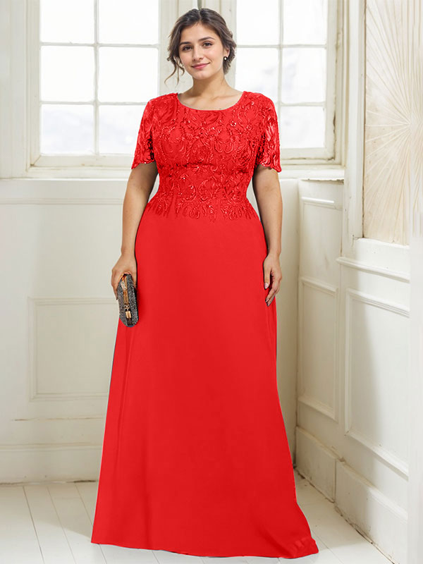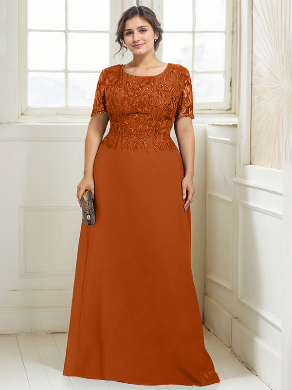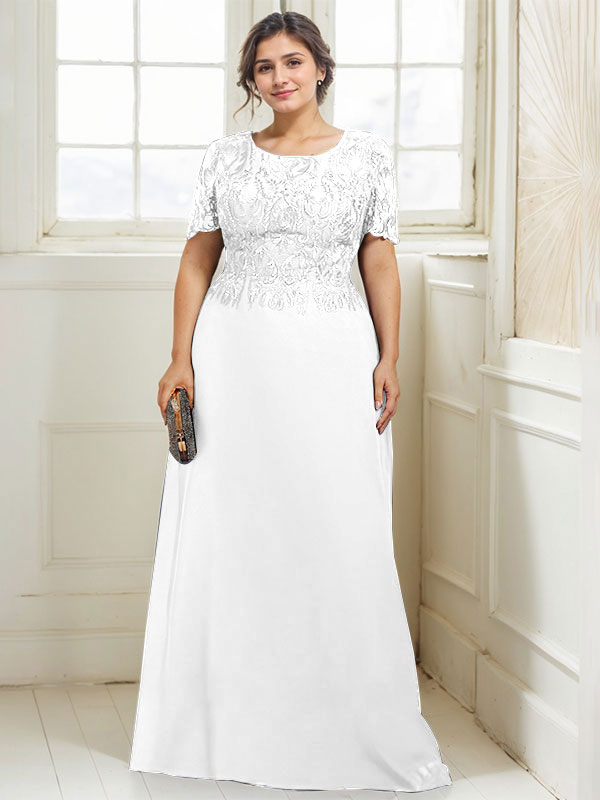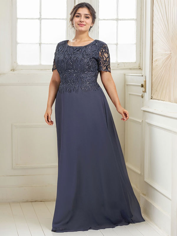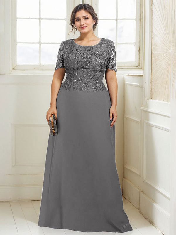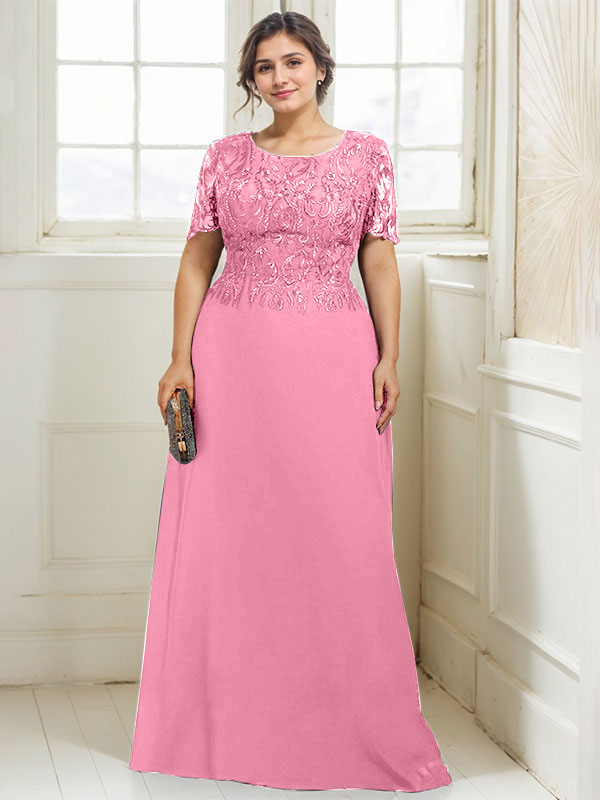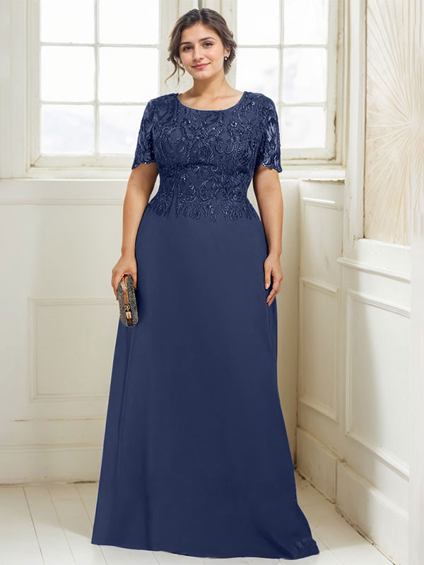 A-line Scoop Floor-Length Lace Chiffon Mother of the Bride Dress With Sequins