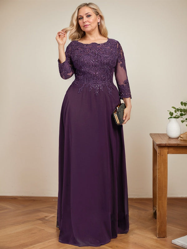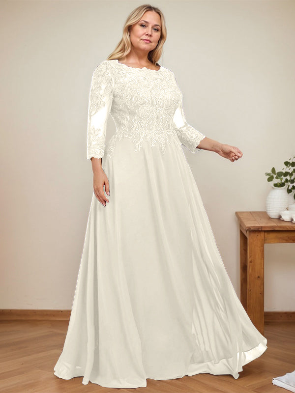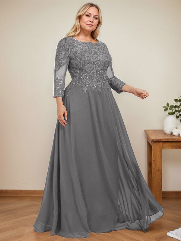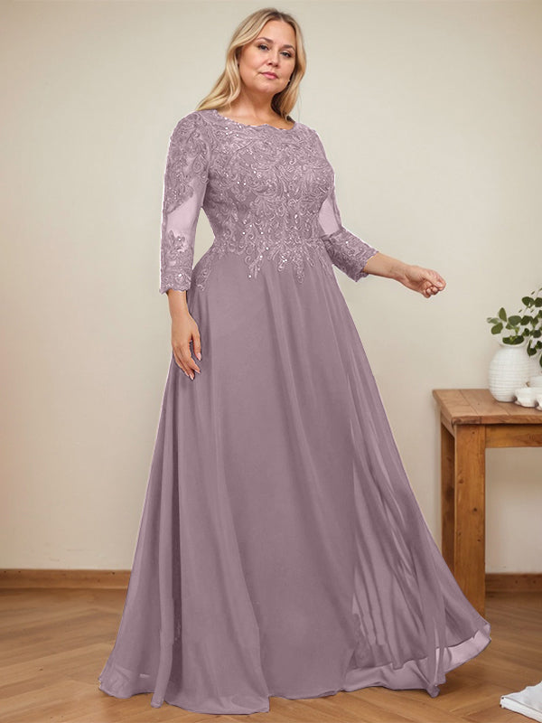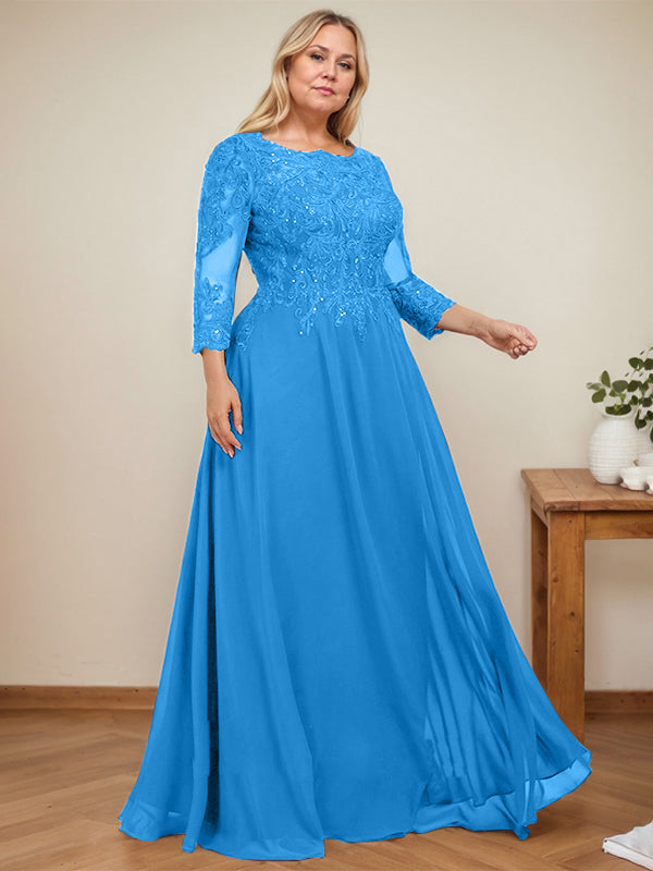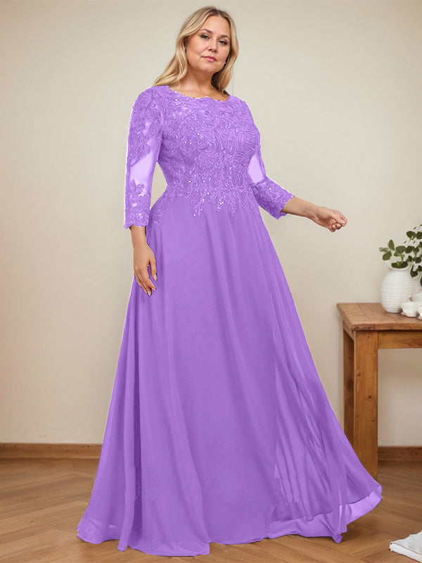 A-line Scoop Floor-Length Lace Chiffon Mother of the Bride Dress With Sequins