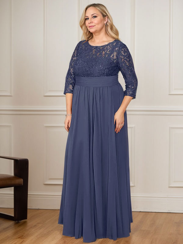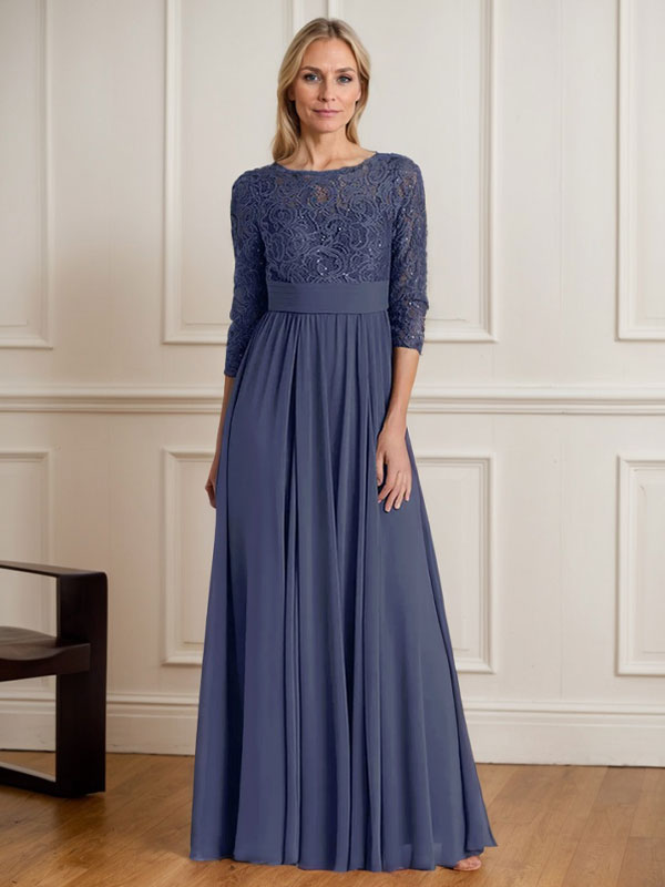A-Line Scoop Floor-Length Sequins Chiffon Mother of the Bride Dress