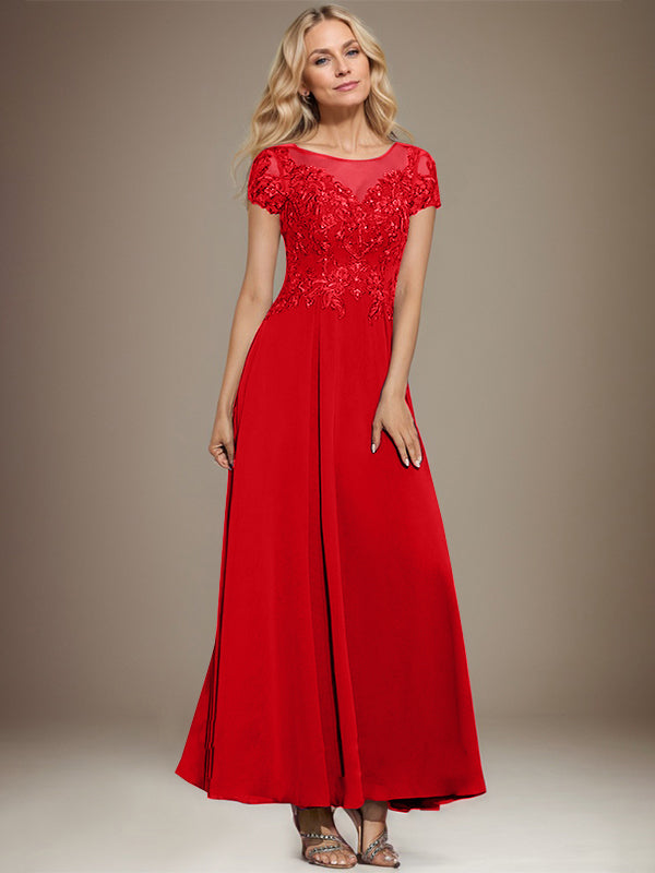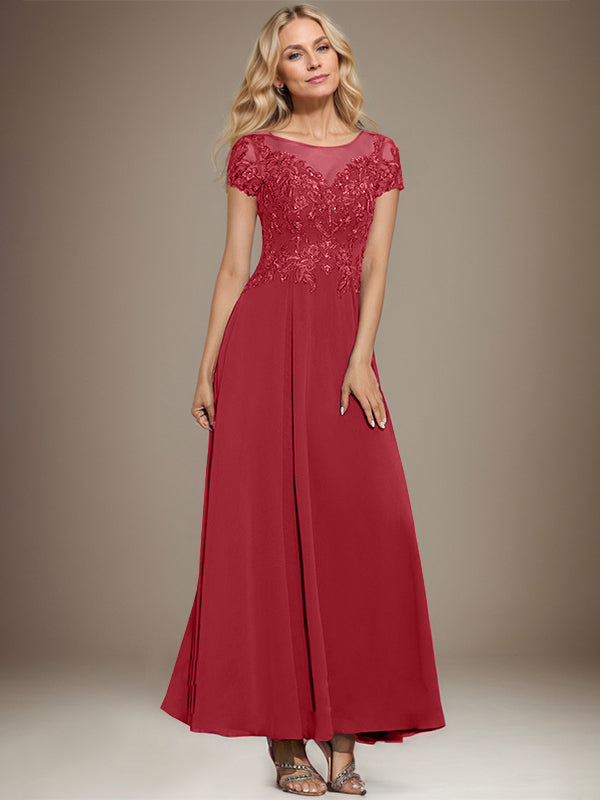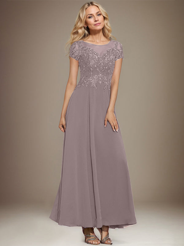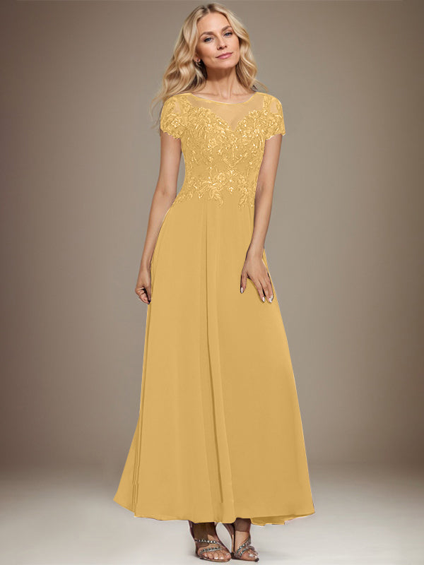 A-line Scoop Illusion Ankle-Length Lace Chiffon Mother of the Bride Dress With Sequins