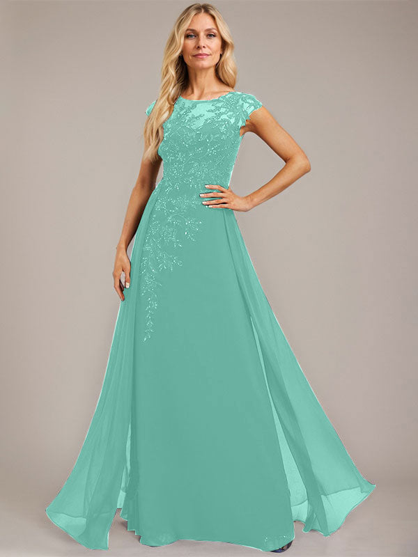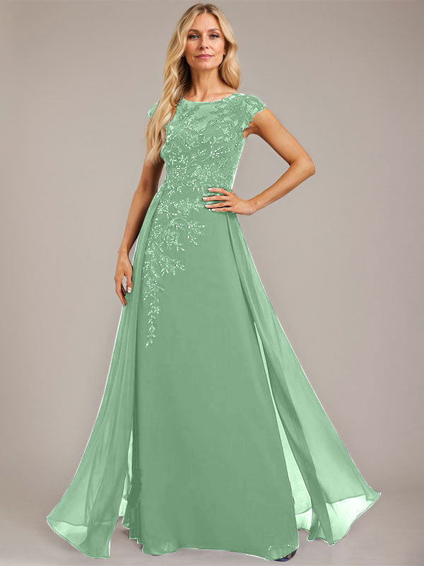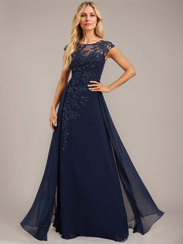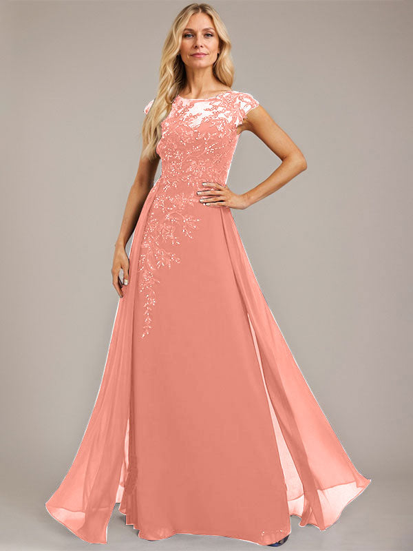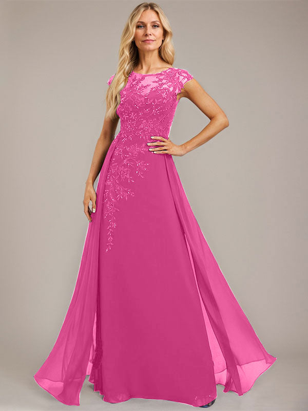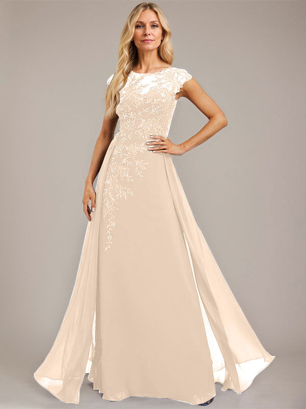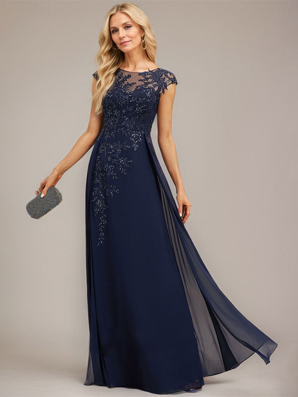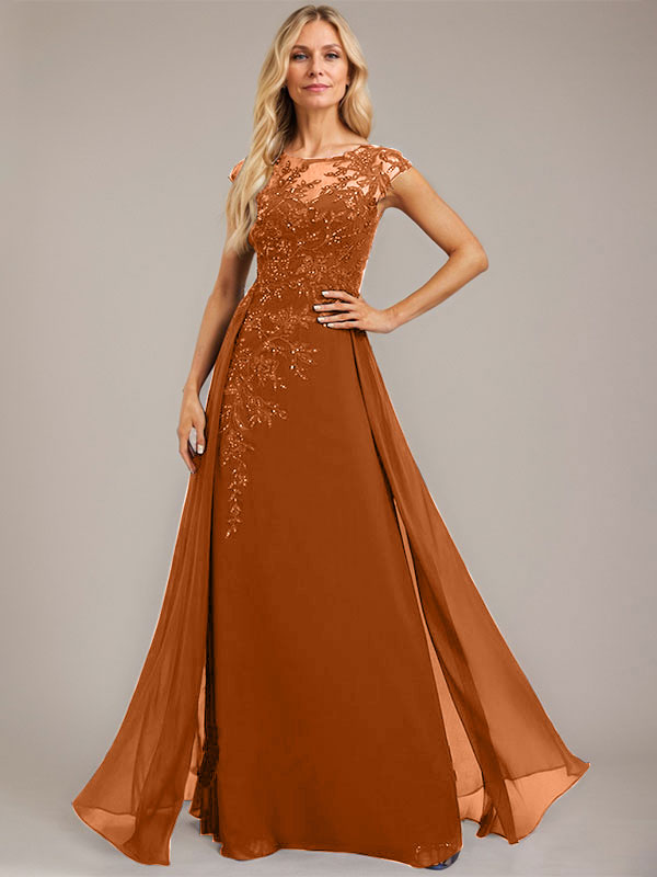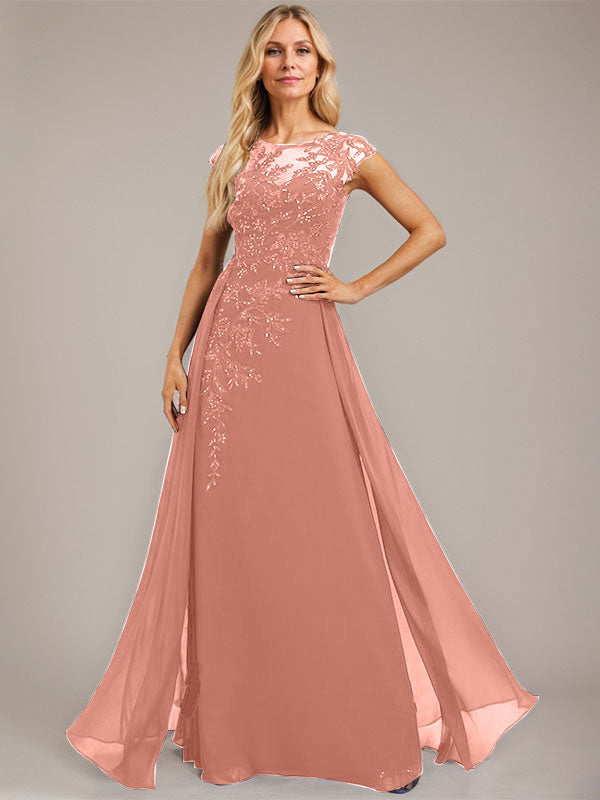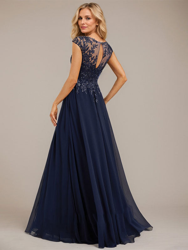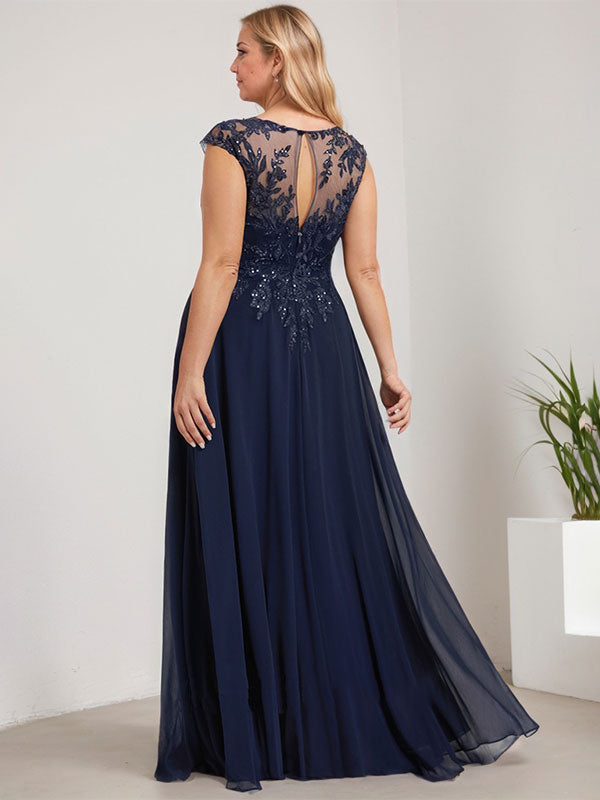 A-line Scoop Illusion Floor-Length Lace Chiffon Evening Dress With Sequins