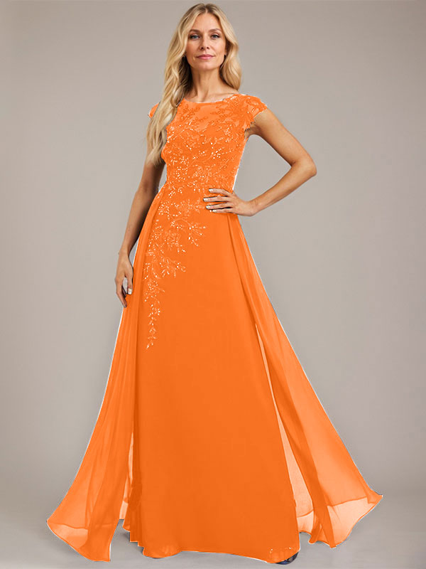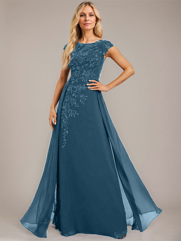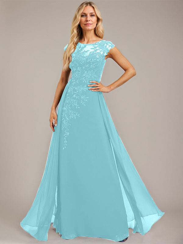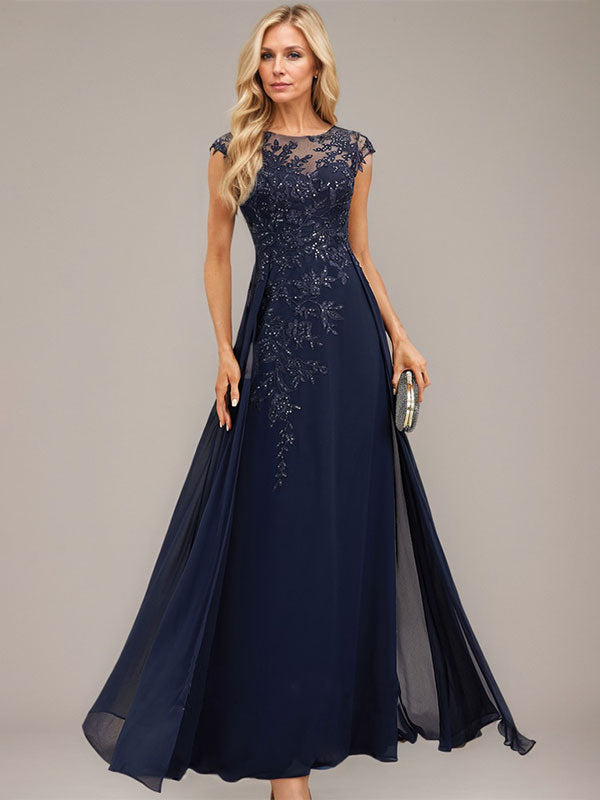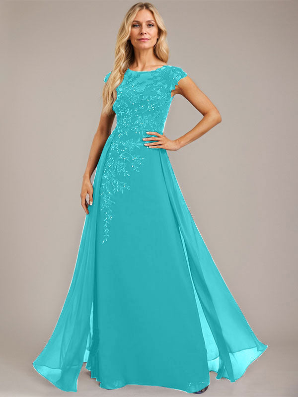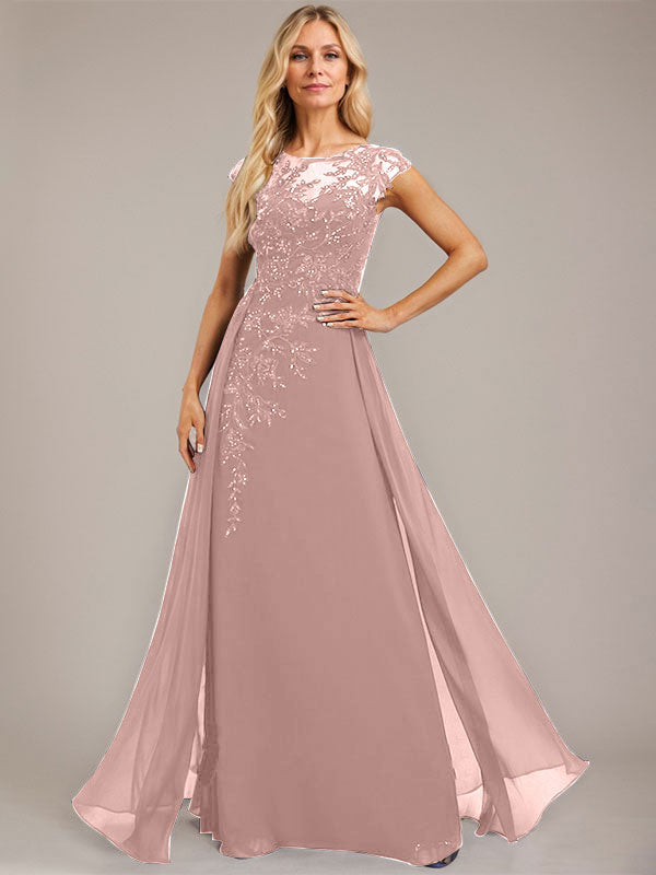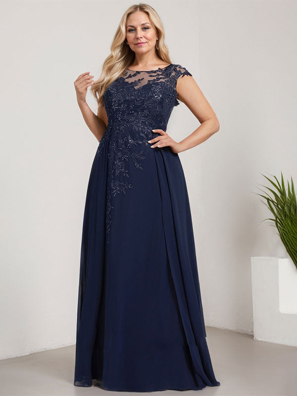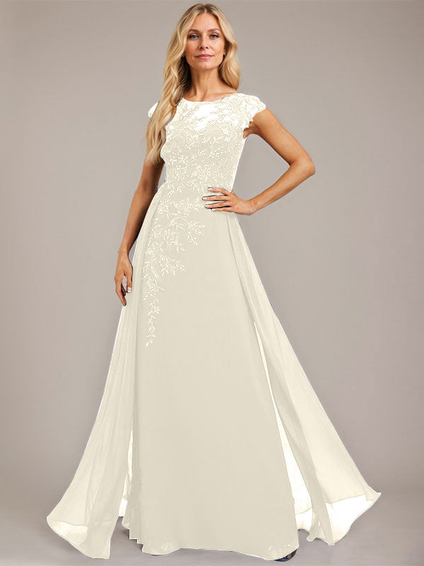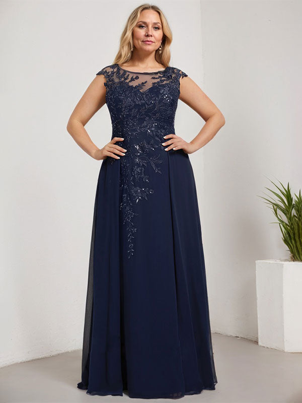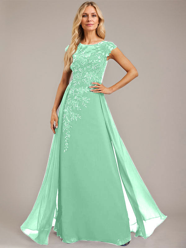A-line Scoop Illusion Floor-Length Lace Chiffon Evening Dress With Sequins