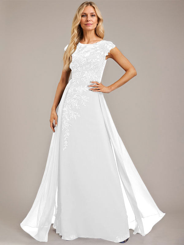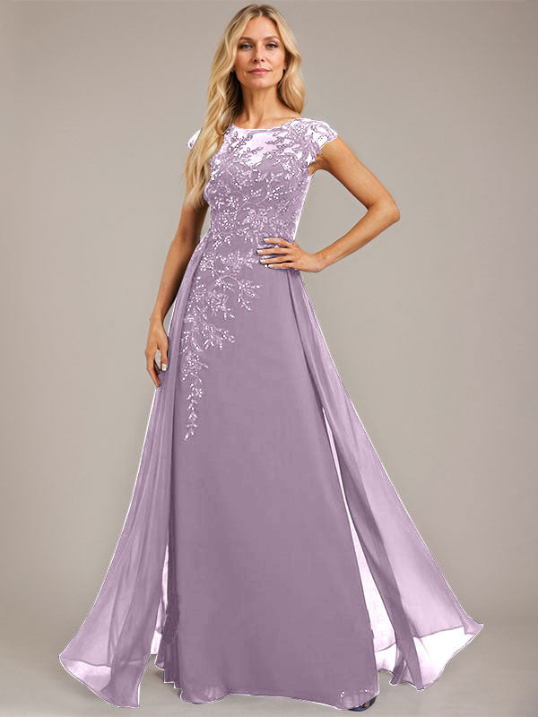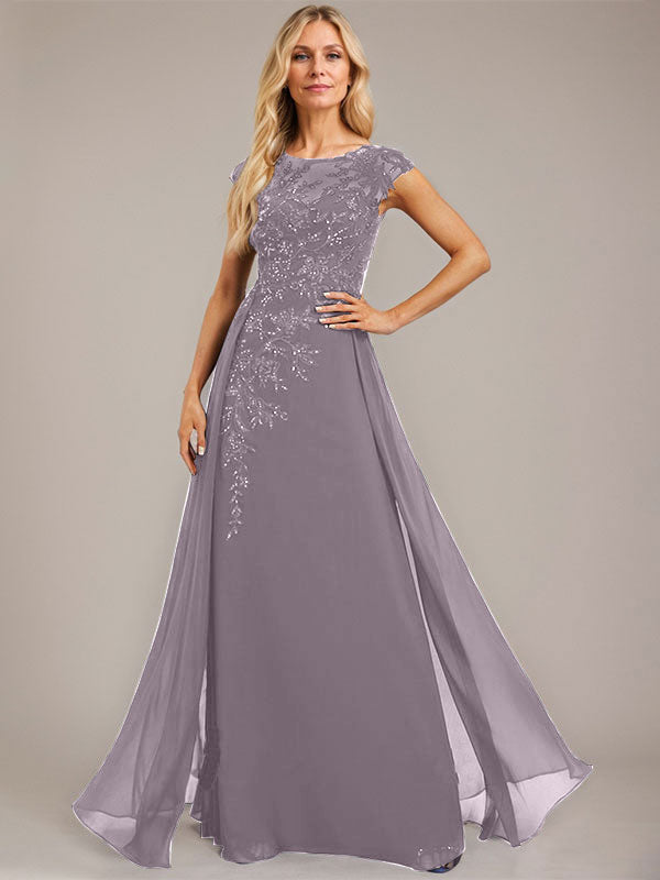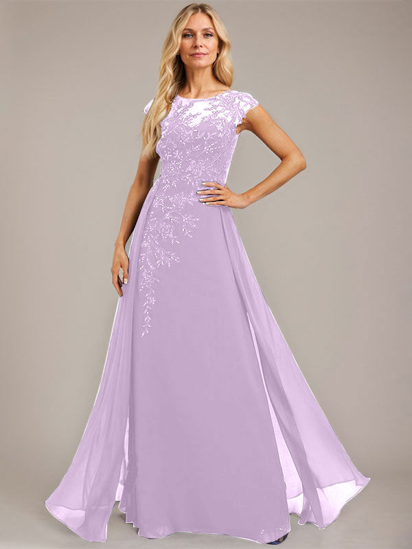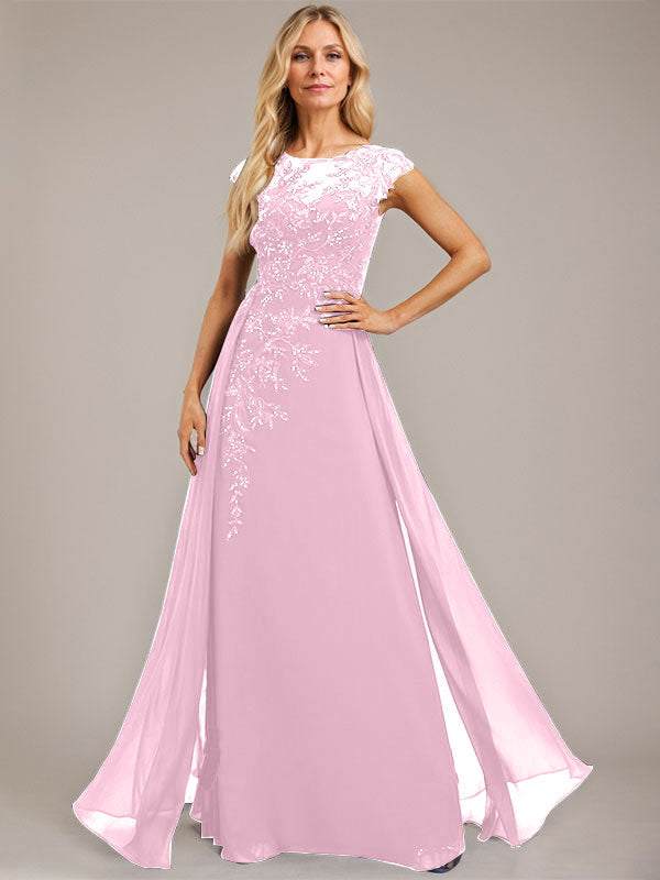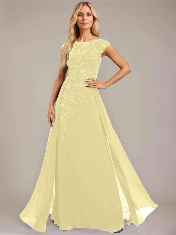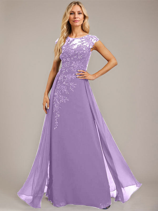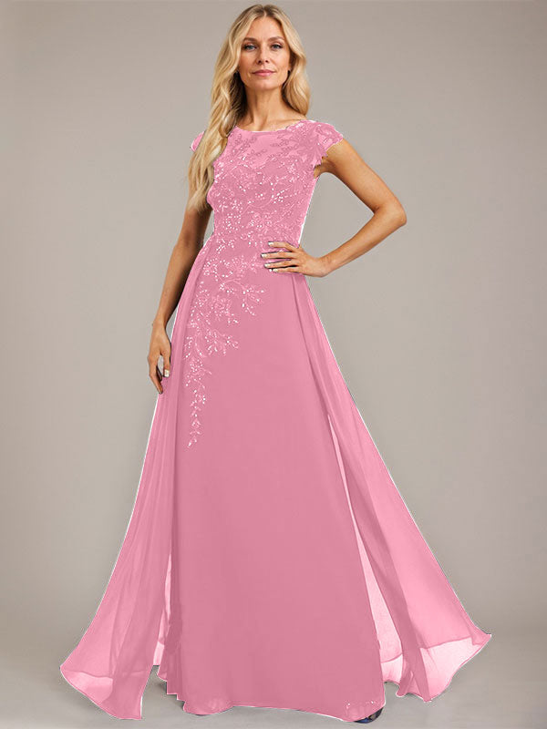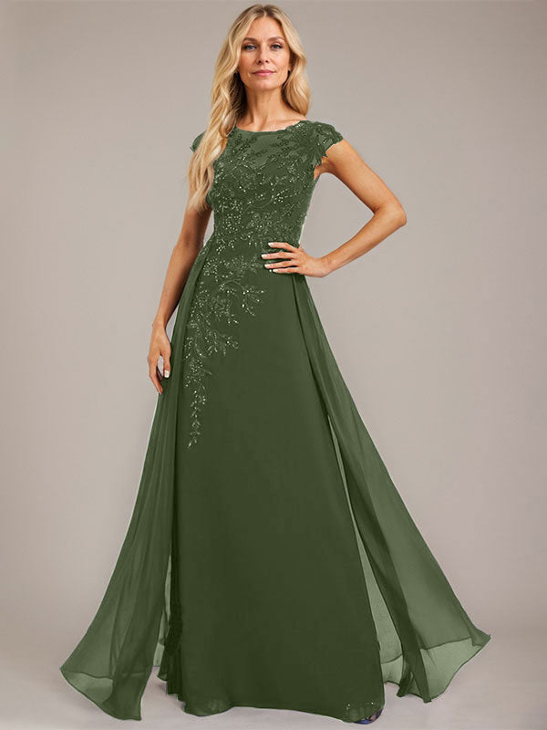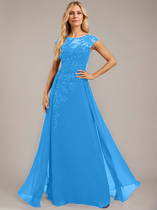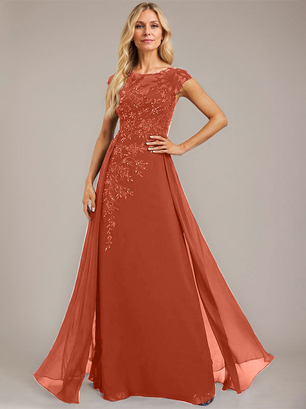 A-line Scoop Illusion Floor-Length Lace Chiffon Evening Dress With Sequins
