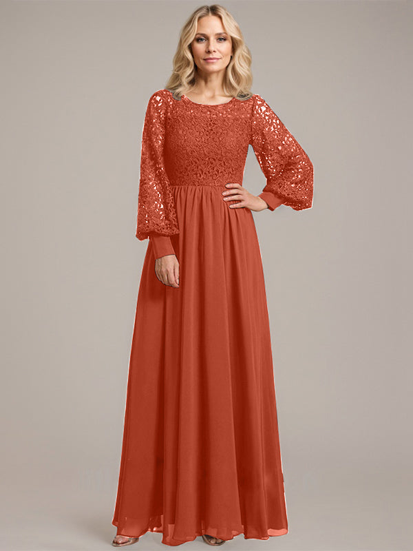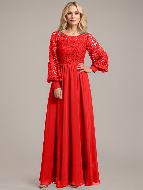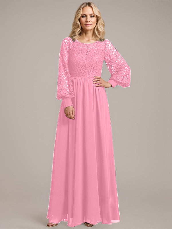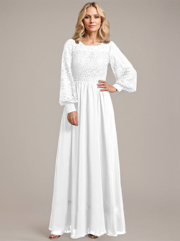 A-line Scoop Illusion Floor-Length Lace Chiffon Mother of the Bride Dress