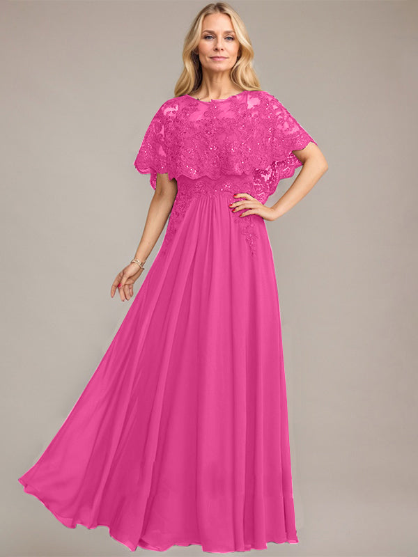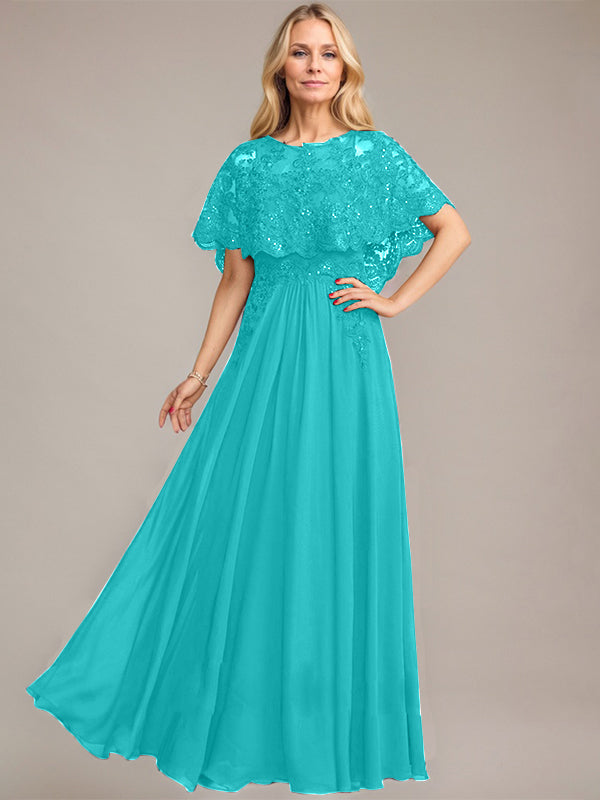 A-line Scoop Illusion Floor-Length Lace Chiffon Mother of the Bride Dress With Sequins