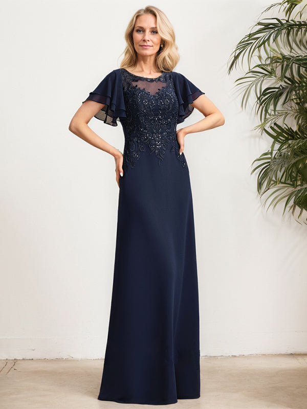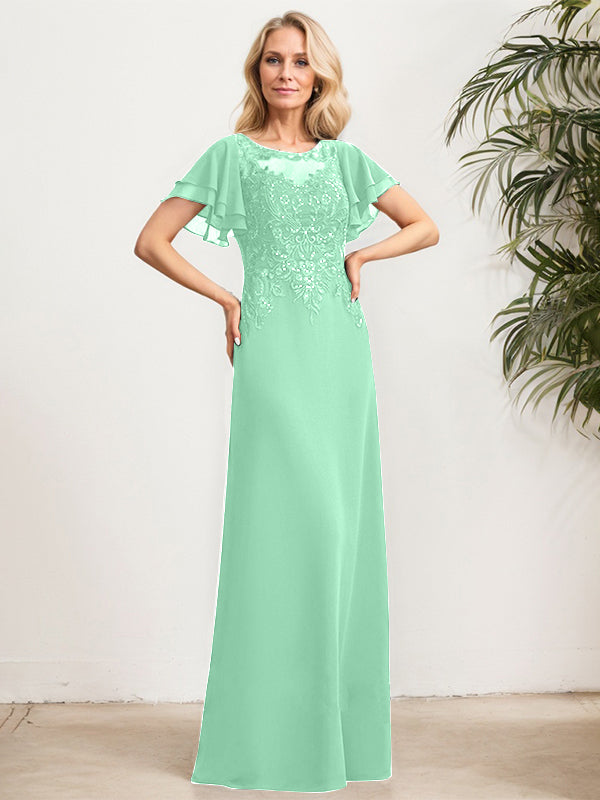 A-line Scoop Illusion Floor-Length Lace Chiffon Mother of the Bride Dress With Sequins
