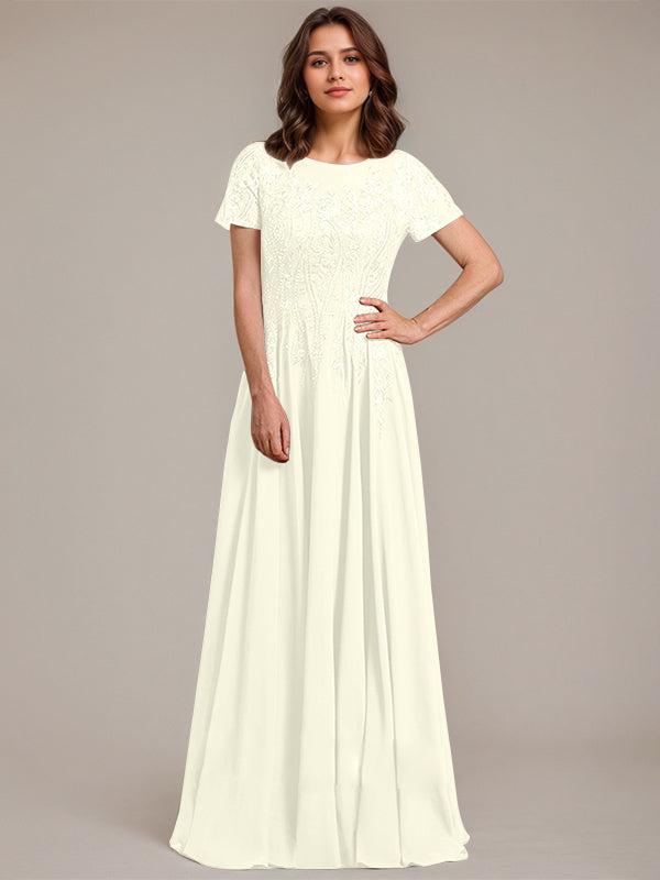 A-line Scoop Illusion Floor-Length Lace Chiffon Mother of the Bride Dress With Sequins