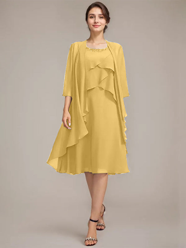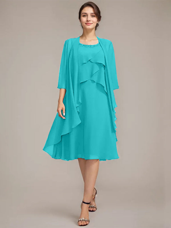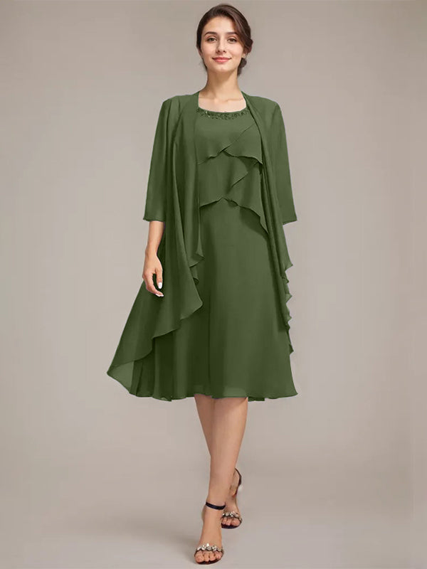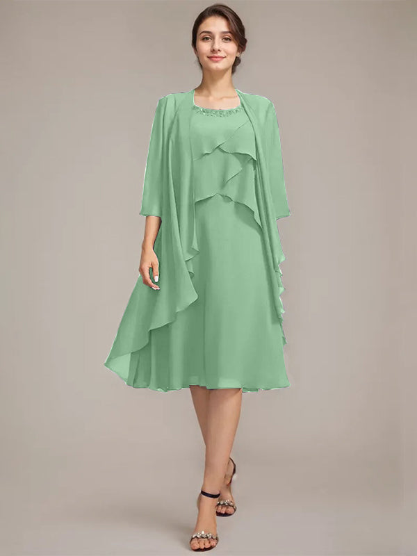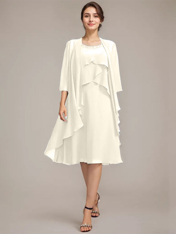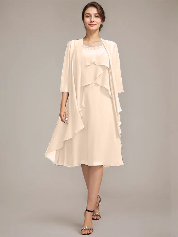 A-line Scoop Knee-Length Chiffon Mother of the Bride Dress With Beading