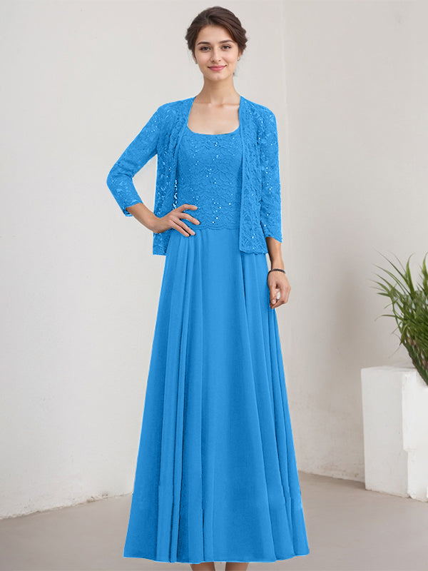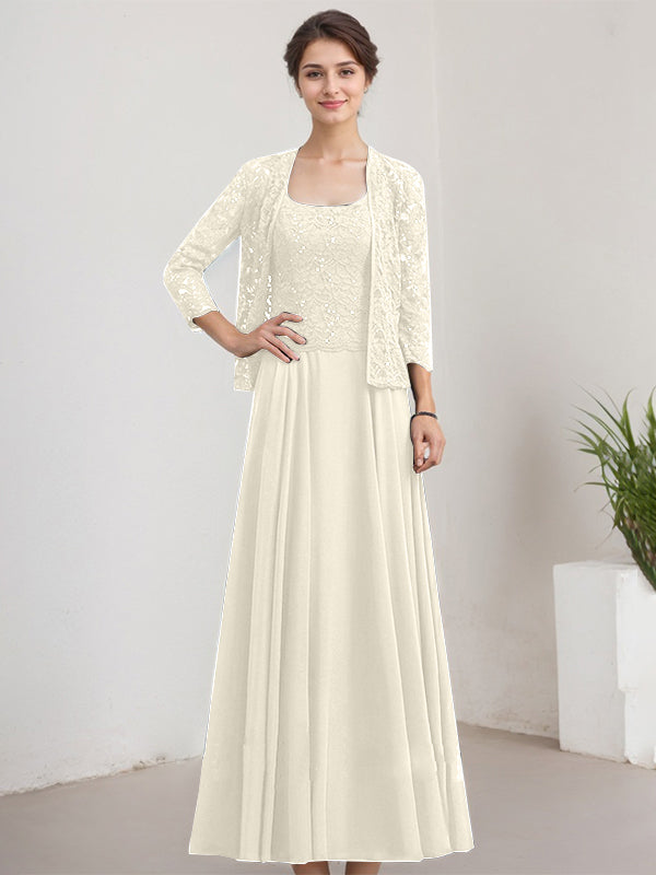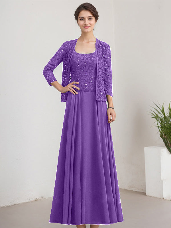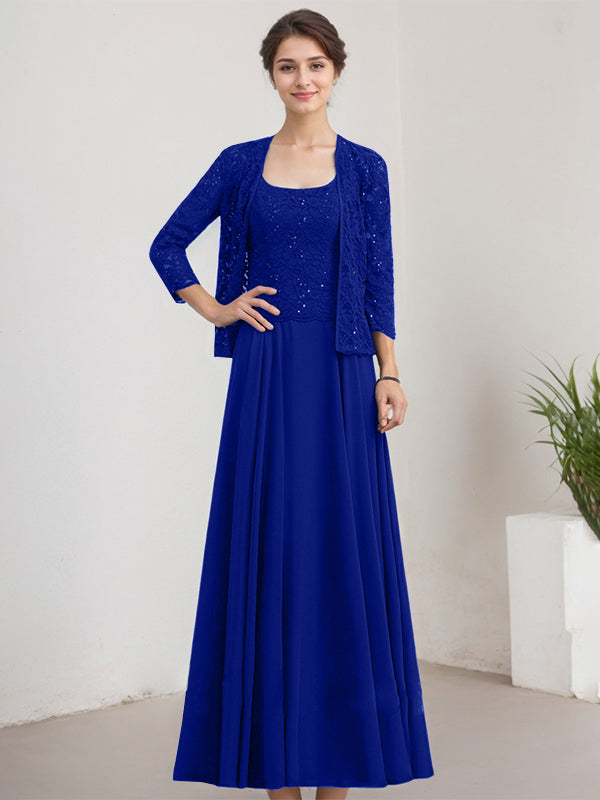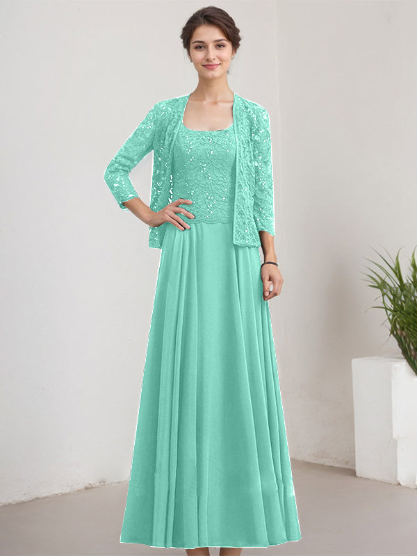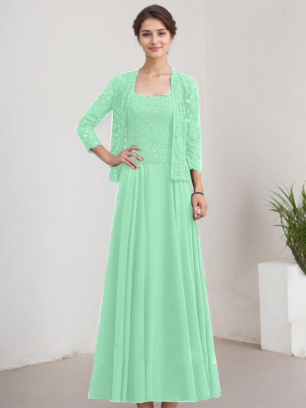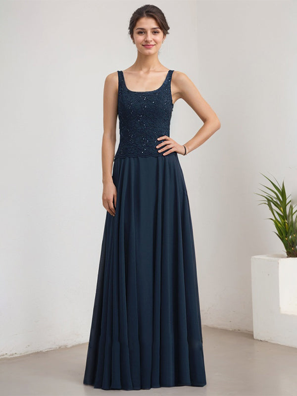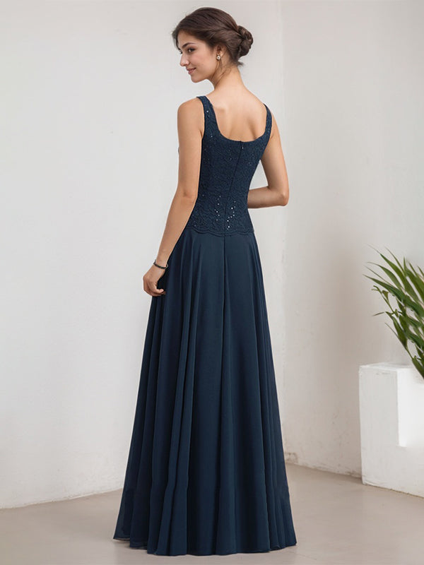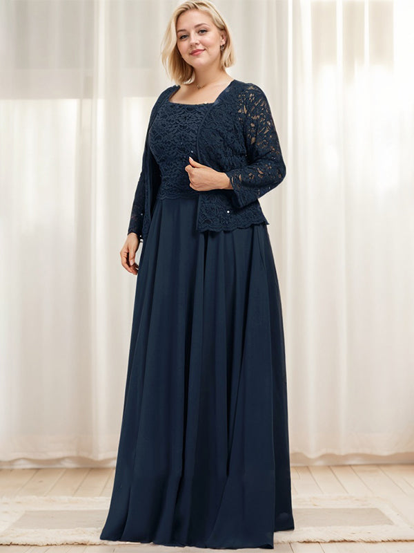 A-line Square Floor-Length Lace Chiffon Mother of the Bride Dress With Sequins