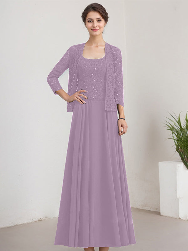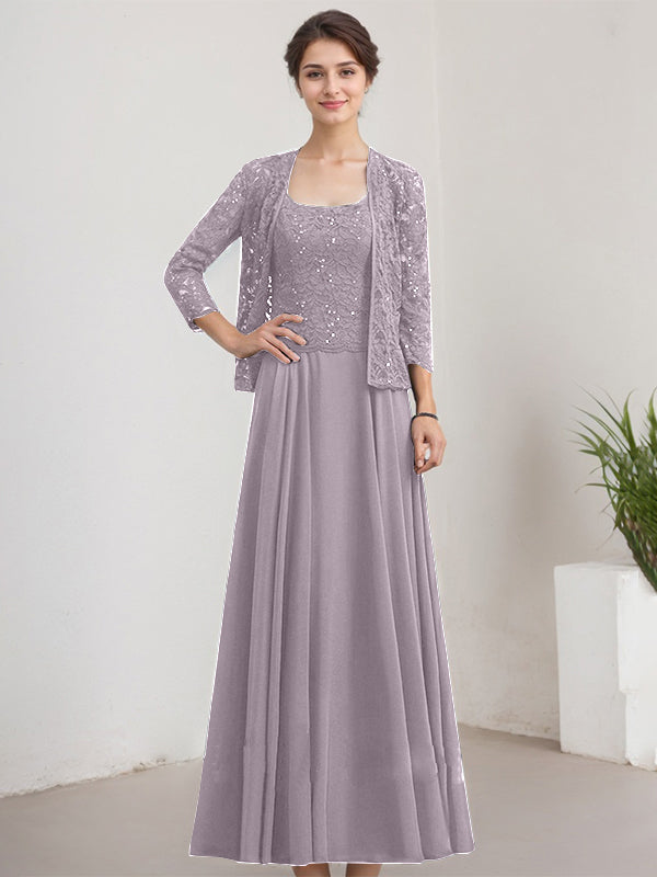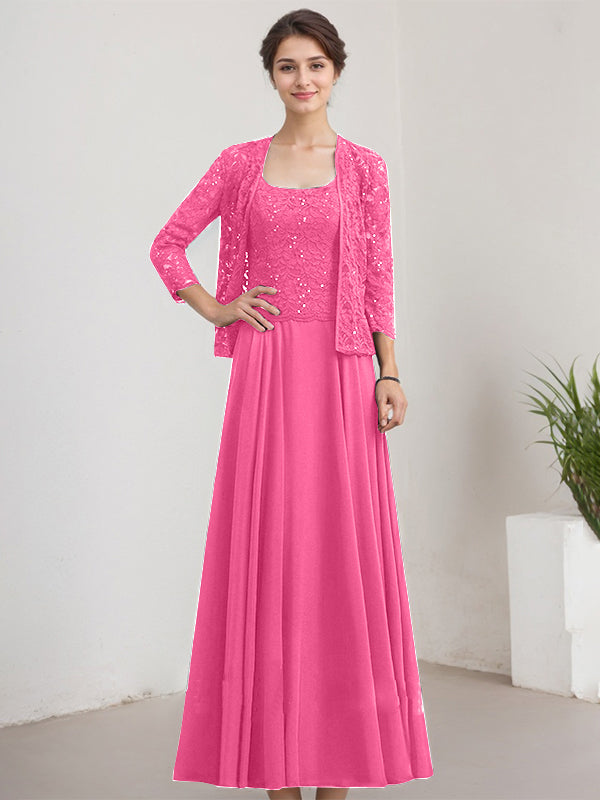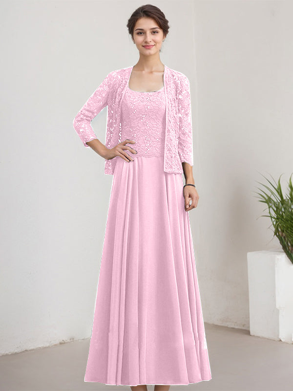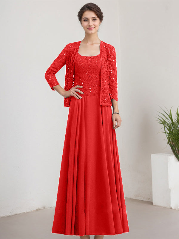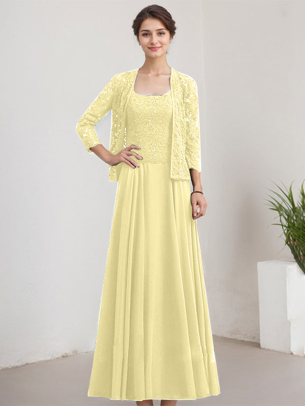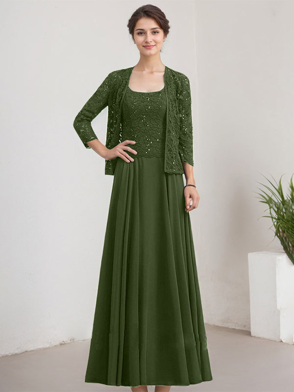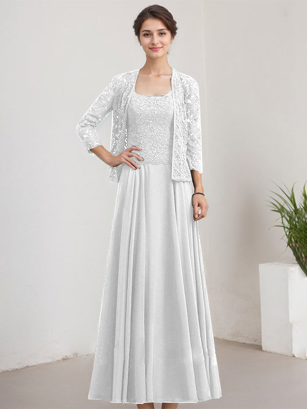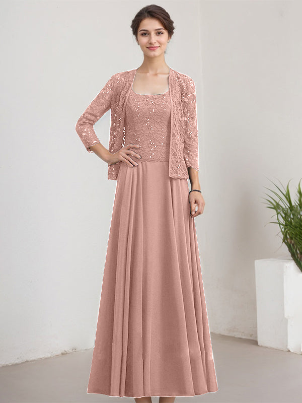 A-line Square Floor-Length Lace Chiffon Mother of the Bride Dress With Sequins