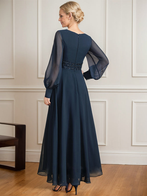 A-line V-Neck Ankle-Length Chiffon Mother of the Bride Dress With Cascading Ruffles Beading Sequins