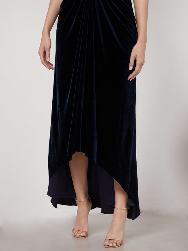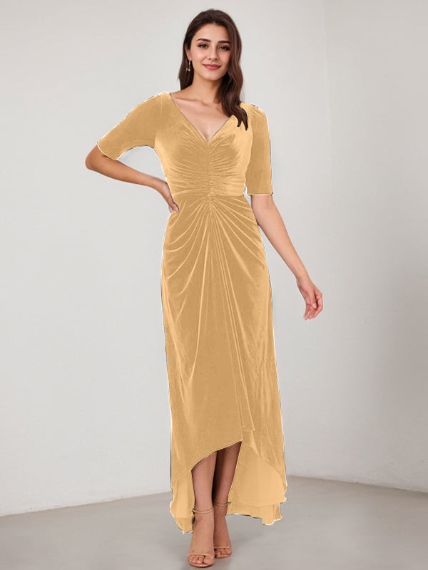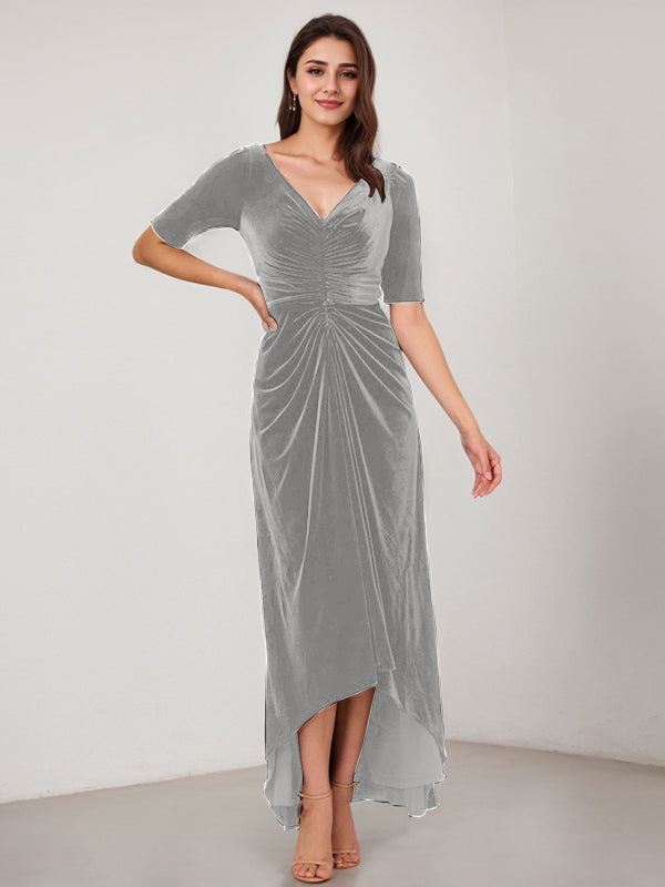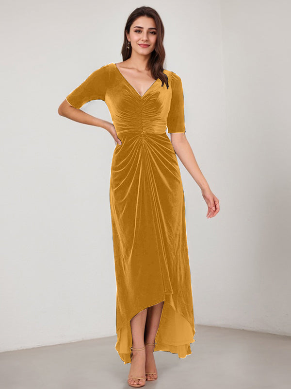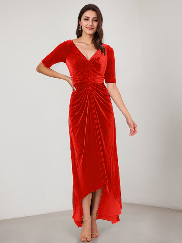 A-Line V-Neck Asymmetrical Velvet Evening Dress